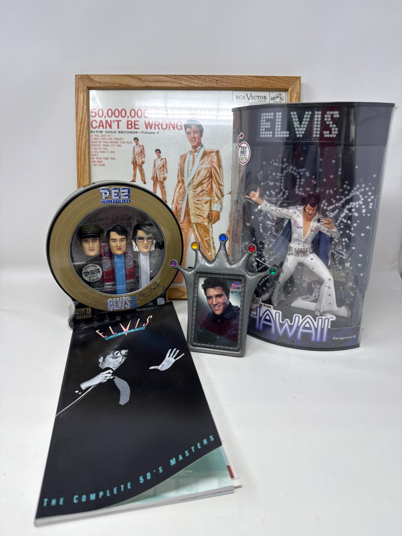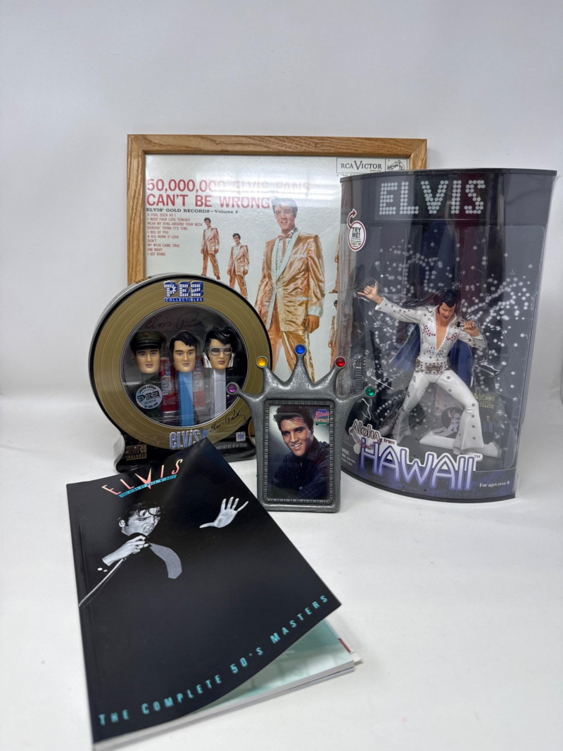 Lot # 166 - Elvis Collectibles-Pez, Books, Las Vegas Figure, Framed Album