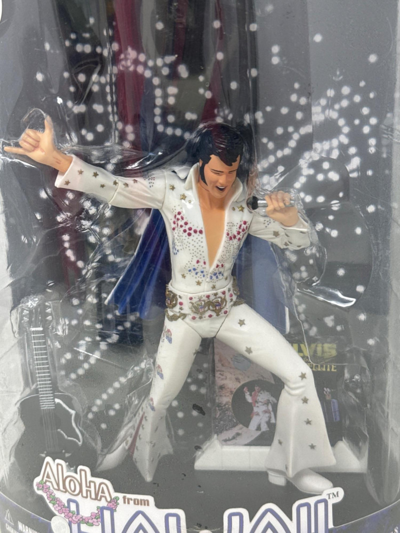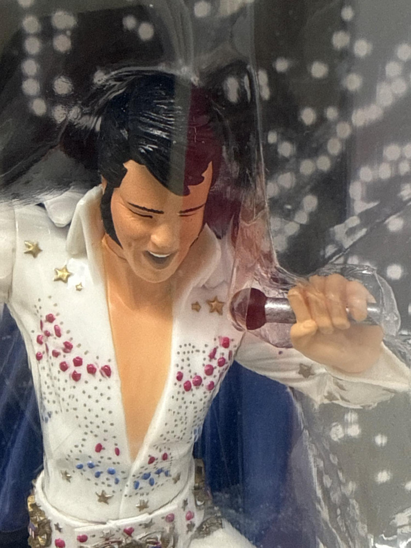 New in Box Las Vegas Elvis figure. Lights up. Will need batteries. Framed album. Collector set of Pez dispensers. Framed collector card. Elvis collectors book.