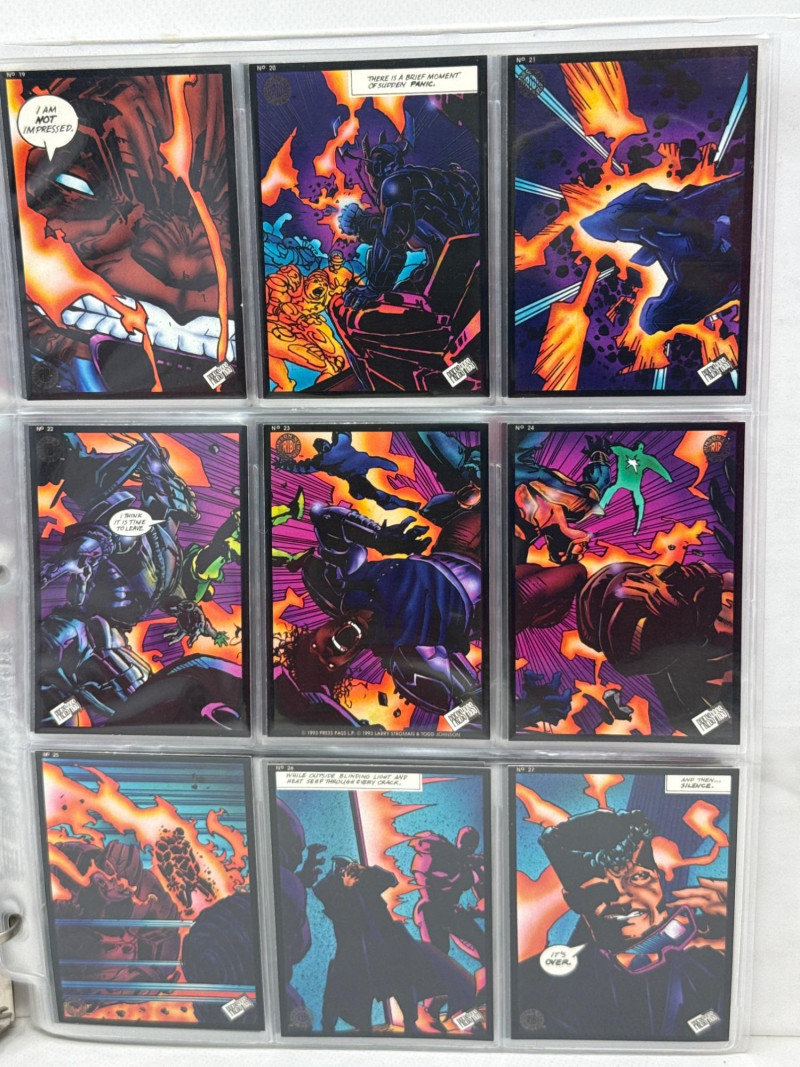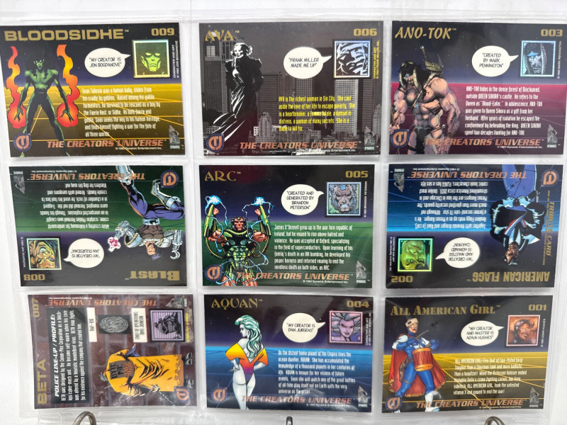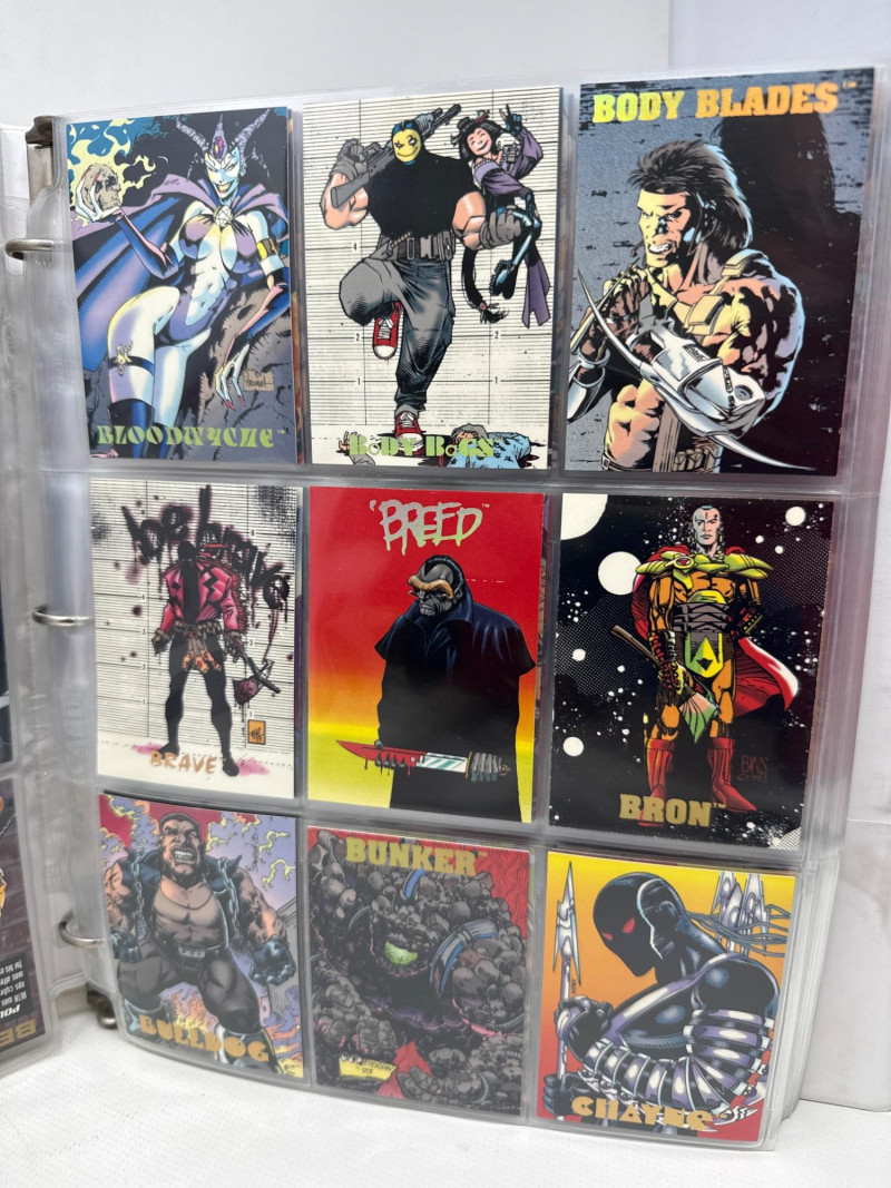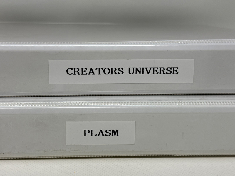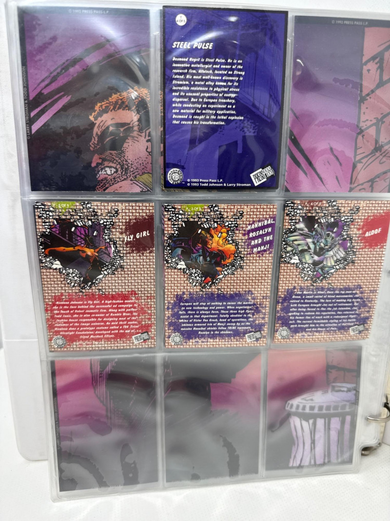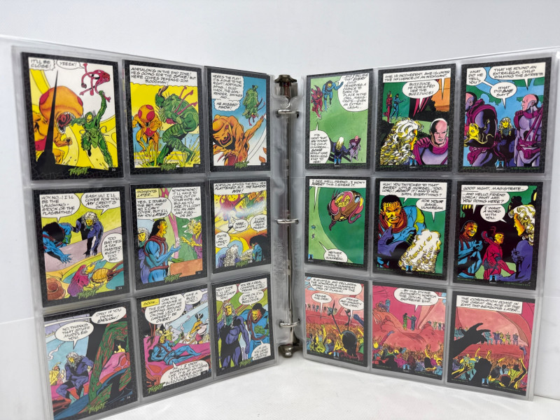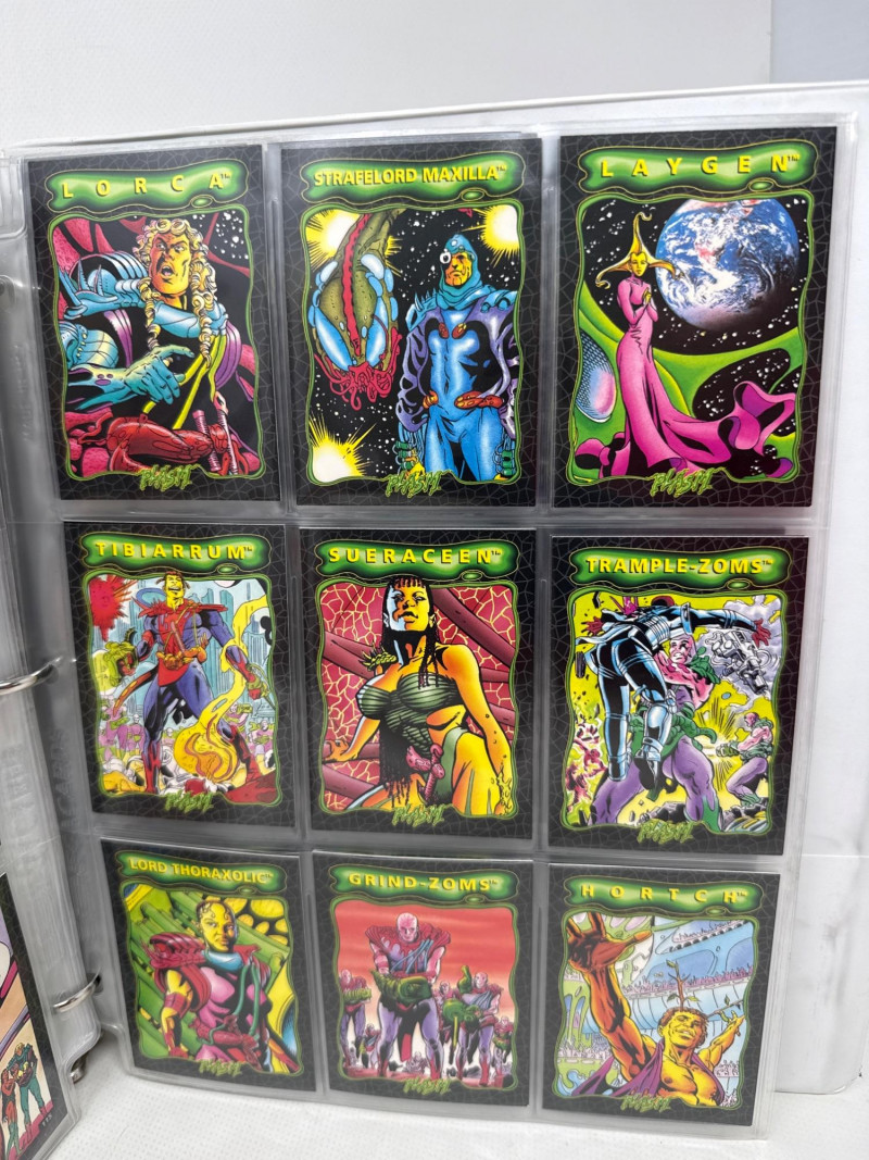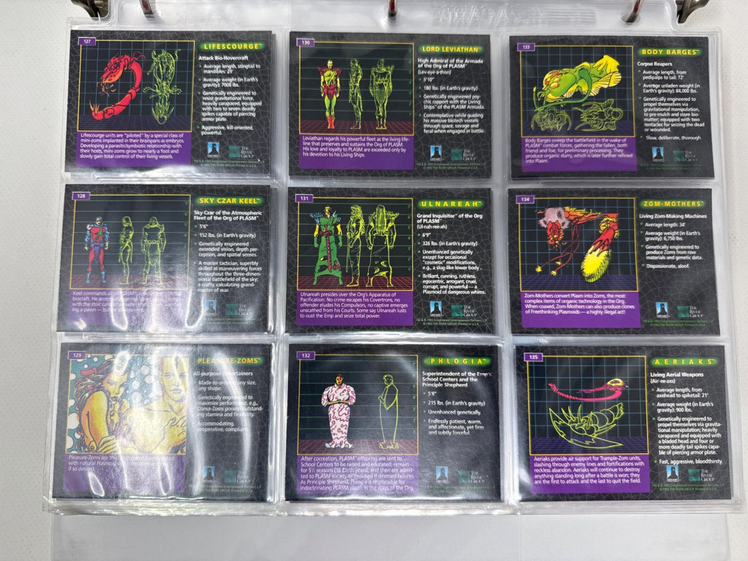 Fans and collectors of trading cards, sci-fi and fantasy will appreciate this collection of trading cards. Plasm and Creators of the Universe trading cards preserved in two binders with card protector sheets. These cards are in very good condition. Very clean and unblemished. Vibrant color and detailed graphics are very striking.