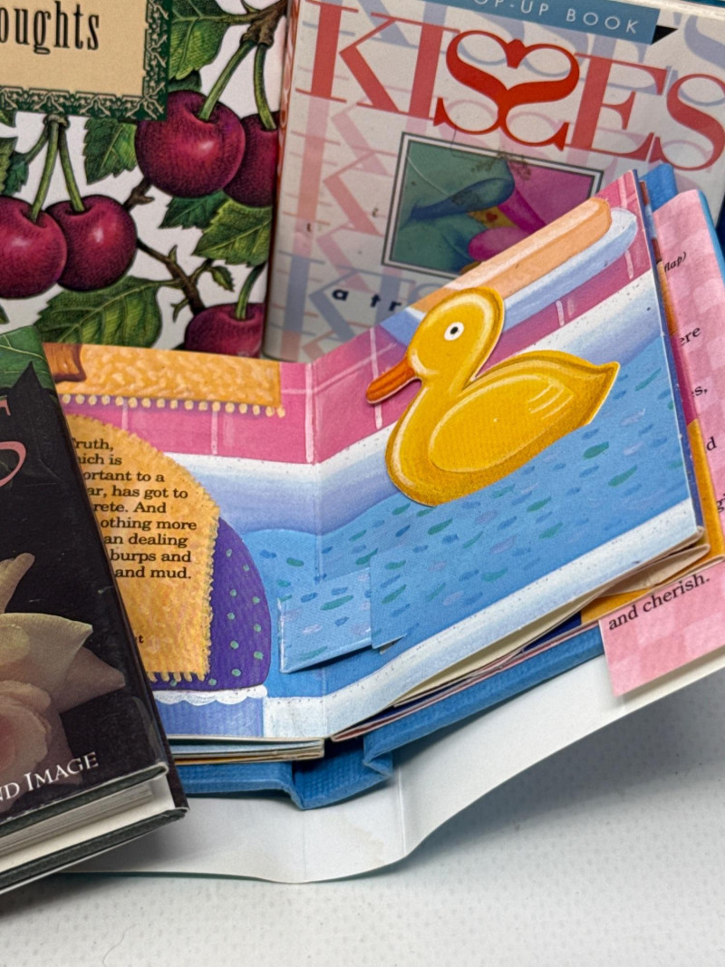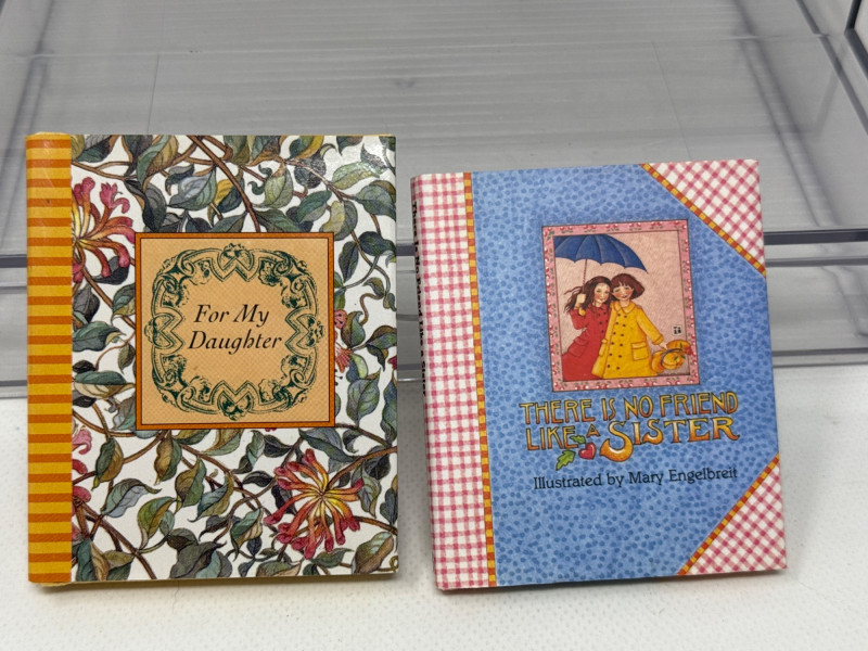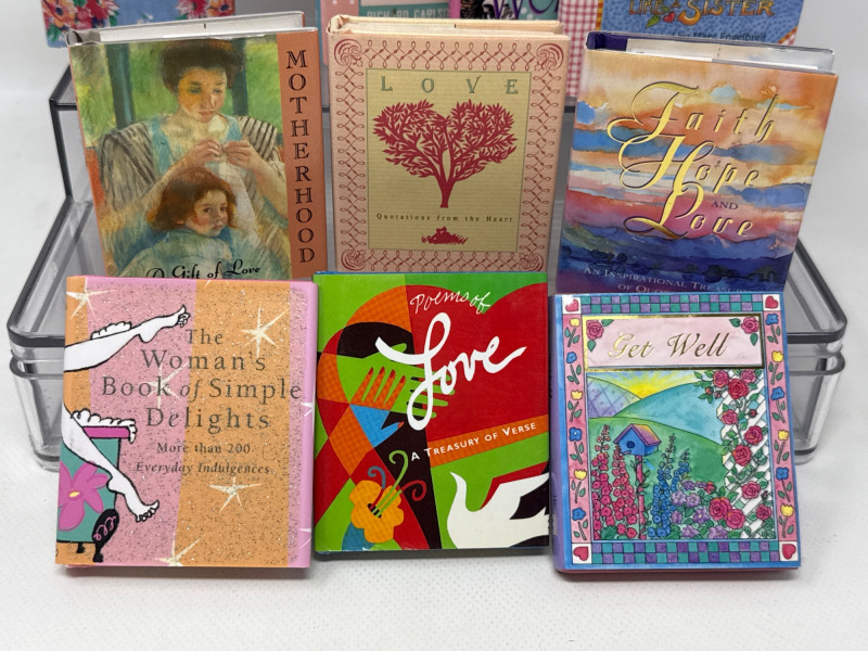 Charming vintage mini gift book collection featuring uplifting themes of faith, family, love, and wisdom. This assorted lot includes a variety of beautifully illustrated titles, some with attached bookmarks and a couple of interactive pop-up books that add extra character and appeal. Books are compact in size.