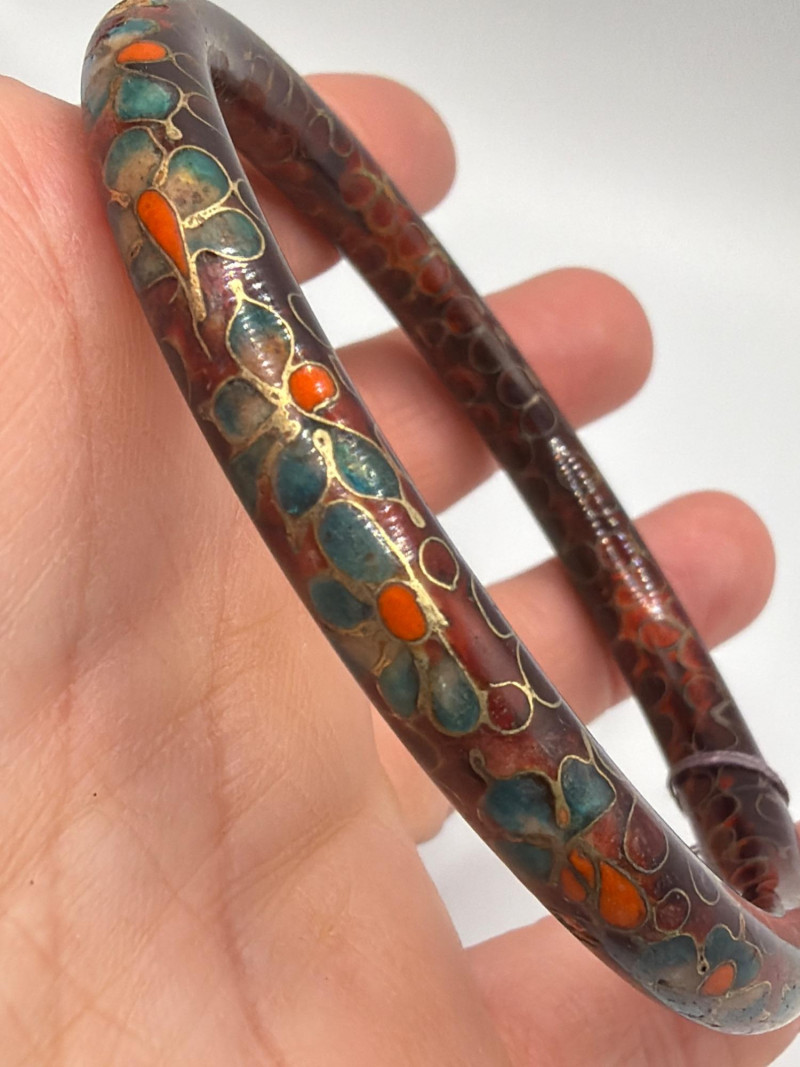 Antique Cloisonne Bracelet duo. The Inner Diameter 2.5”.