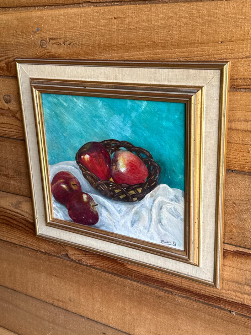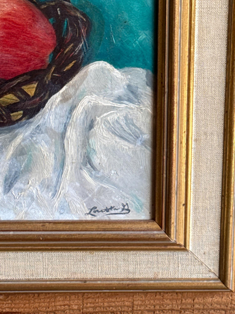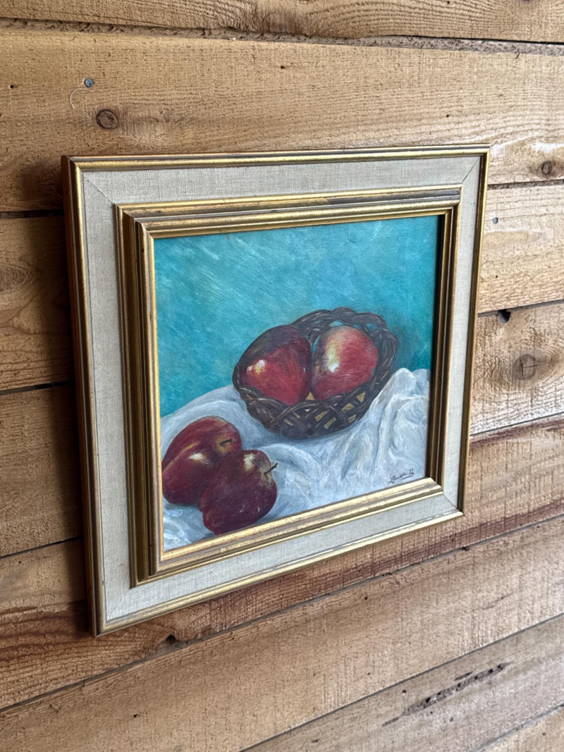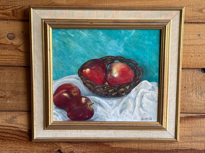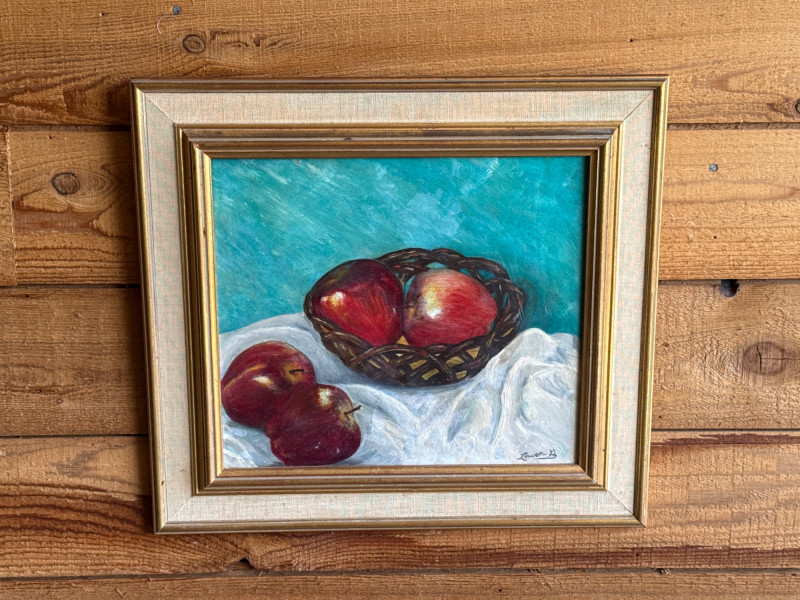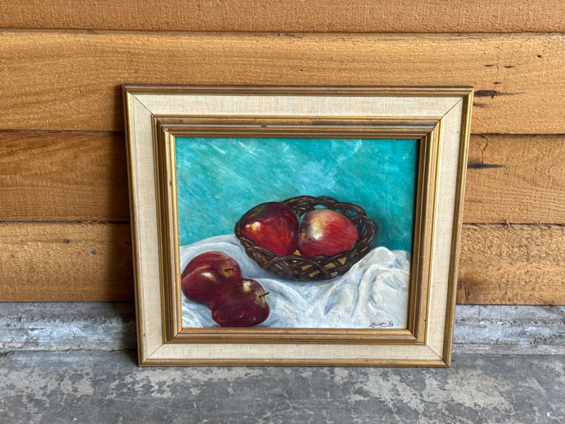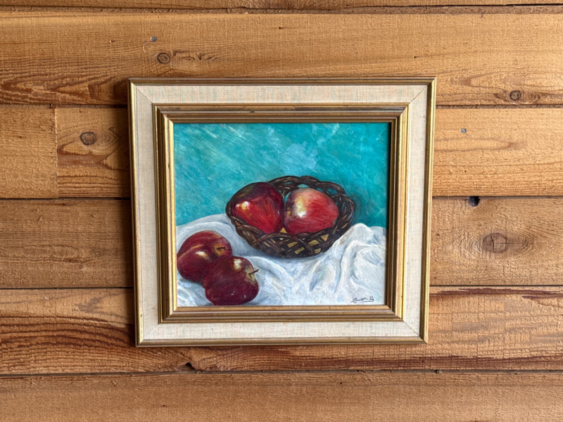 Lot # 19 - Textured Still Life Oil Painting - Fruit on Turquoise