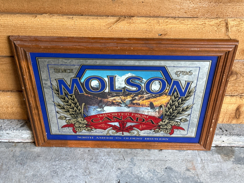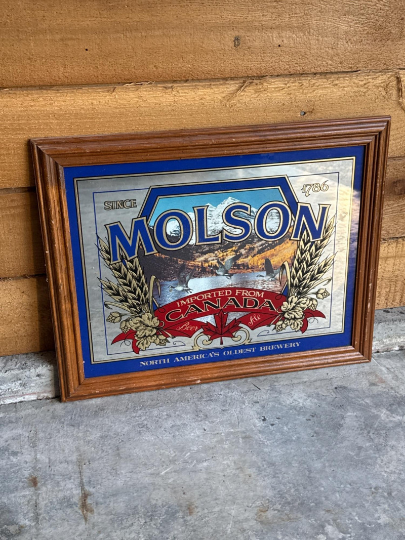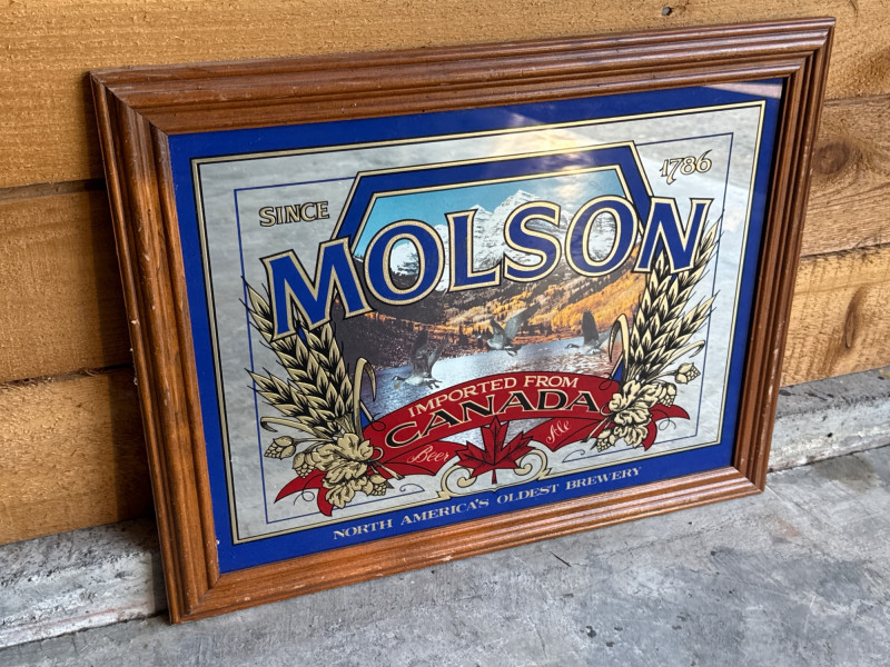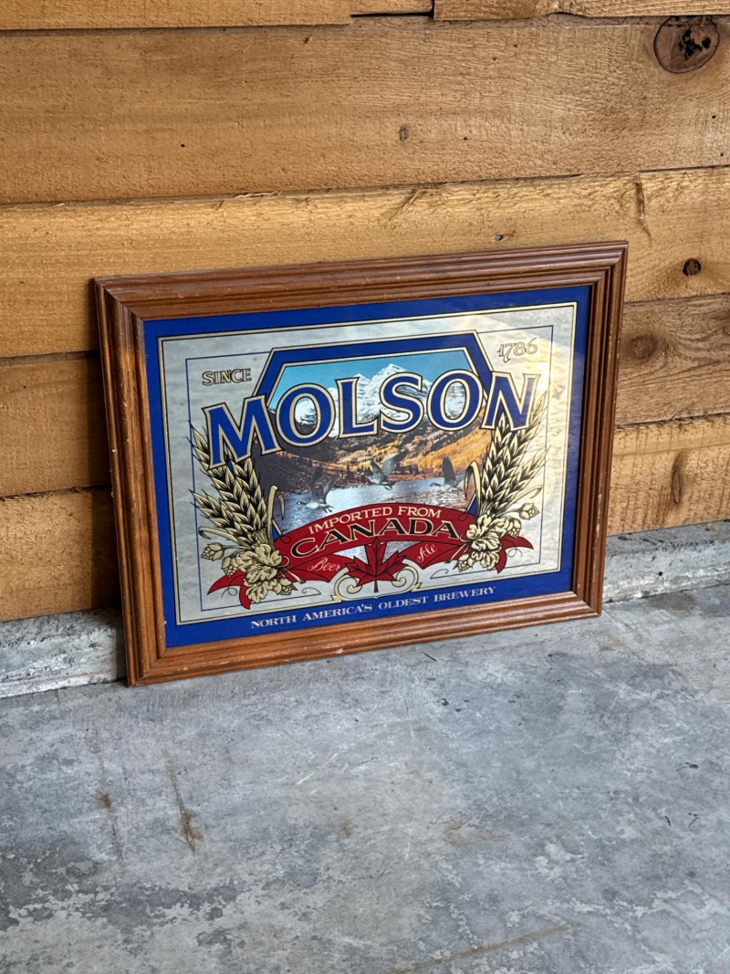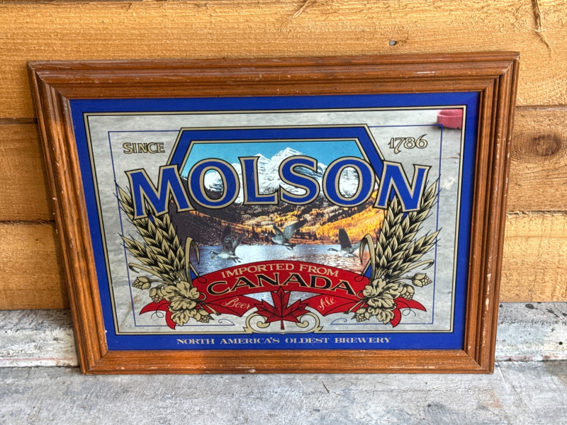 Vintage Molson Imported From Canada Beer Framed Mirror. Gently used condition.