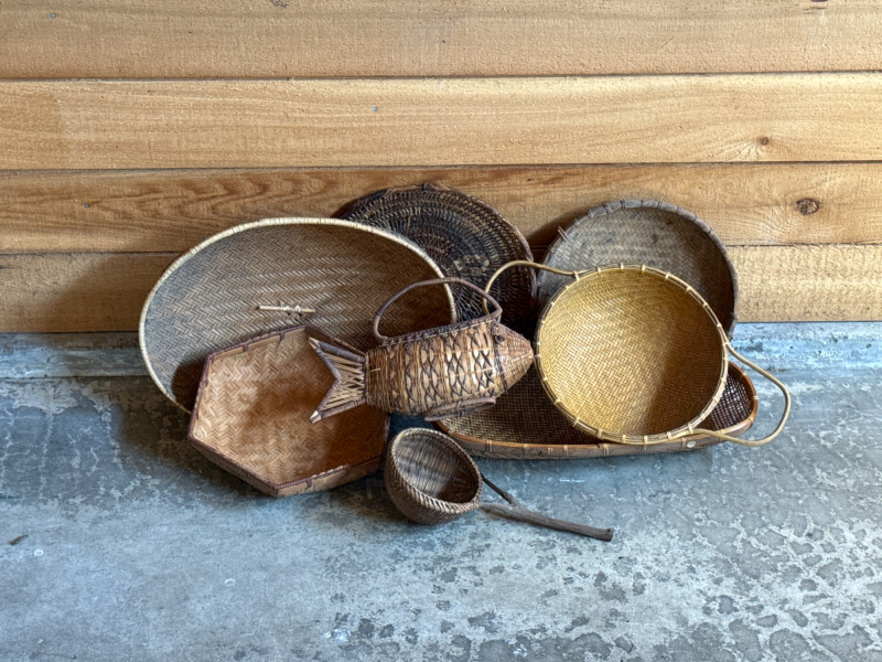 Vintage woven baskets. Have been in storage. Ranging in approximate size from 17” x 12” to 12” x 6”.