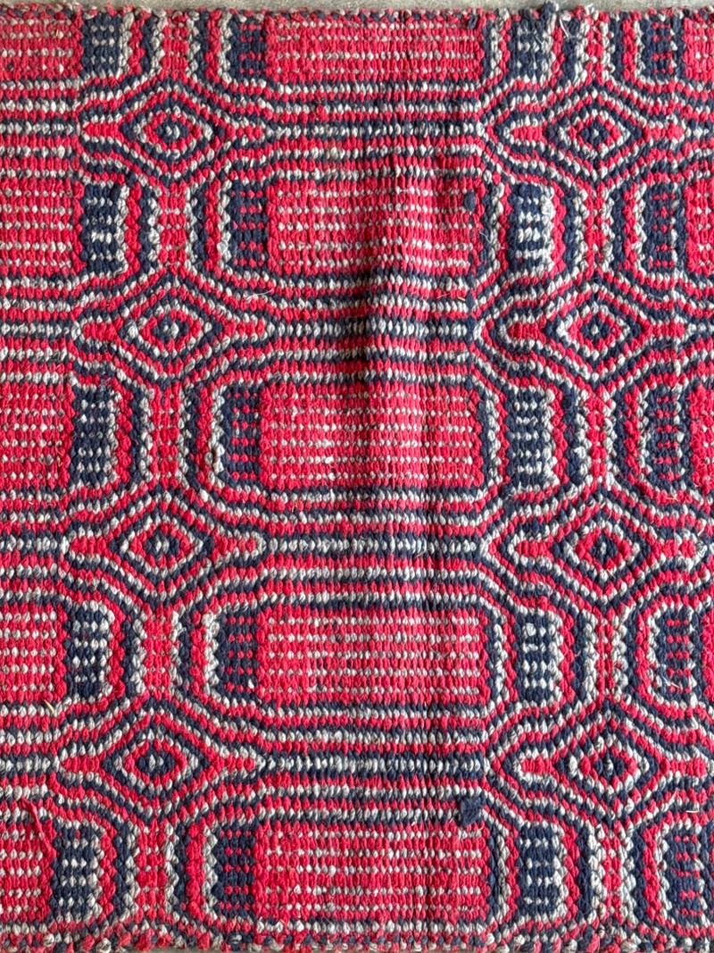 This rug is a bold statement piece for any space. Has been stored, cleaning suggested.