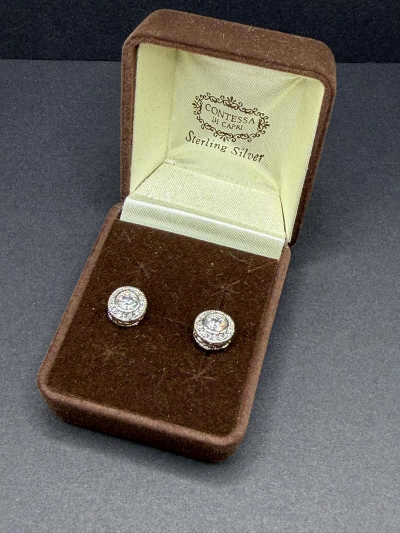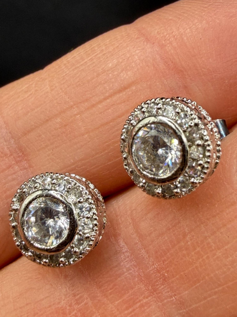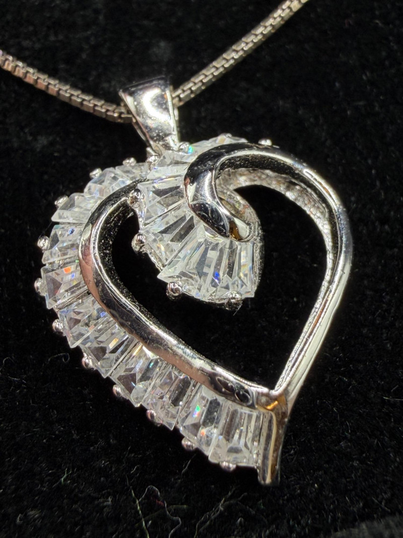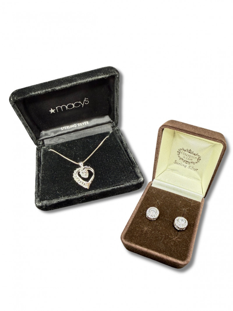 Lot # 42 - Sterling Heart Twist Necklace & Halo Style Stud Earrings- 9g
