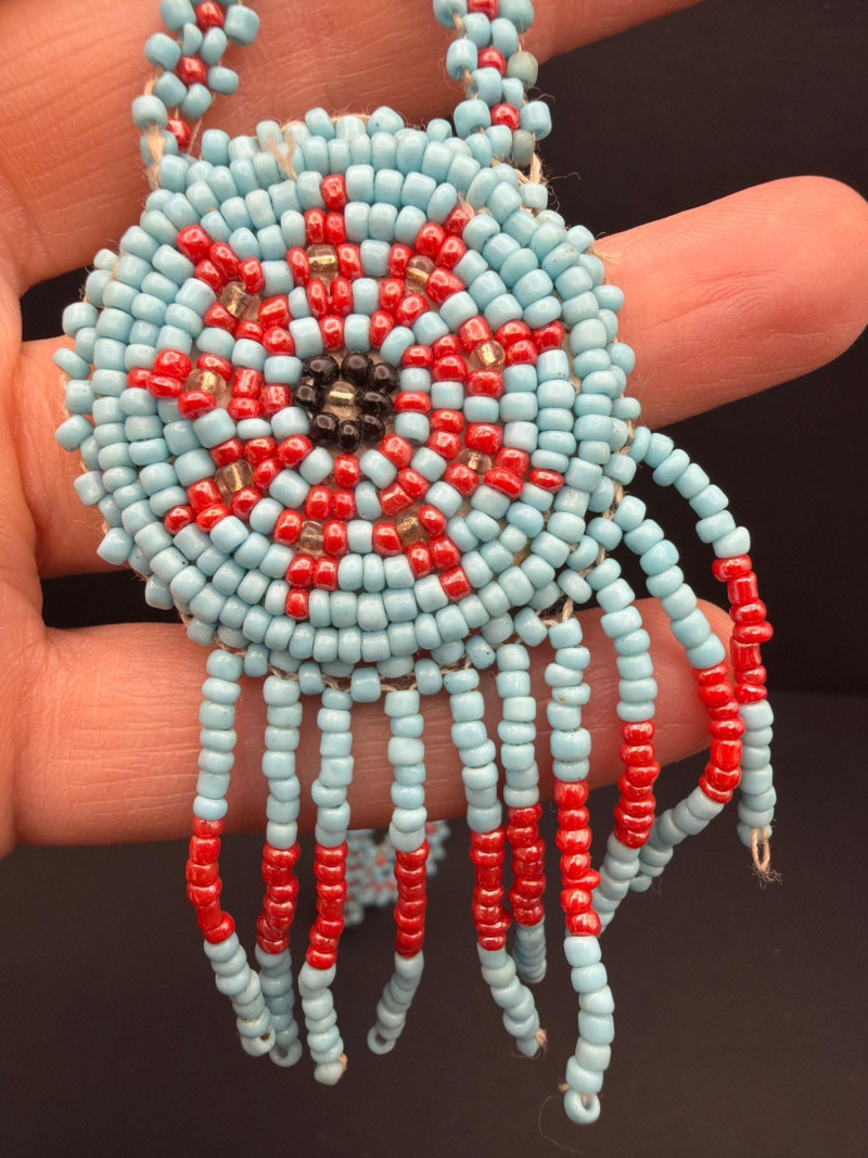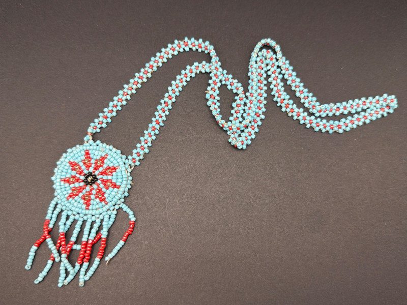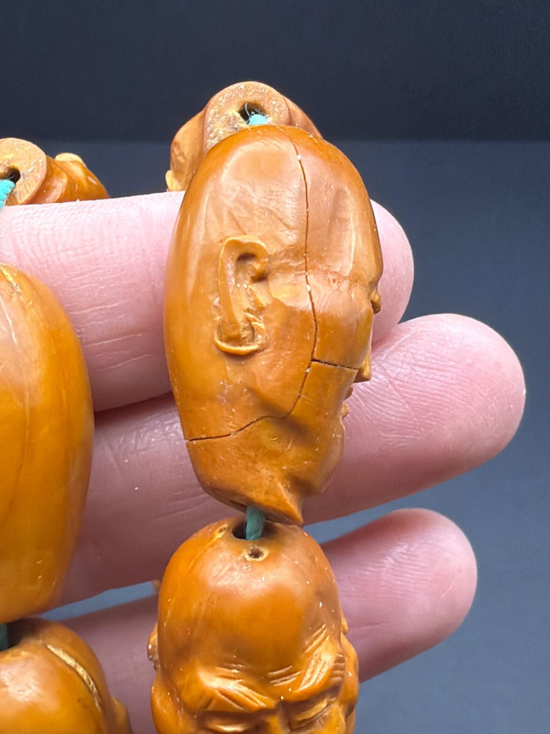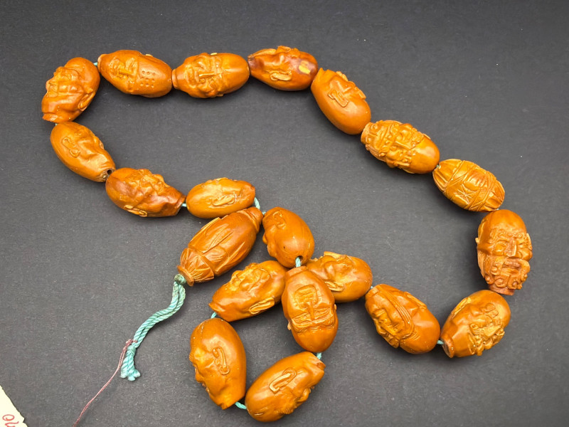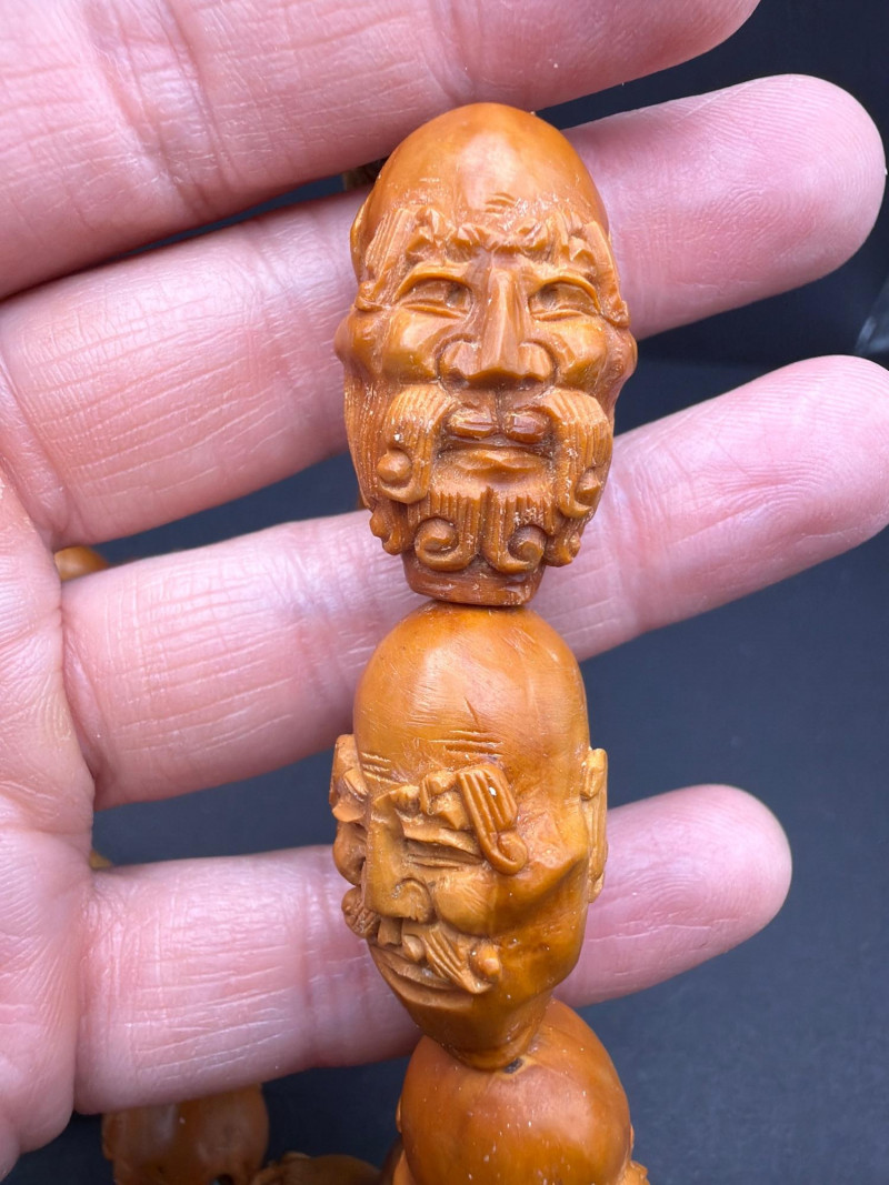 Beaded Native Style Necklace. 15" L Intricate Carved Chinese Hadiao Prayer beads. 11" L