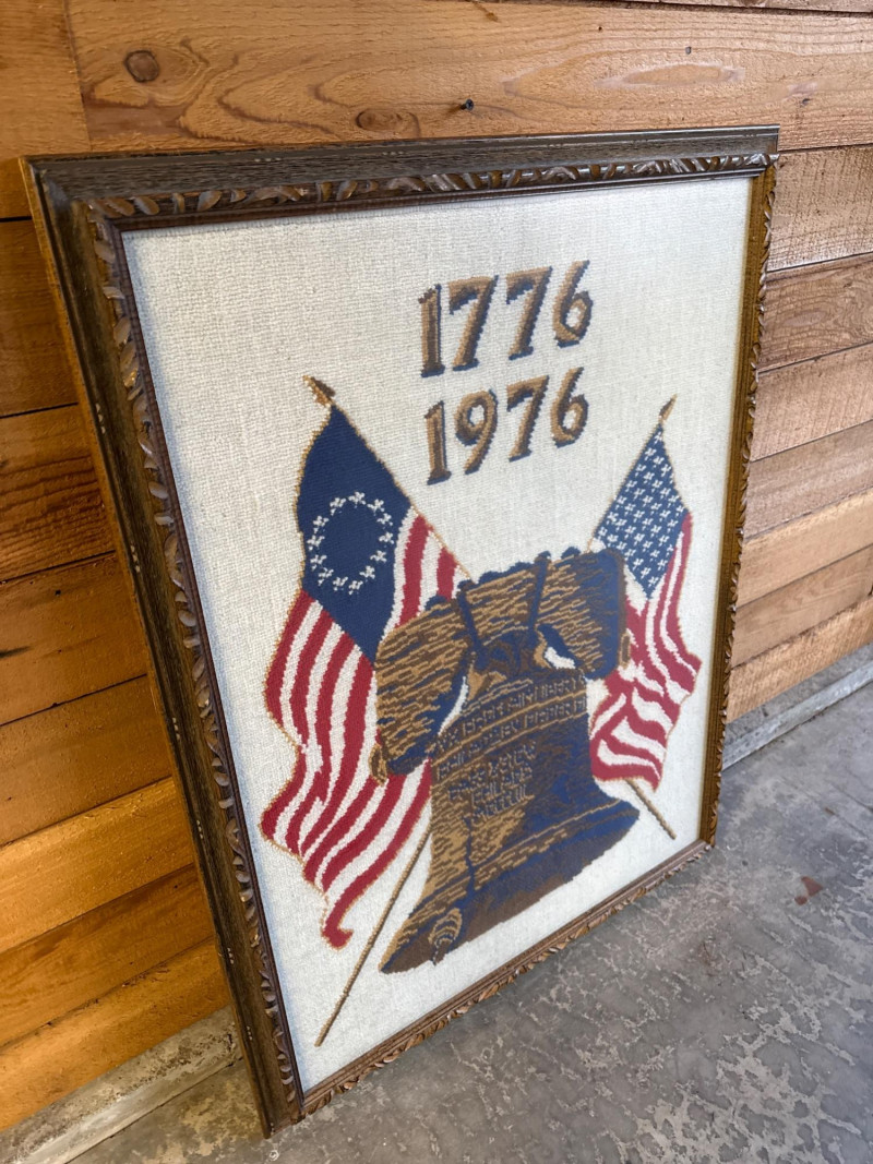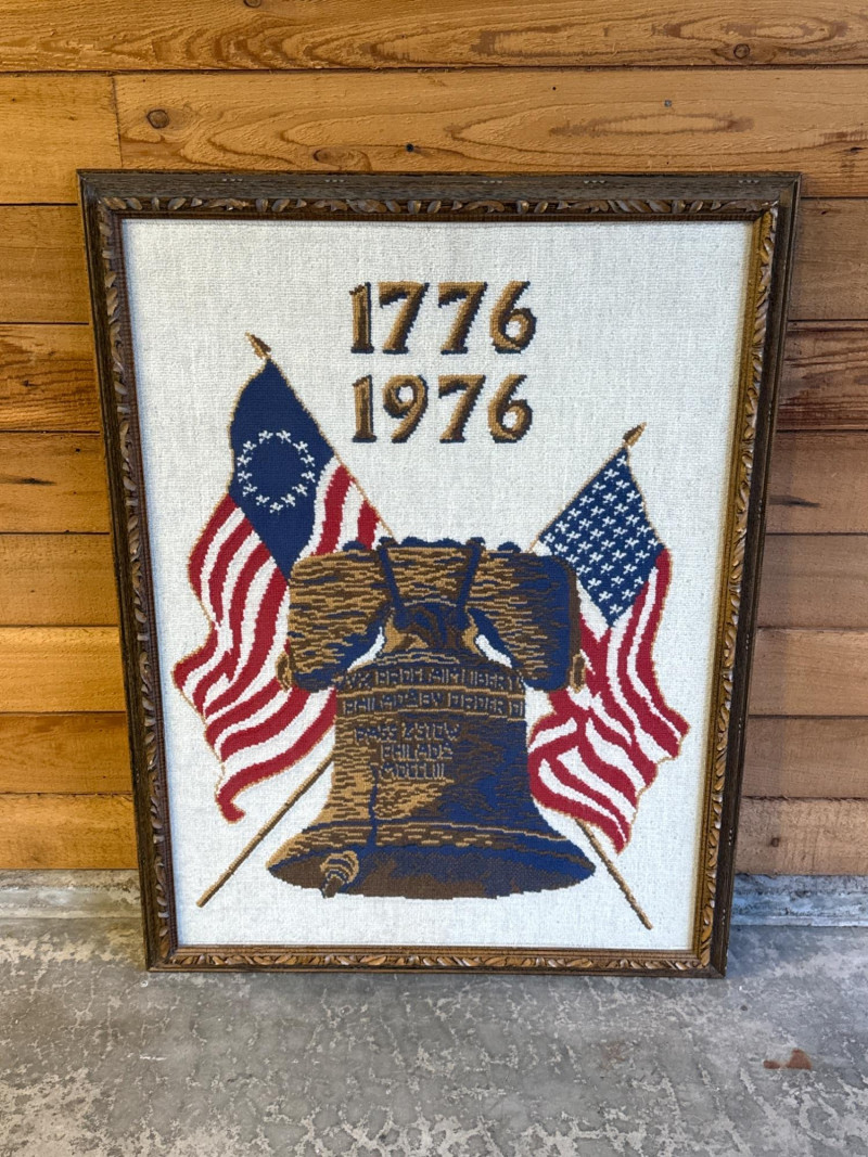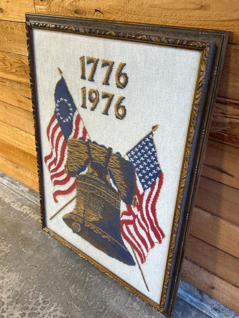 Lot # 60 - Vintage Bicentennial Framed Bell Needlepoint Art