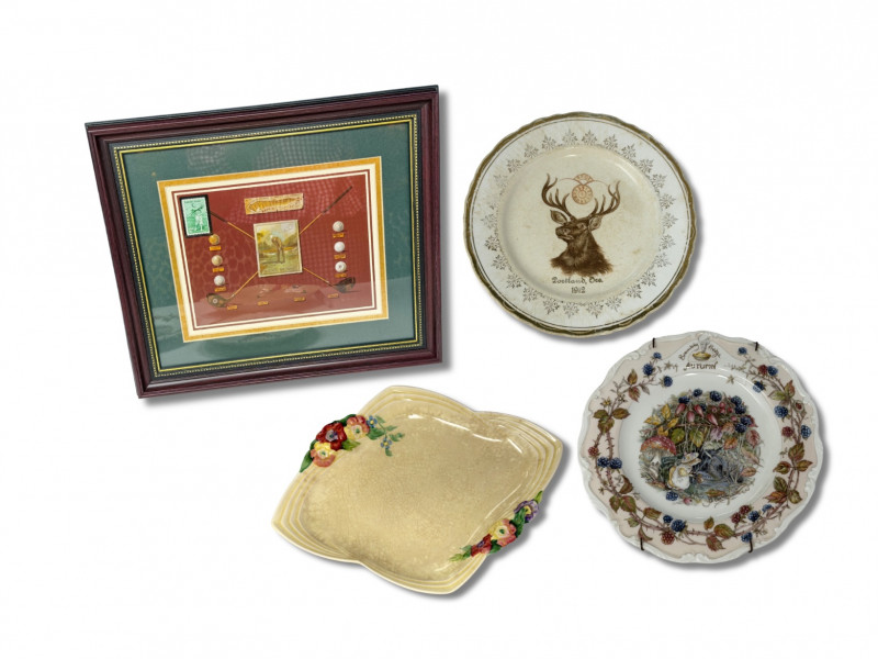 Lot # 66 - Vintage English-esque Decor- Golf Art & 3 Decor Plates
