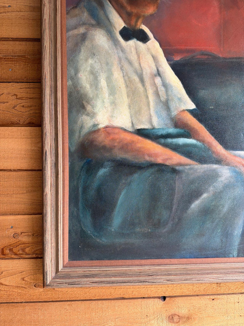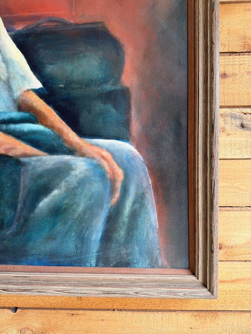 Large Portrait Impressionist Style Vintage Oil Painting