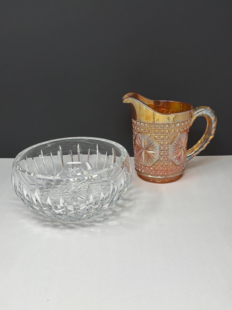 Cut Crystal Bowl & Imperial Glass Carnival Pitcher