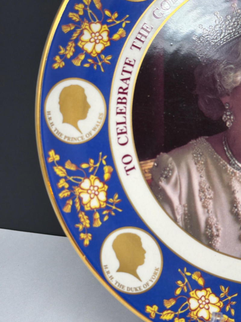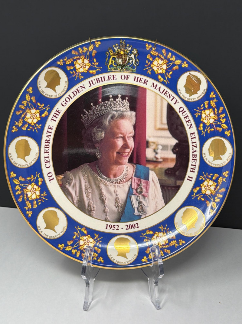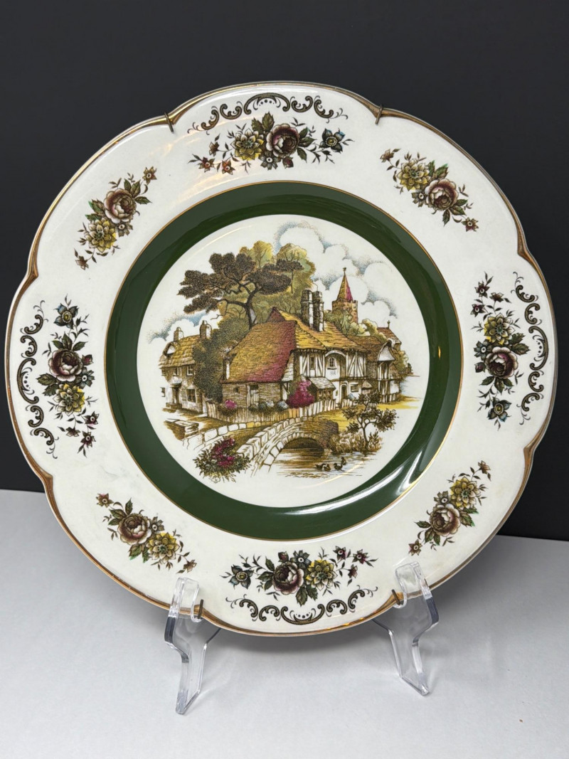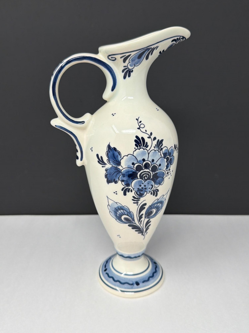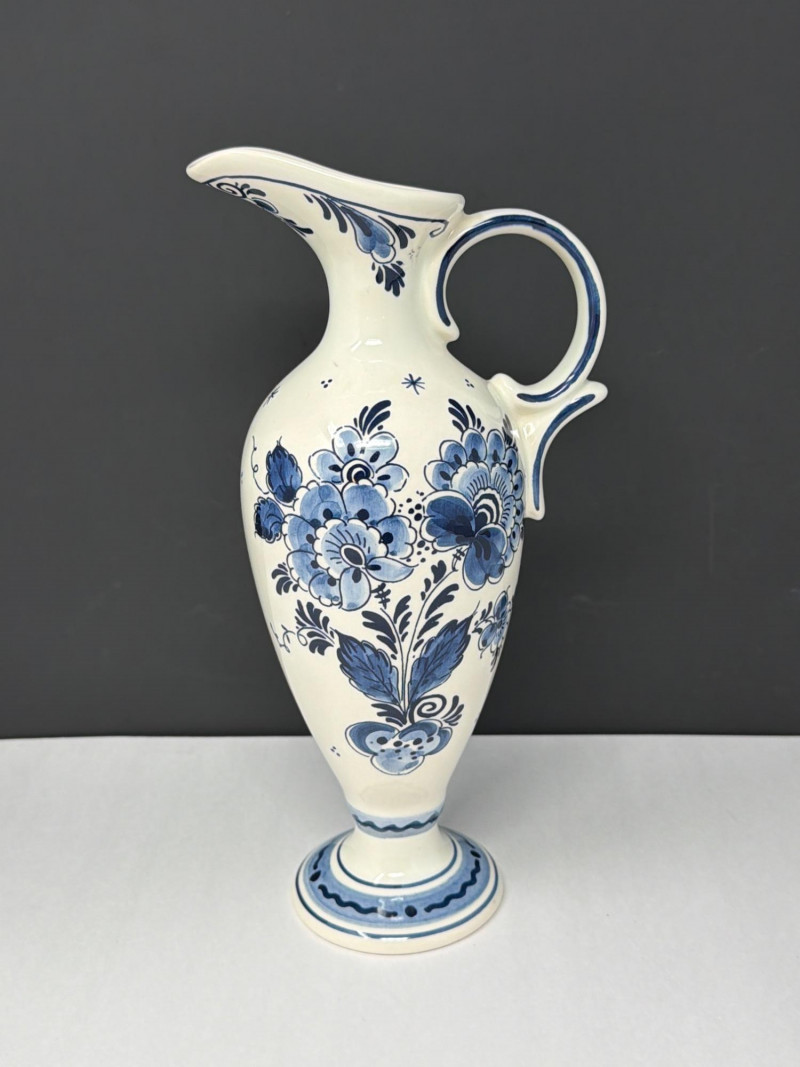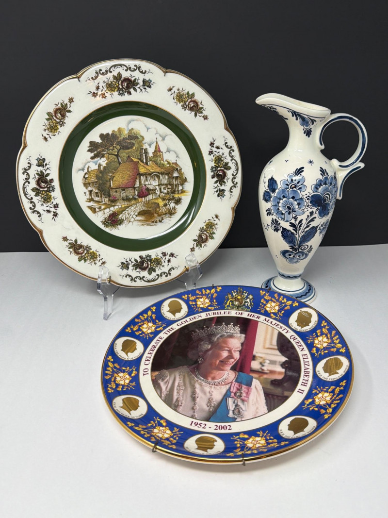 Hand Painted Delft Pitcher & English Plates. Delft Vase- 10” Queen Elizabeth Plate-10.5” Decorative Plate-9.5”