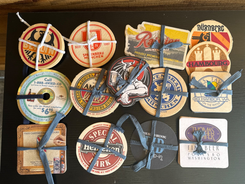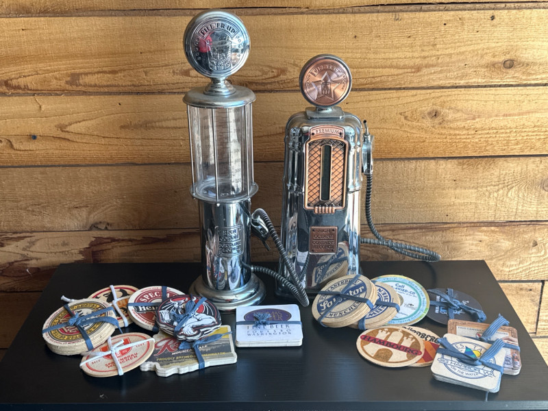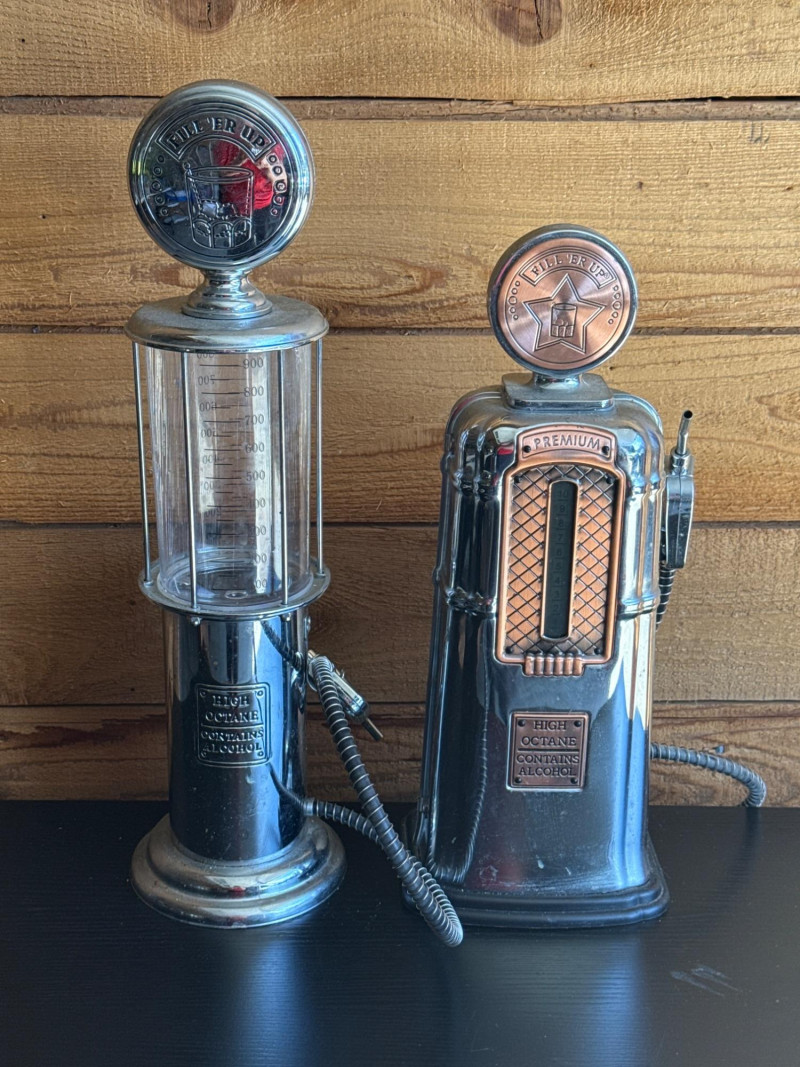 Set of Alcohol Dispensers and Coasters. 1-19.5 H 2-16.5 H