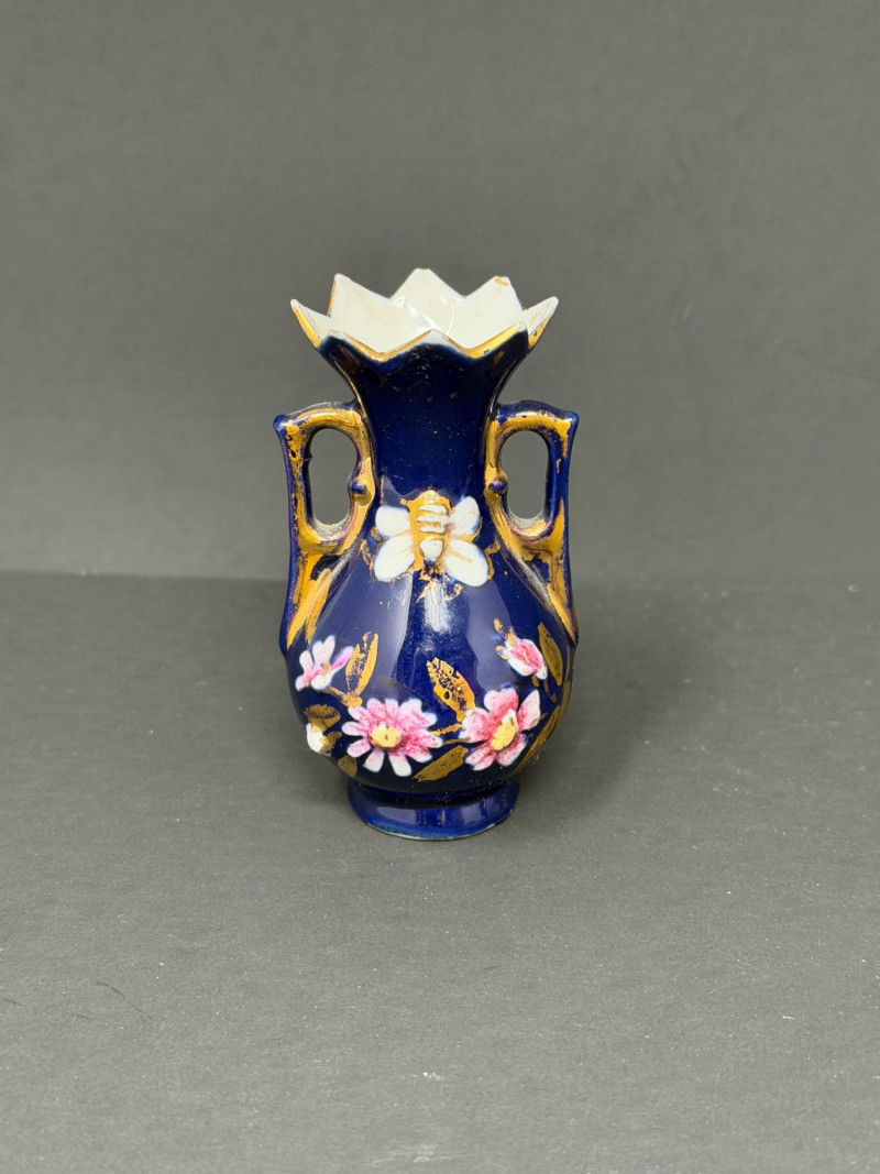 Amethyst Vase- 4.3” H x 2.75” W Plate- 3” D Cobalt Vase- 3” H