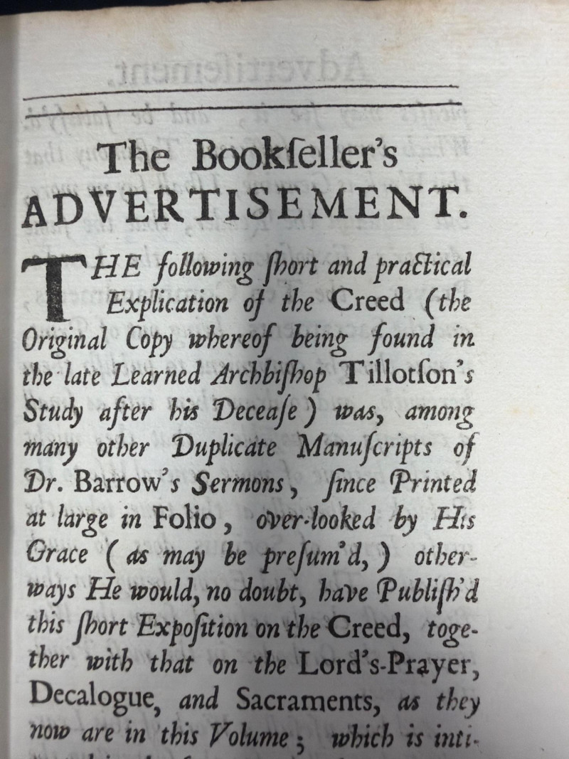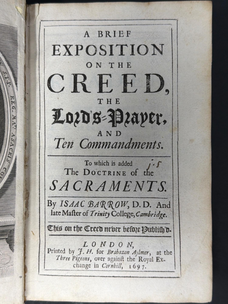 Lot # 107 - 1697 “Brief Exposition of the Creed” Isaac Barrow- $350+