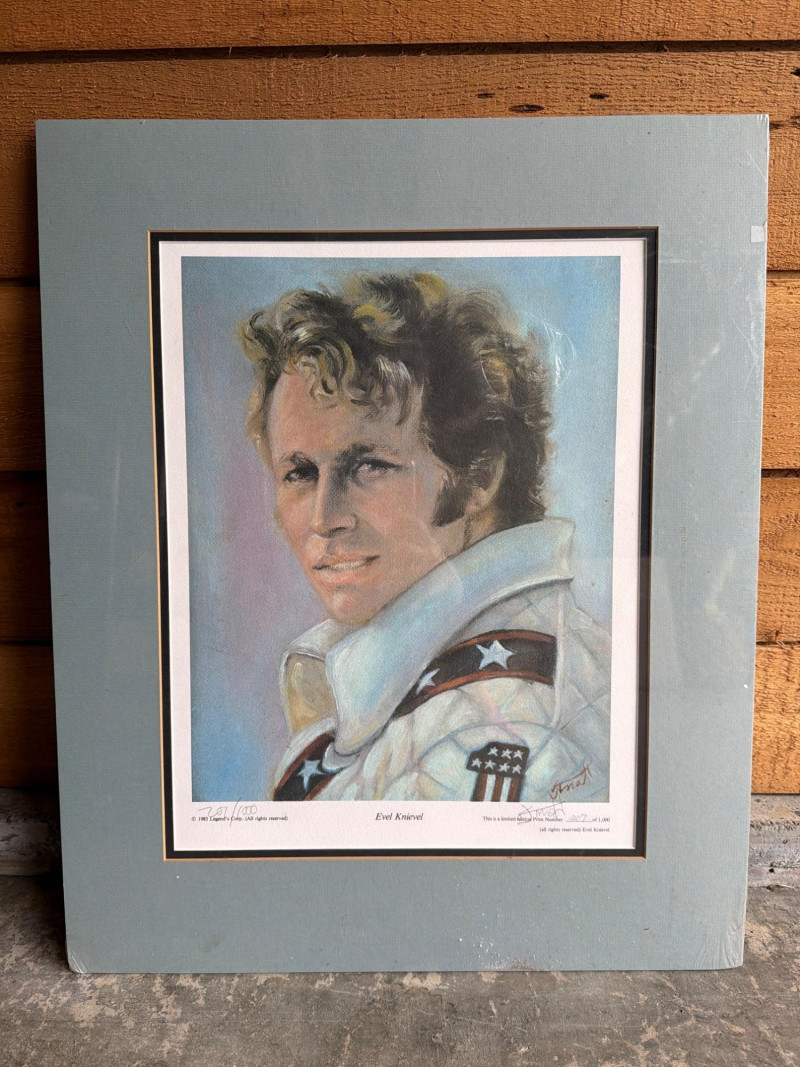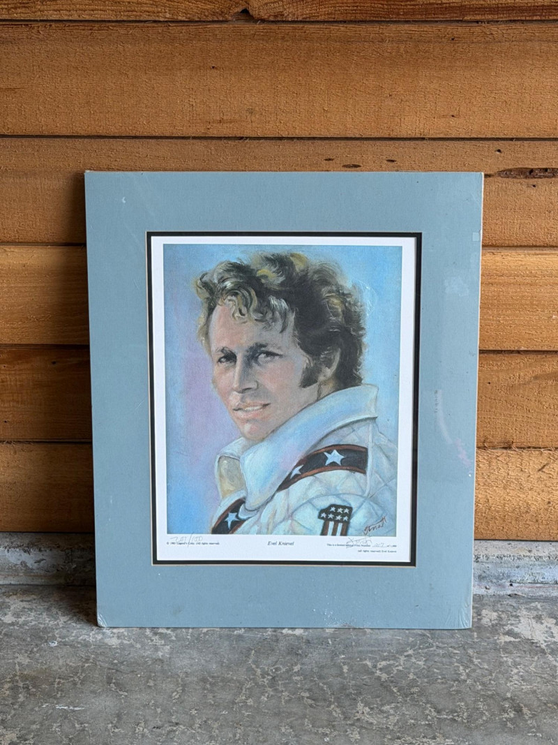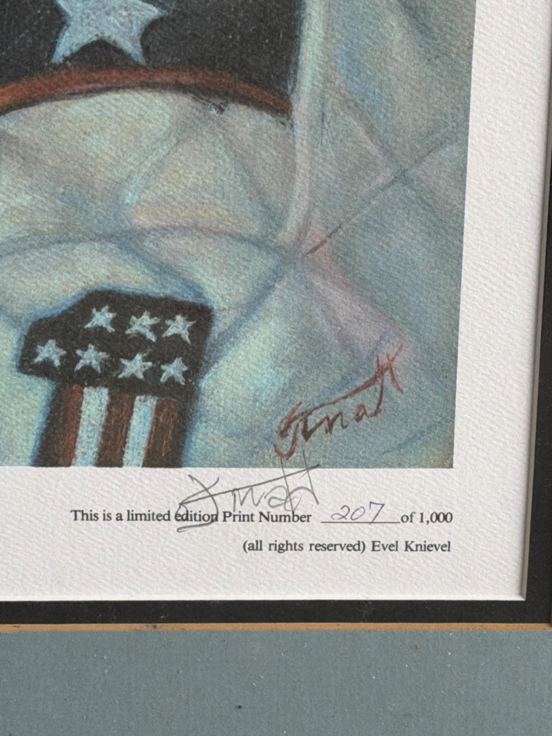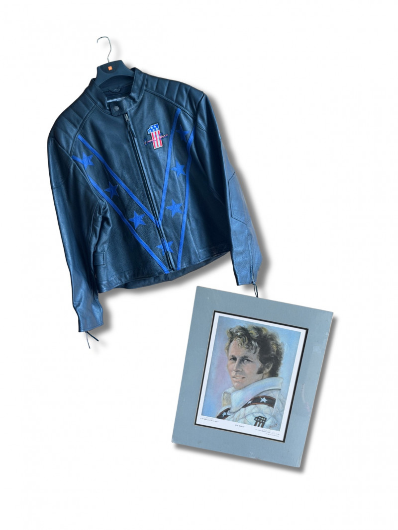 Lot # 110 - Evel Knievel Jacket (3x) & Signed Self Portrait (Lithograph)