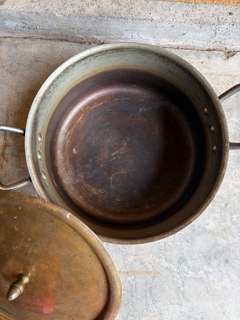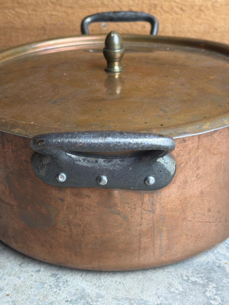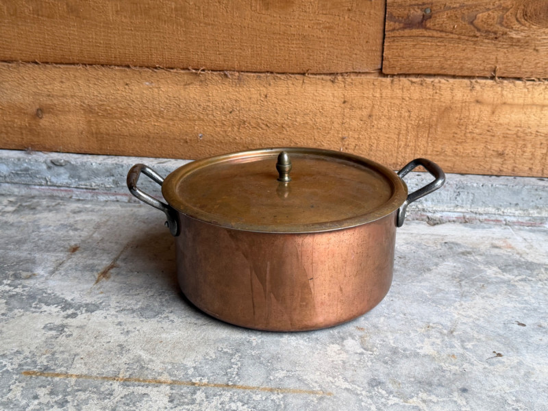 Antique Copper Stock Pot with Lid