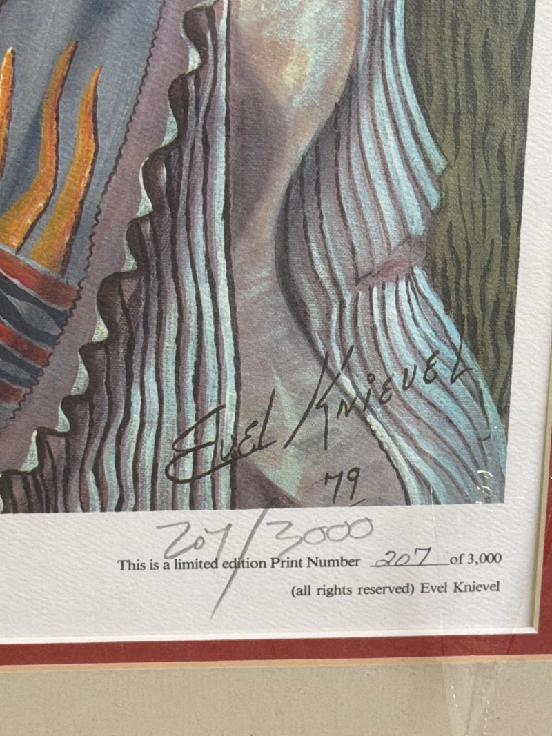 Lot # 116 - "Facing Decision" Art Print *Signed Evel Knievel 1979
