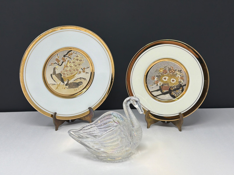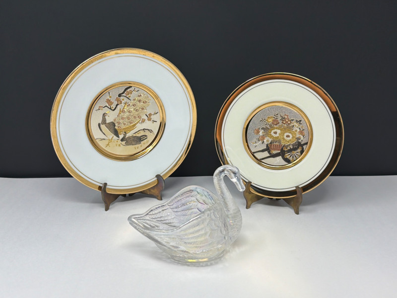 Lot # 118 - Chockin Japanese Plates & Imperial Glass Swan Trinket Dish