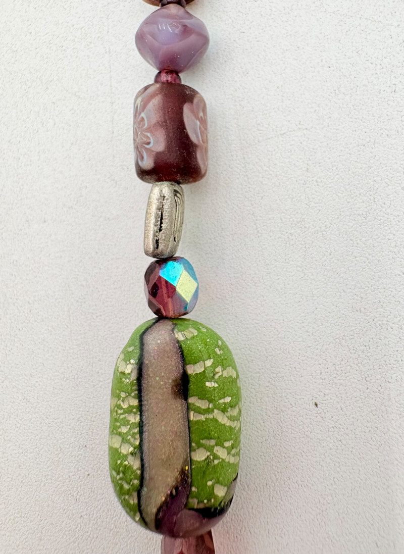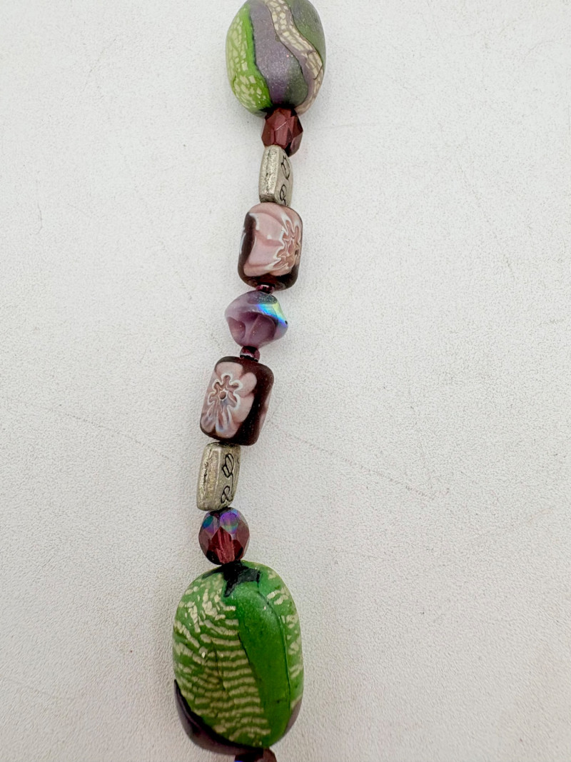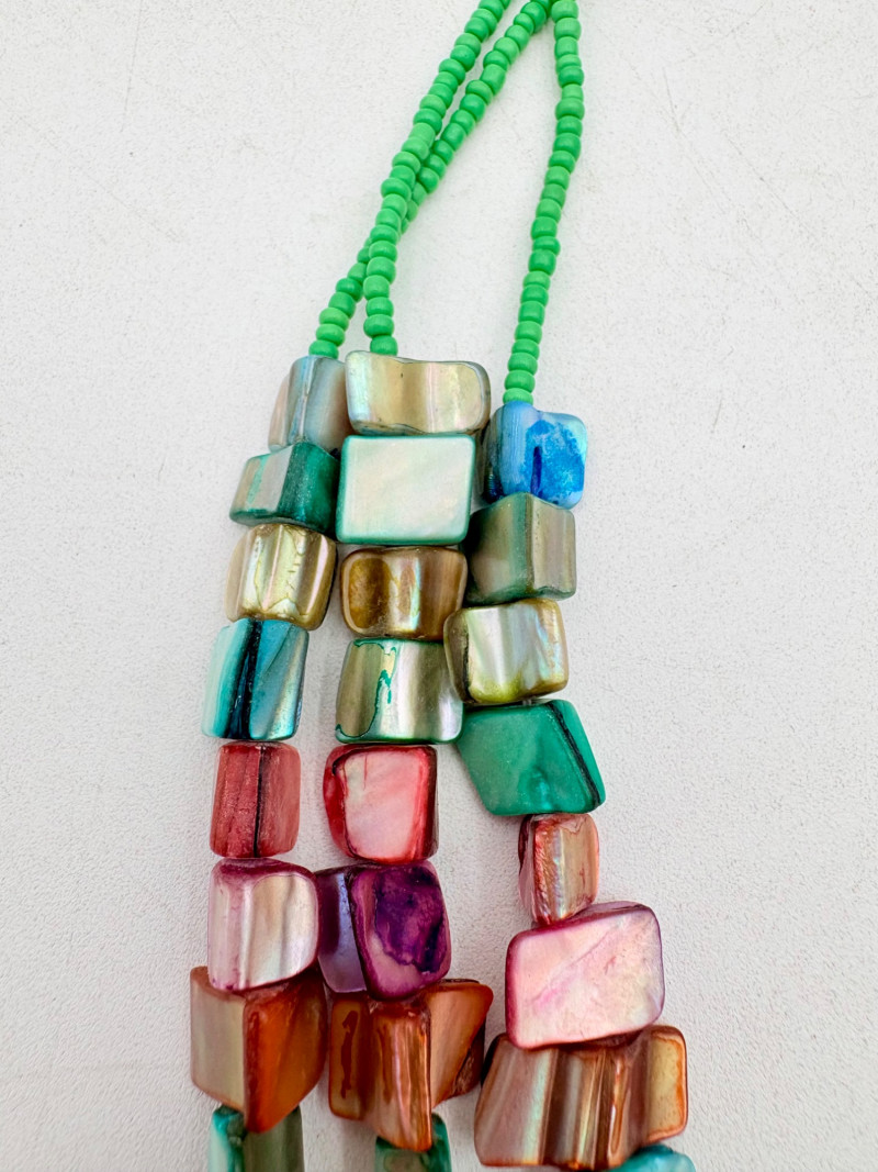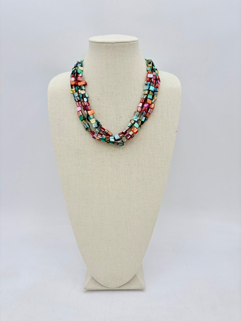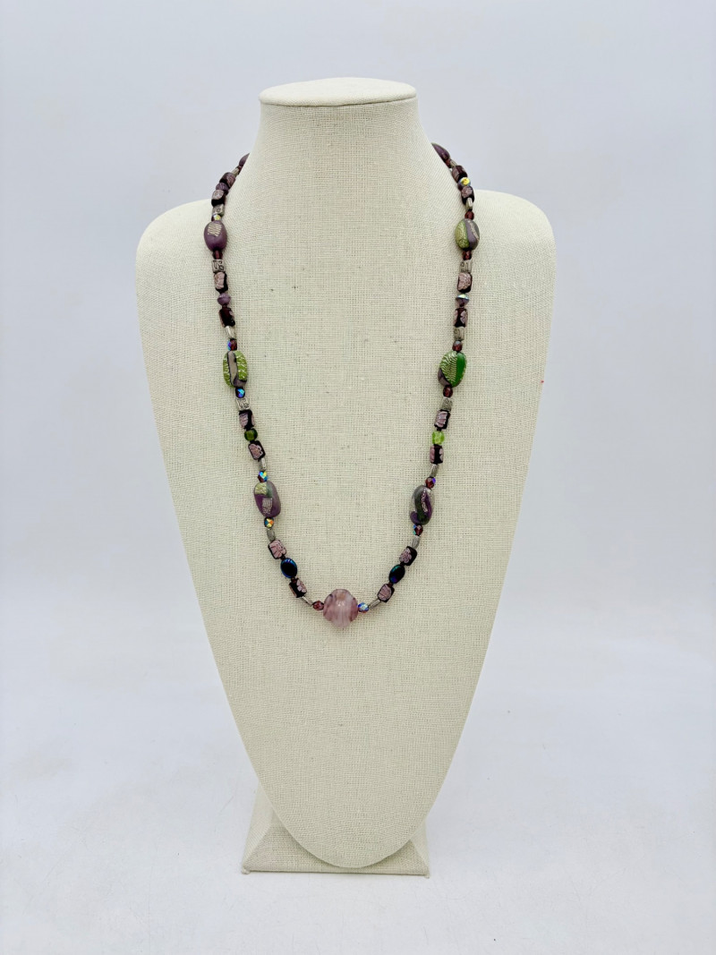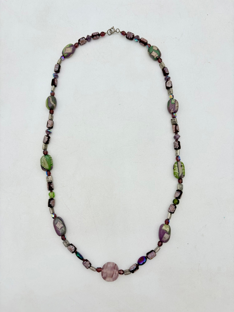 4 distinctive necklaces with rich color and great presence. We believe these are artist-made with the exception of the Sylca necklace with the floating squares (Sylca necklaces are hand-made, but not one of a kind).