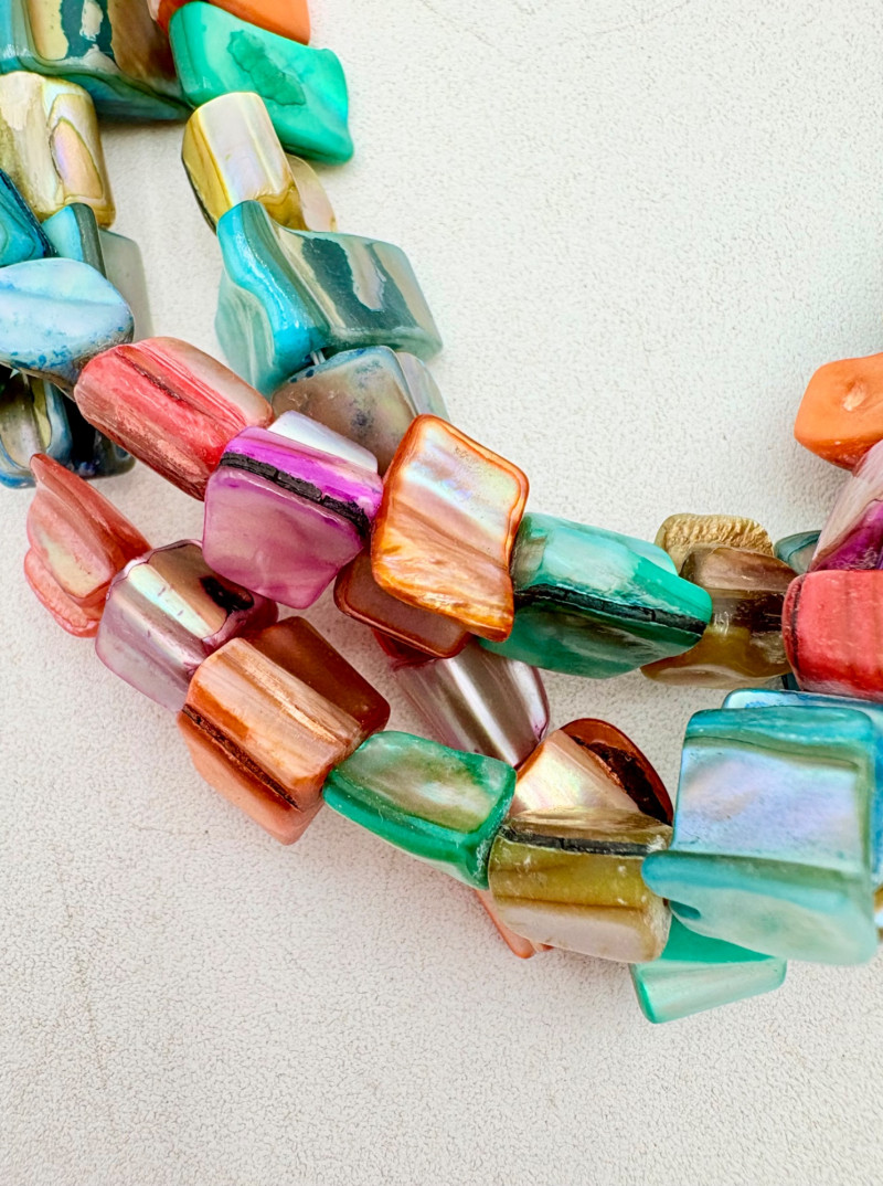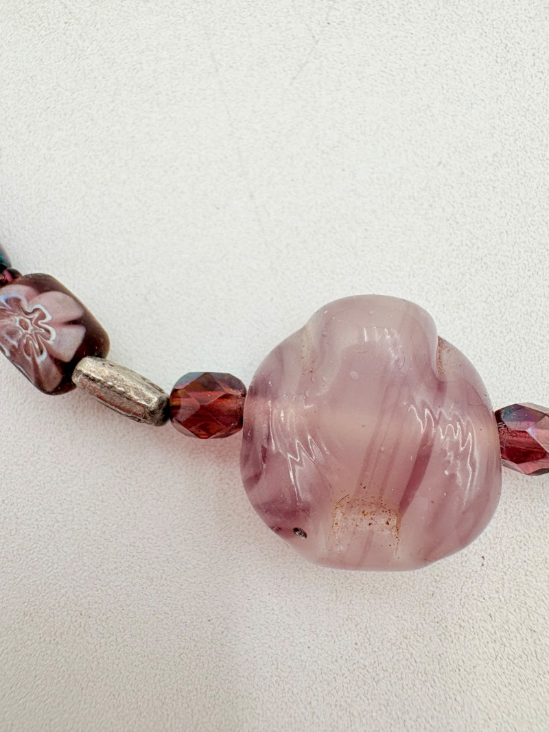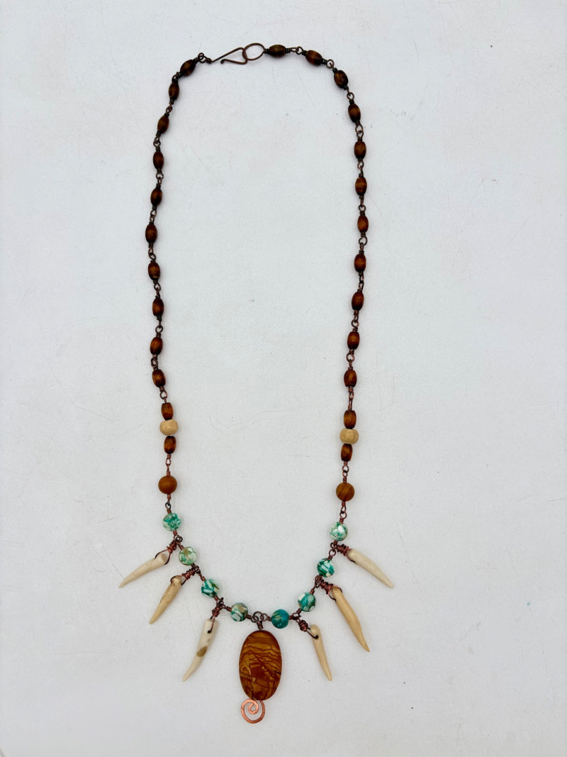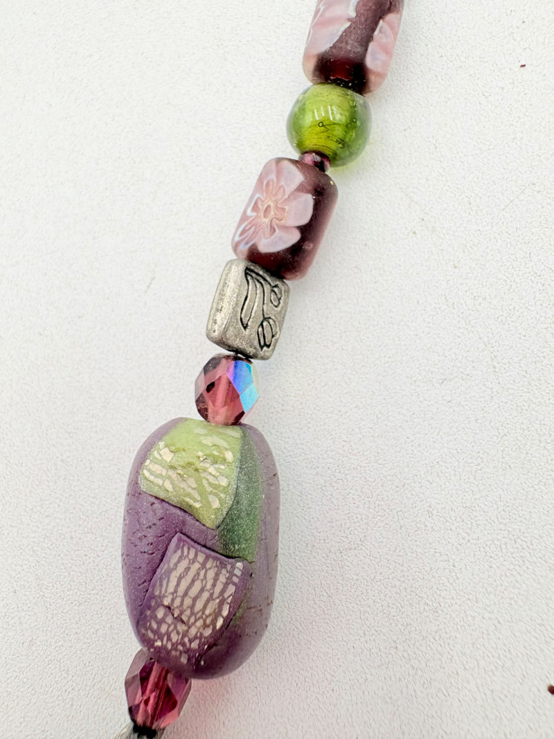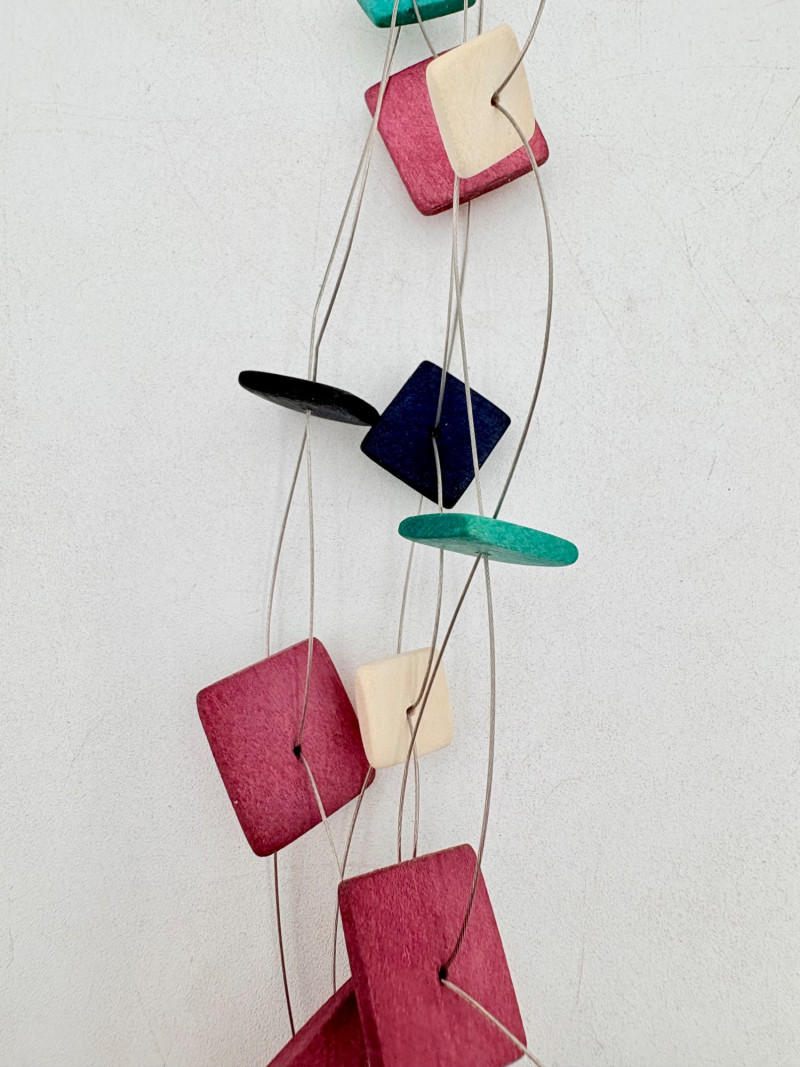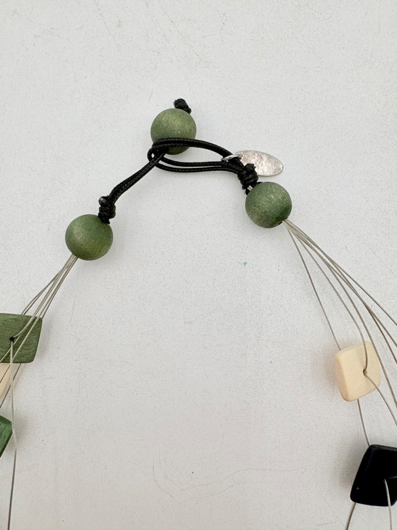 4 distinctive necklaces with rich color and great presence. We believe these are artist-made with the exception of the Sylca necklace with the floating squares (Sylca necklaces are hand-made, but not one of a kind).