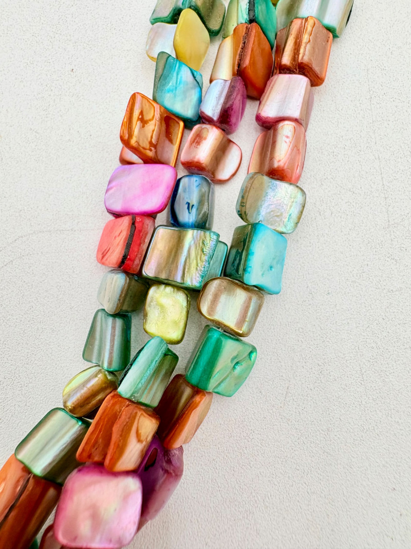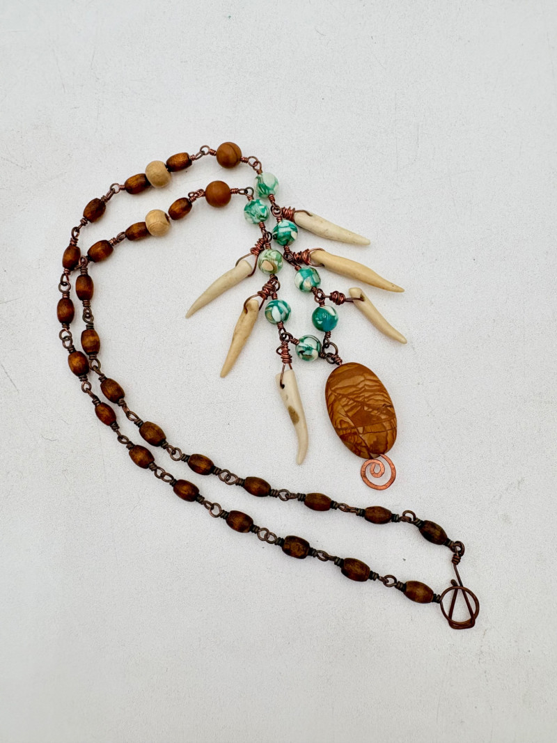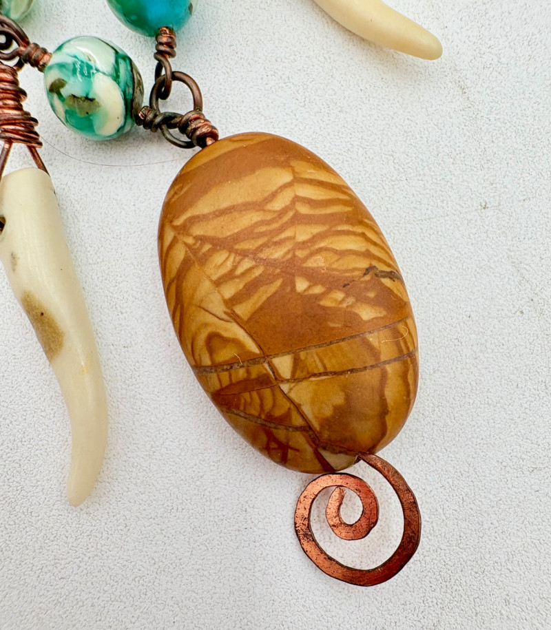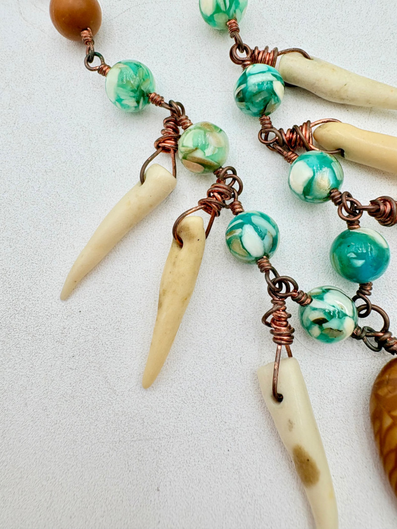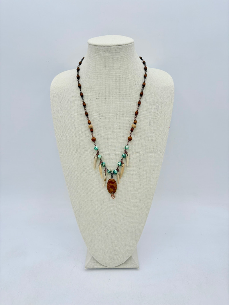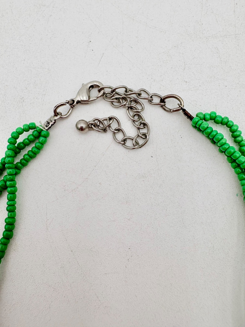 4 distinctive necklaces with rich color and great presence. We believe these are artist-made with the exception of the Sylca necklace with the floating squares (Sylca necklaces are hand-made, but not one of a kind).