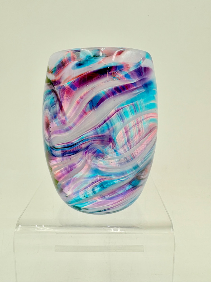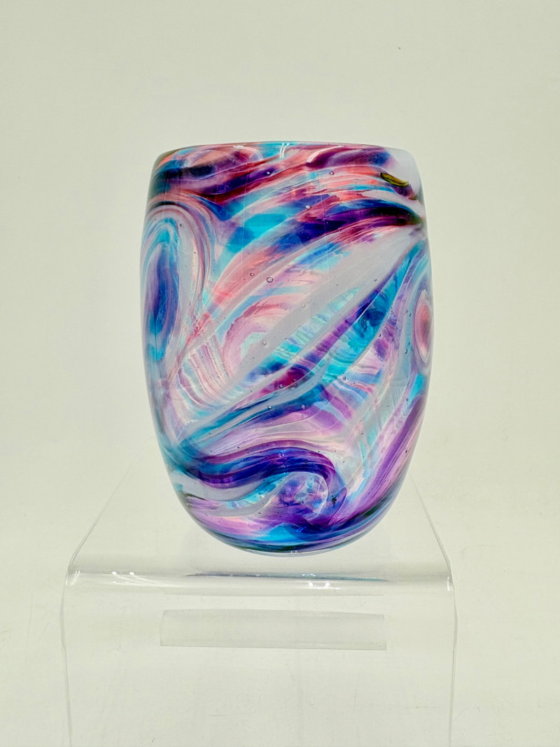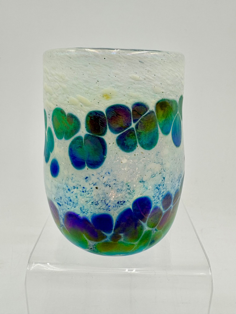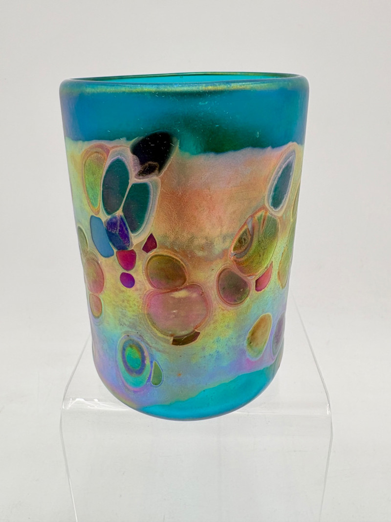 5 gorgeous artisan-made handblown glass drinking cups in wide variety of colors and surface finishes. Several are signed by their creators on the base, but we could not make out the signatures - see the photos of the bases & you might have more luck. These are real works of art that have the added bonus of being functional. They measure between 4.25" - 5" H.