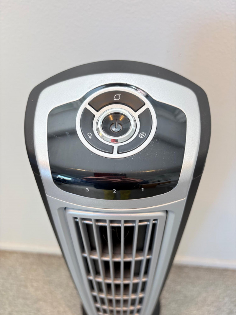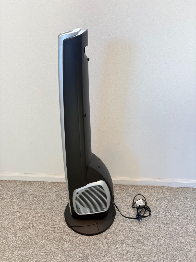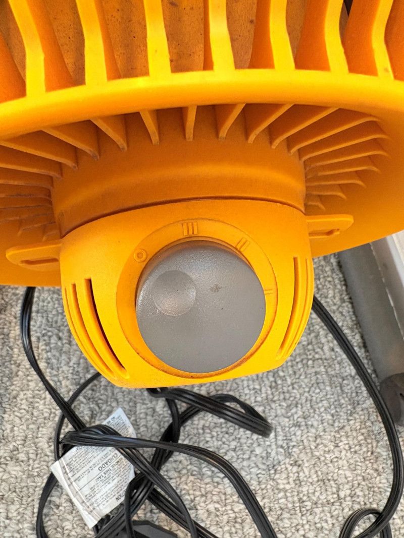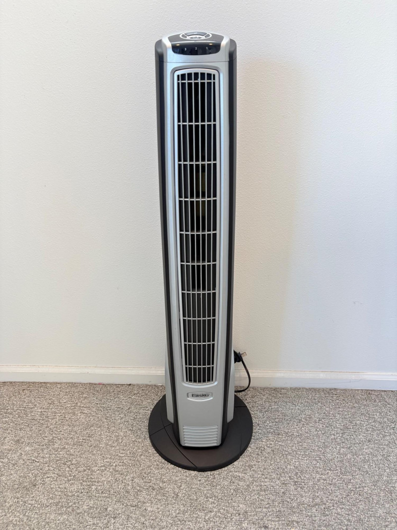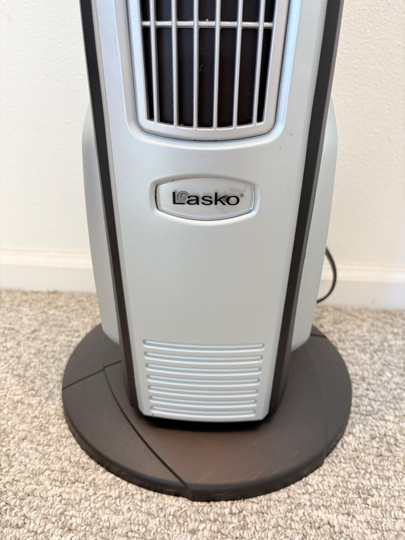 There’s a fan here for virtually every need. All three power on and appear to run correctly. Lasko oscillating fan has 3 speed settings as well as a stationary setting & light so you can see it at night. Measures 39" H with the base measuring approx. 12" diameter. Hurricane box fan in white measures approximately 21 in.² and has 3 speeds. Vornado grey and orange high-power fan has amazing force! 3 speed settings, tilt head, and heavy steel base - it’s not going to turn over no matter what speed you have it on. Measures 20" H including handle x 15" diameter.
