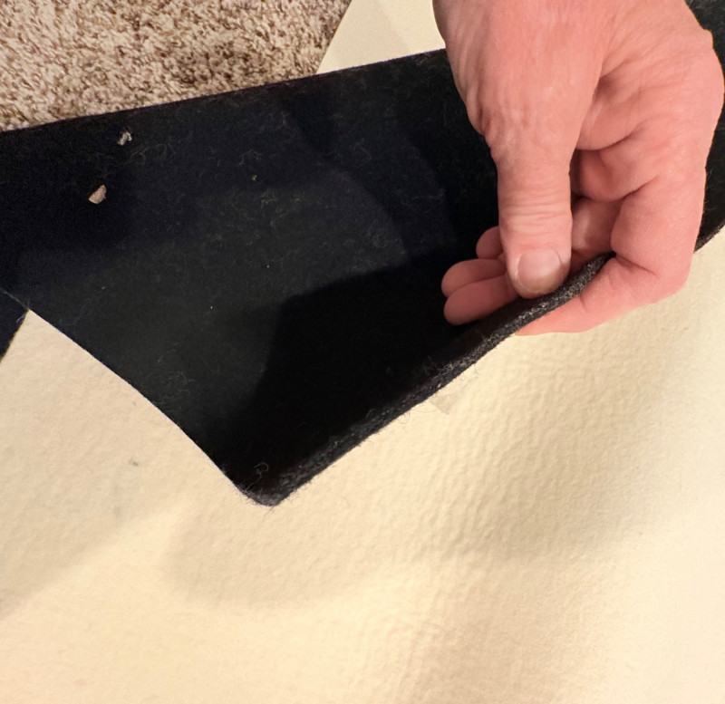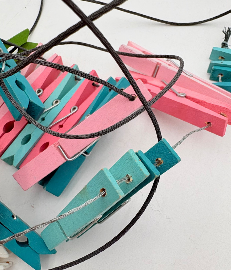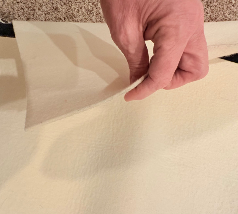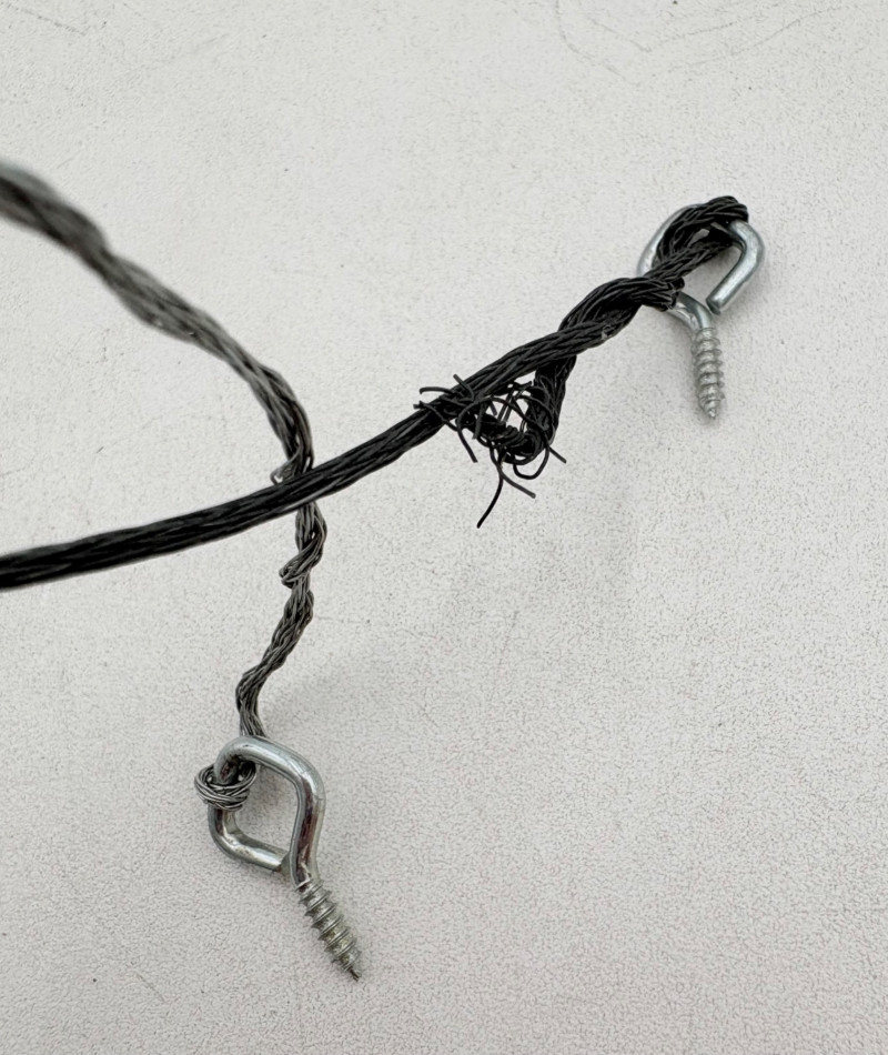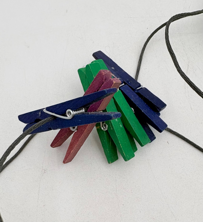 3 hearty felt blankets of varying thicknesses in good shape with minimal staining on one. We believe these were purchased from Takach at the same time as the press in Lot #2. They measure 24" x 48". Homemade 16' clip wire for hanging prints to dry. Over 50 spring clothespin clips of varying sizes attached to the wire. Hung in a zigzag fashion, they can dry numerous prints in a very small space. We believe these are the same blankets https://shop.takachpress.com/felt-etching-blankets/