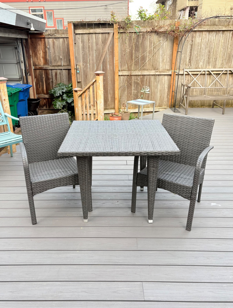 Lot # 36 - Outdoor “Woven” Square Table & 2 Matching Arm Chairs