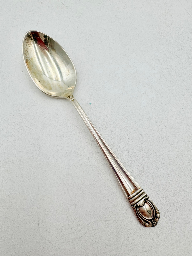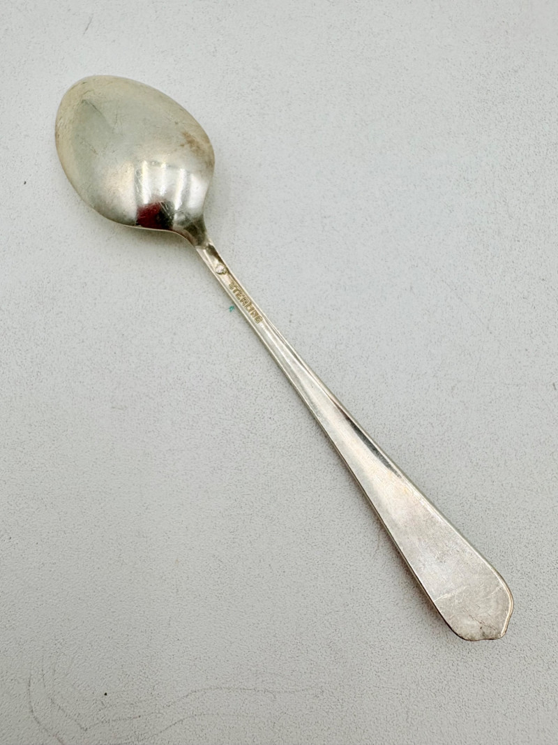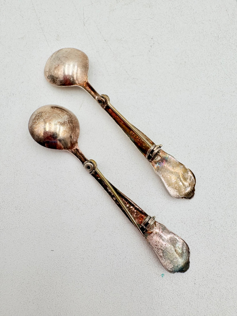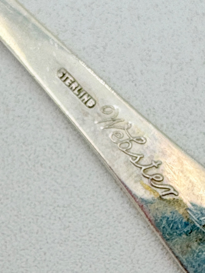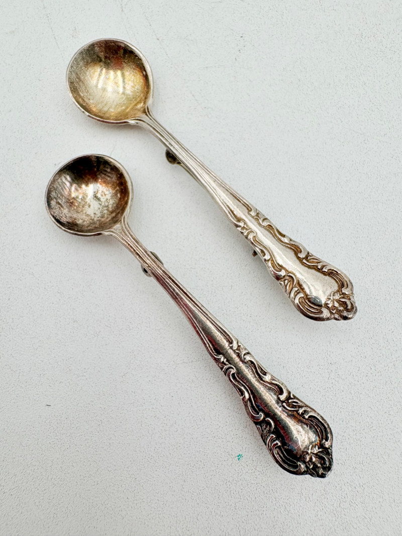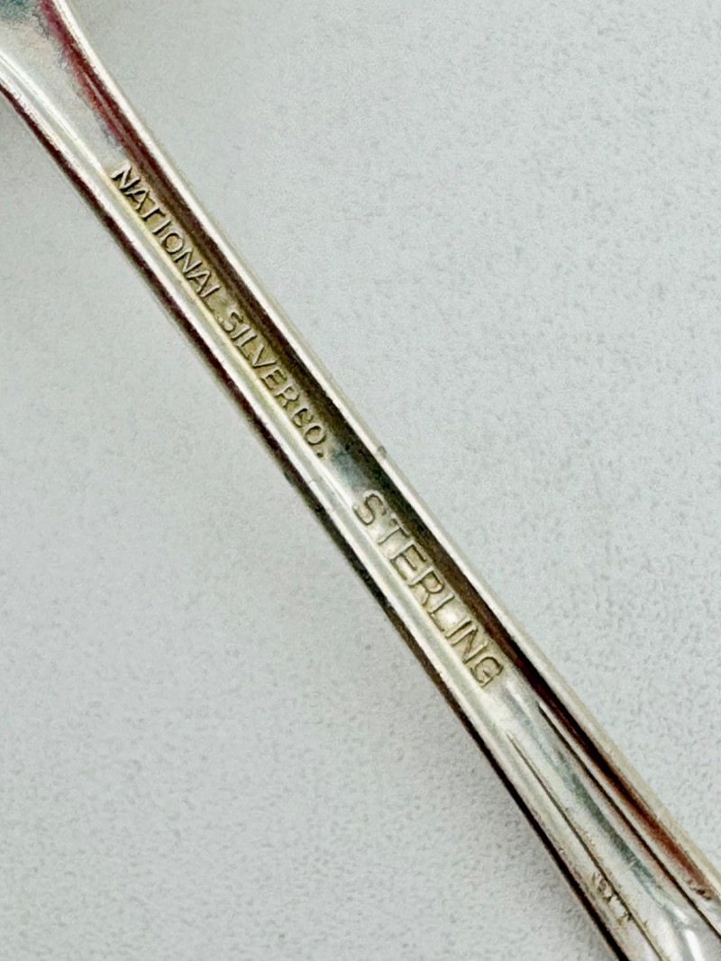 Mixed lot of sterling utensils - all marked as sterling.* Total weight is 99 grams. * note that the 2 silver spoon pins are the Easterling "American Classic" sterling design as in Lot #3; the forks section is also in that pattern.