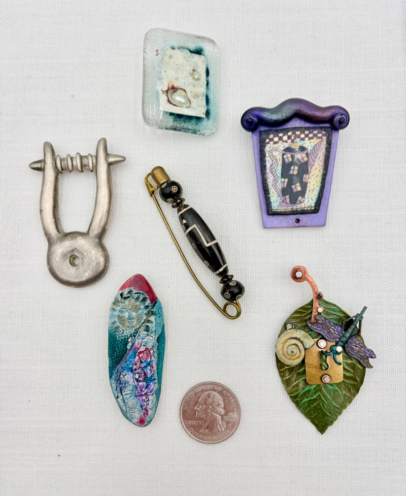 Lot # 81 - 6 Artist-Made OOAK Jewelry Pins/Brooches