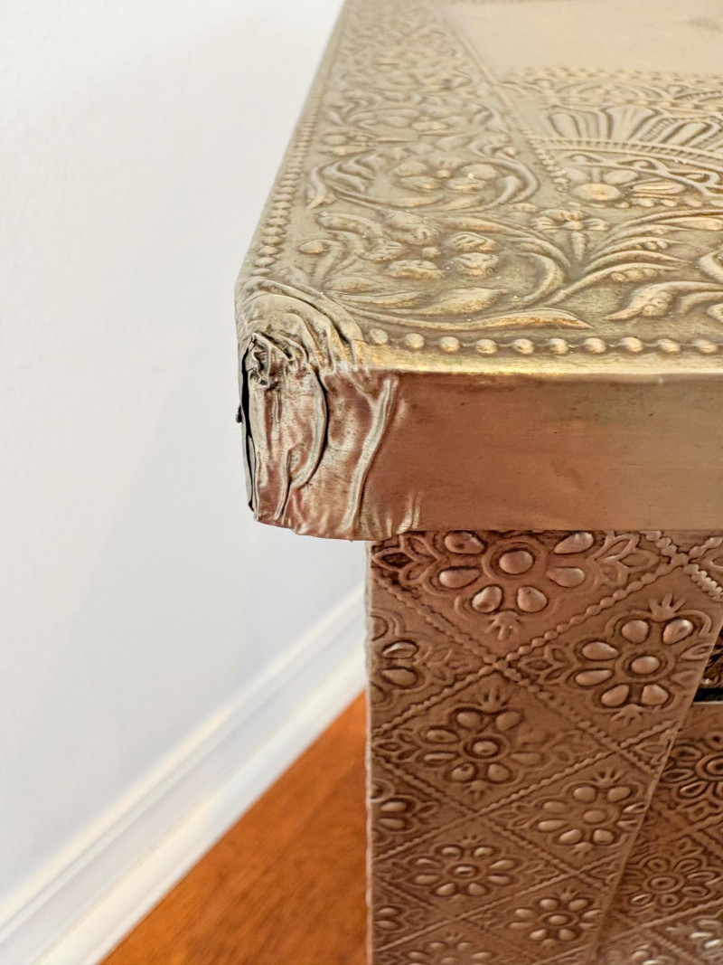 Lot # 86 - Wooden Nightstand Covered with Silver Embossed Metal