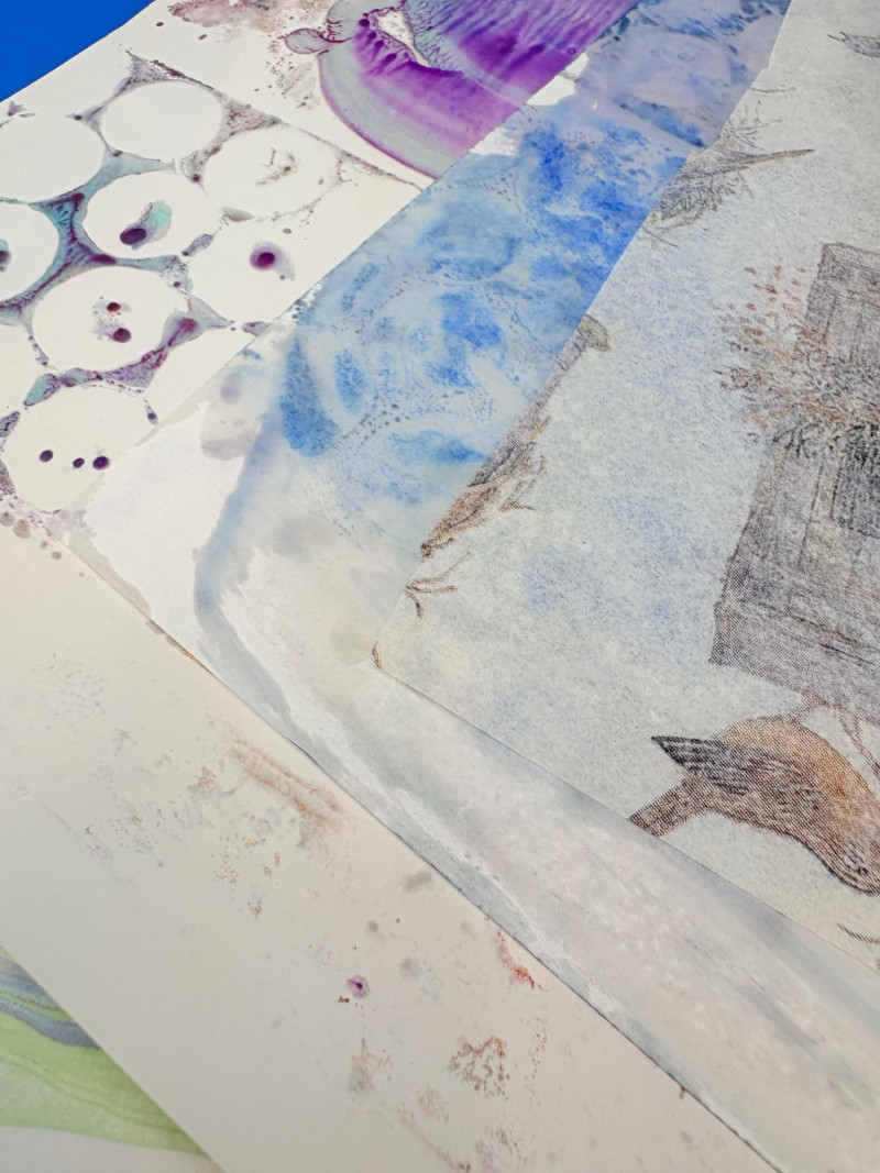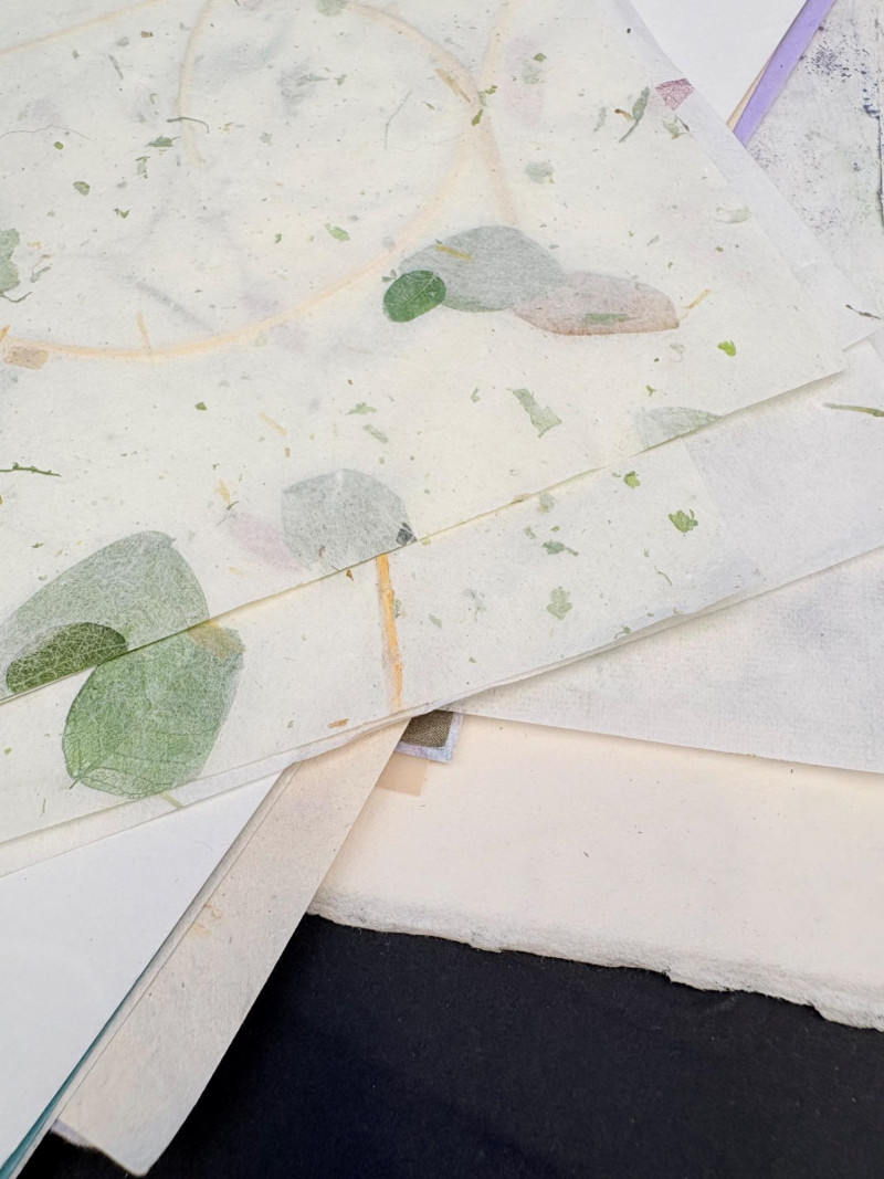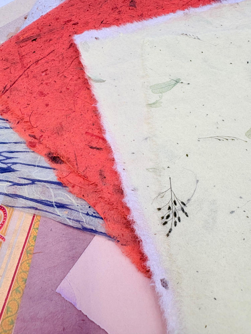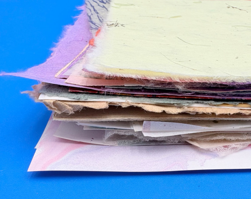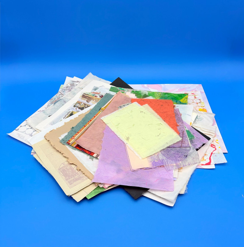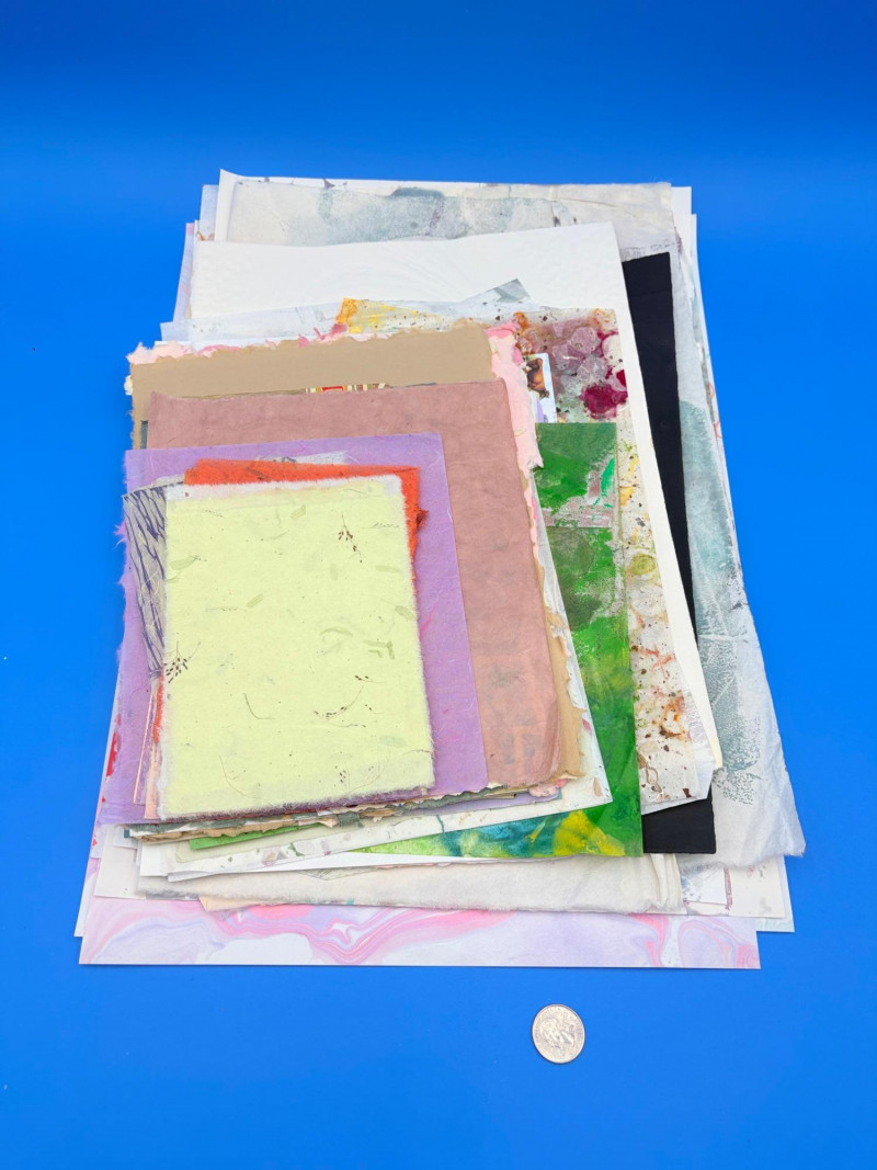 Large lot of paper pieces perfect for the scrapbooker or folks wanting to add spice to their collage work. Lots of variety in terms of texture, print, and weight of papers. We've included a number of one-of-a-kind papers that our client produced while experimenting with color/shape on her printing press. What you see is what you get.
