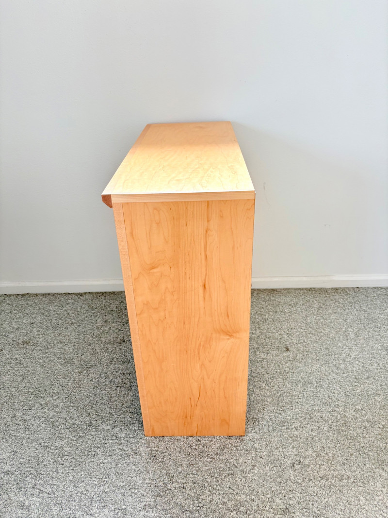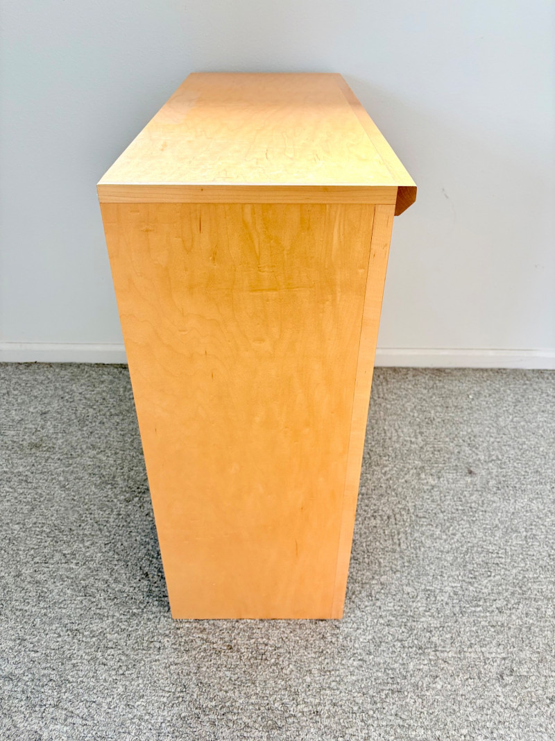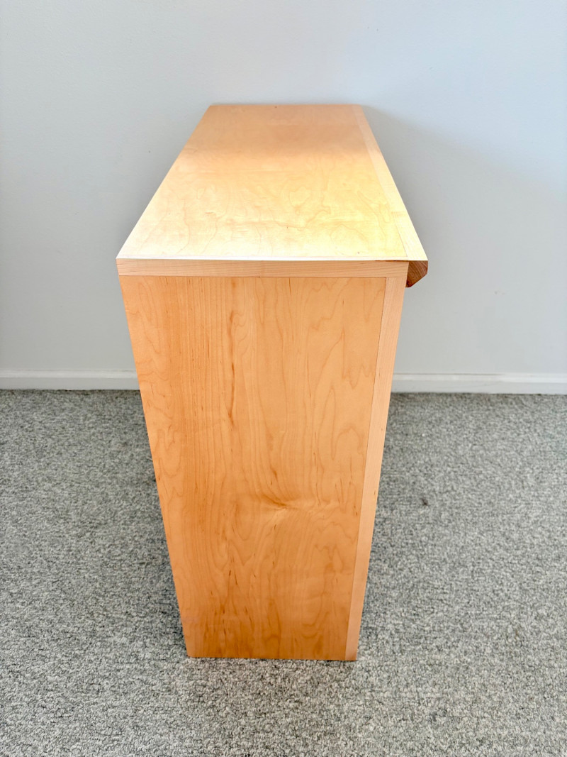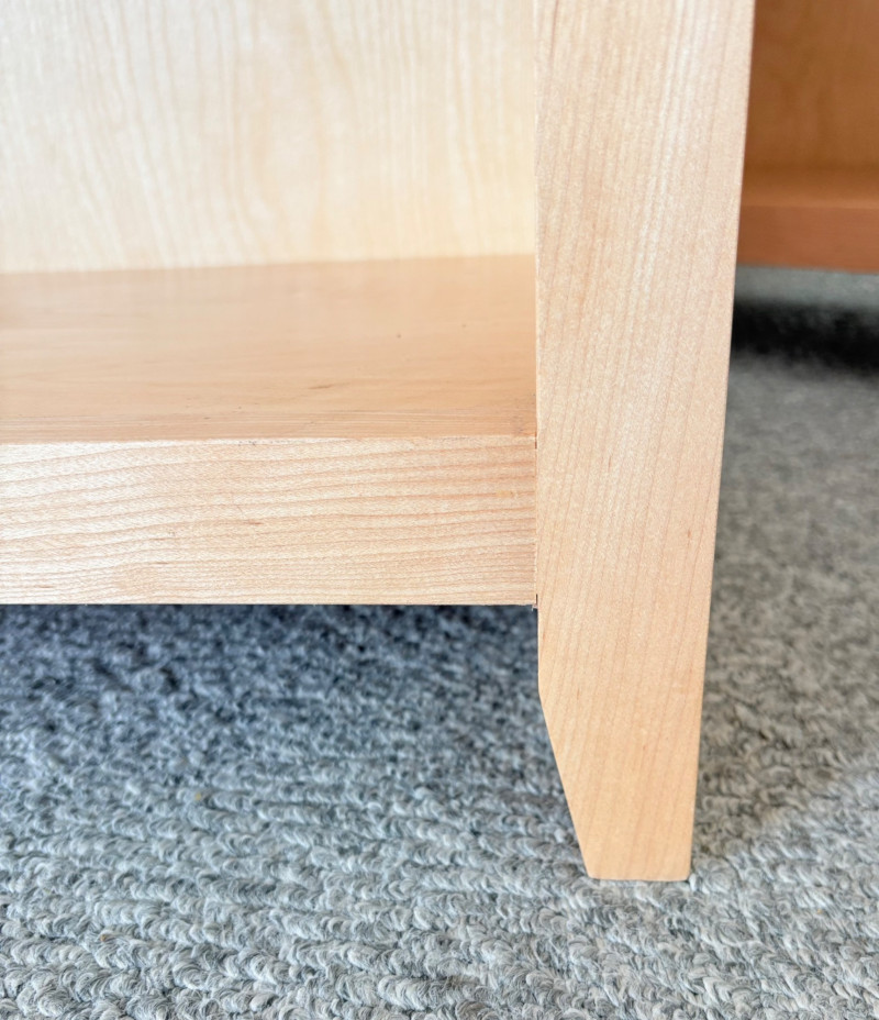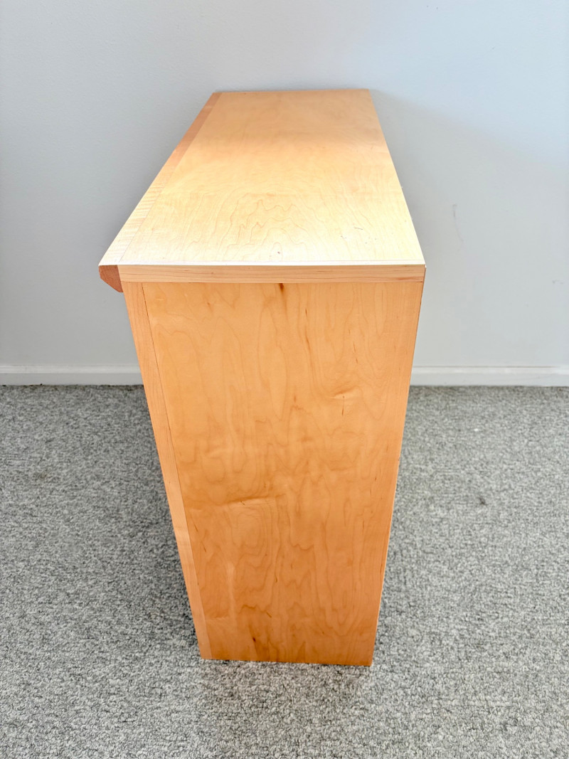 Gorgeous trio of solid maple wood bookshelves from Corvallis, Oregon, manufacturer Oak Craft Village Woodworks. All three are identical with adjustable middle shelf, slightly angled support legs and unfinished back. All in very good condition with just a few fade marks on the shelves from sun exposure - see last photo. Measure 30" H x 31.5" W x 12.5" D. for more info on this company: https://www.oakcraftfurniture.com/