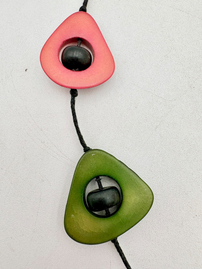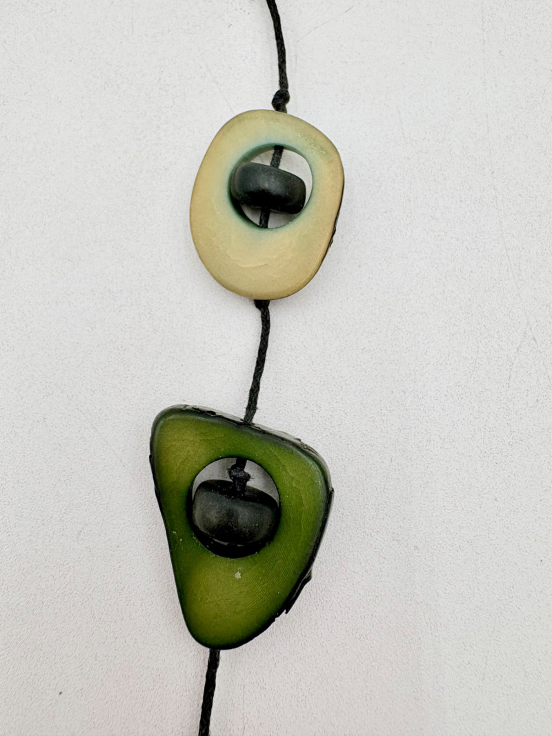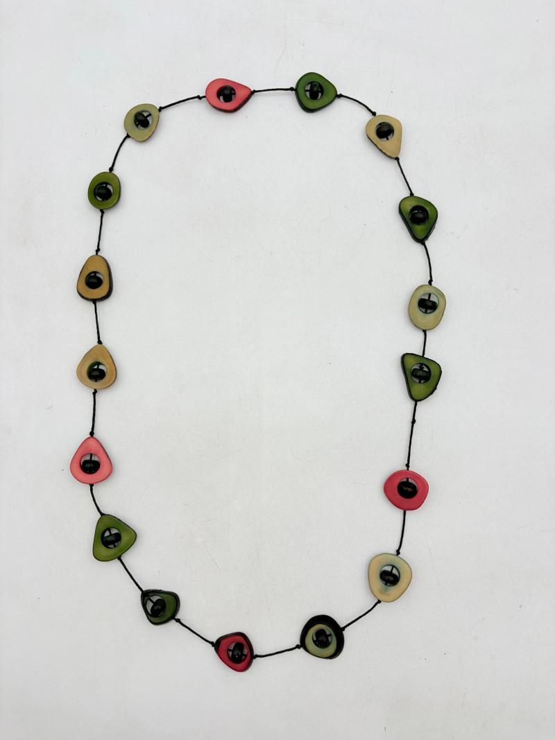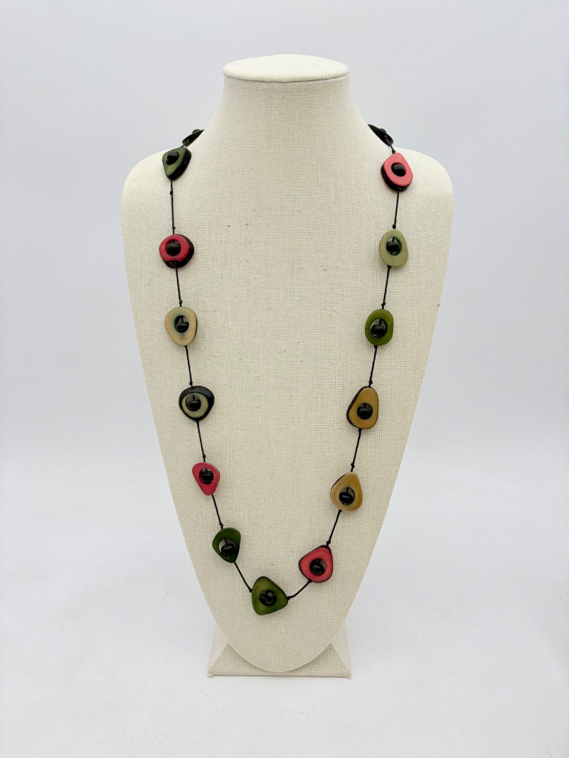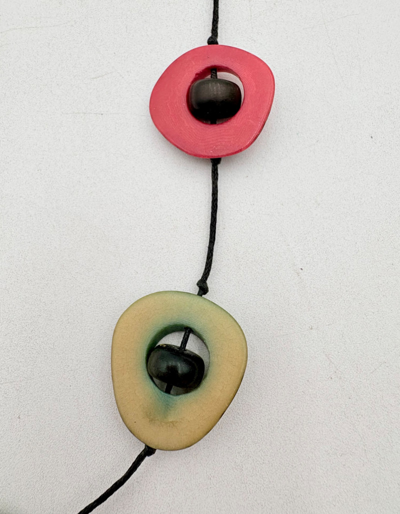 4 "old school" artsy necklaces - all of these are fairly long and can be doubled when worn. Great color combos with wonderful versatility.