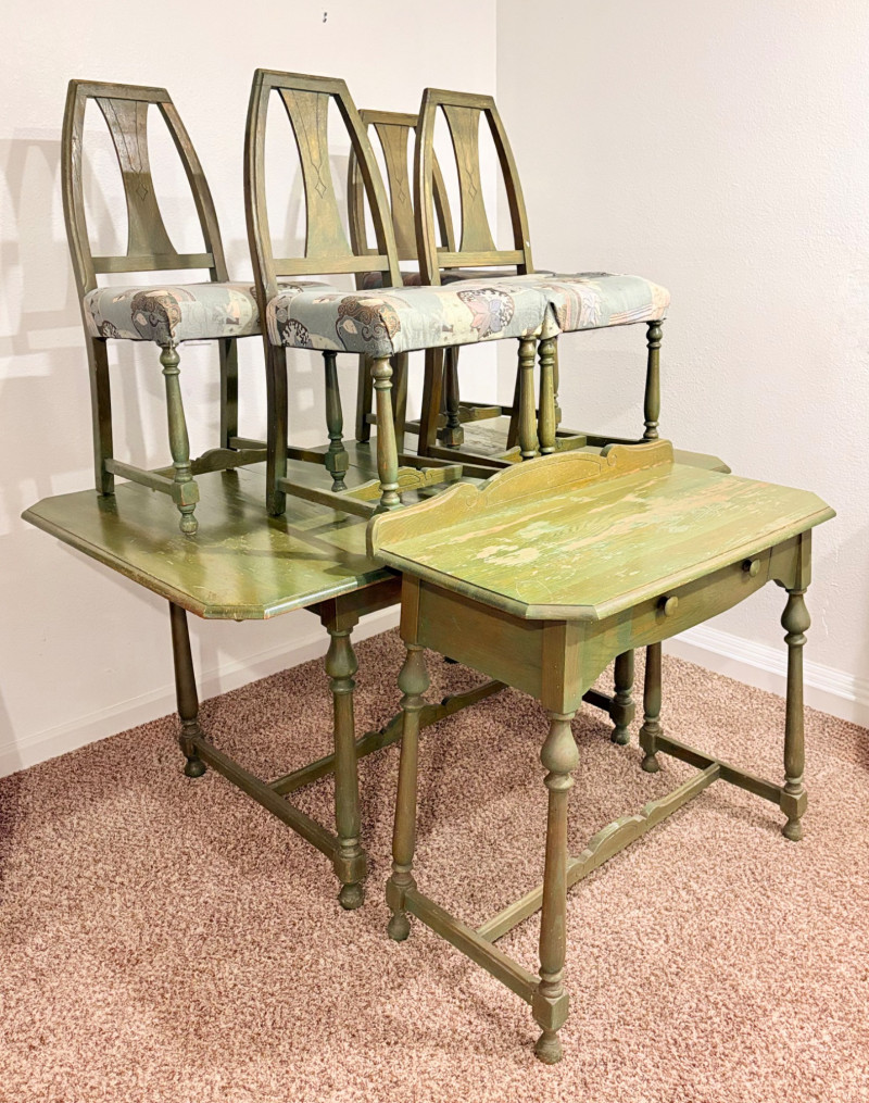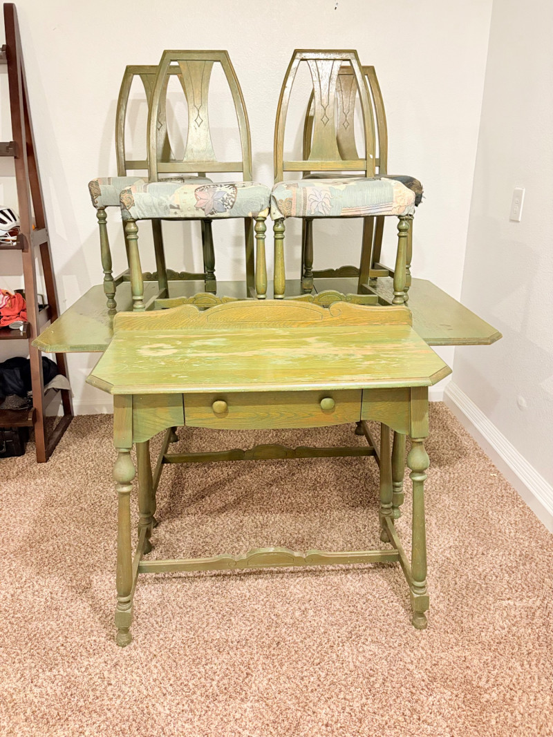 Lot # 124 - Vintage MCM Green-Washed Dining Table/Chairs/Desk - Heywood-Wakefield