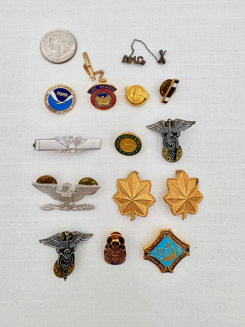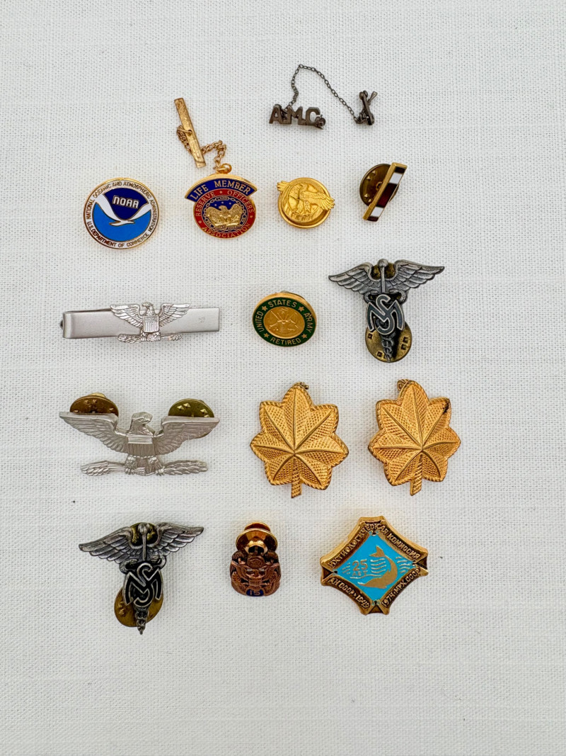 This lot is a mix of military pins and other membership pins. Please see photos for details.