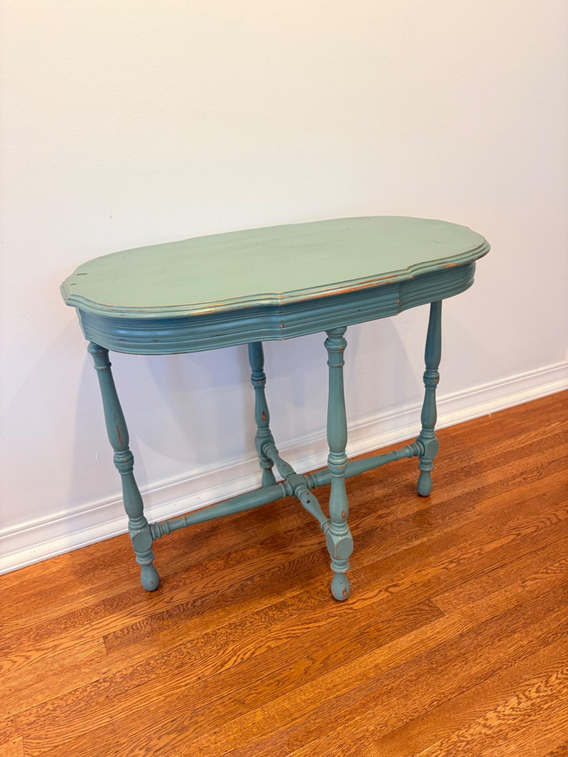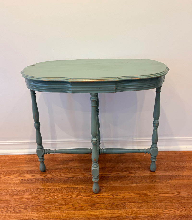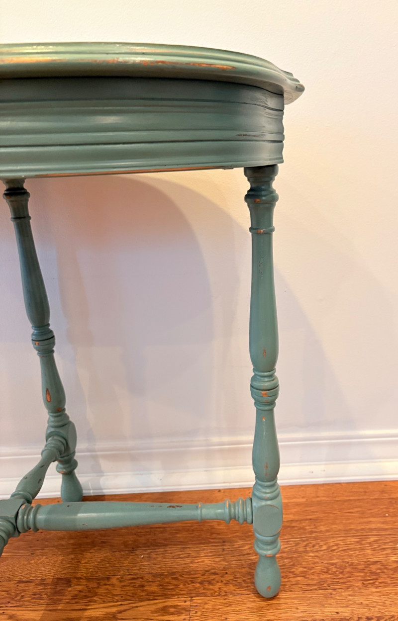 Lot # 149 - Teatime in Teal - Chairs & Oval Table with Accessories