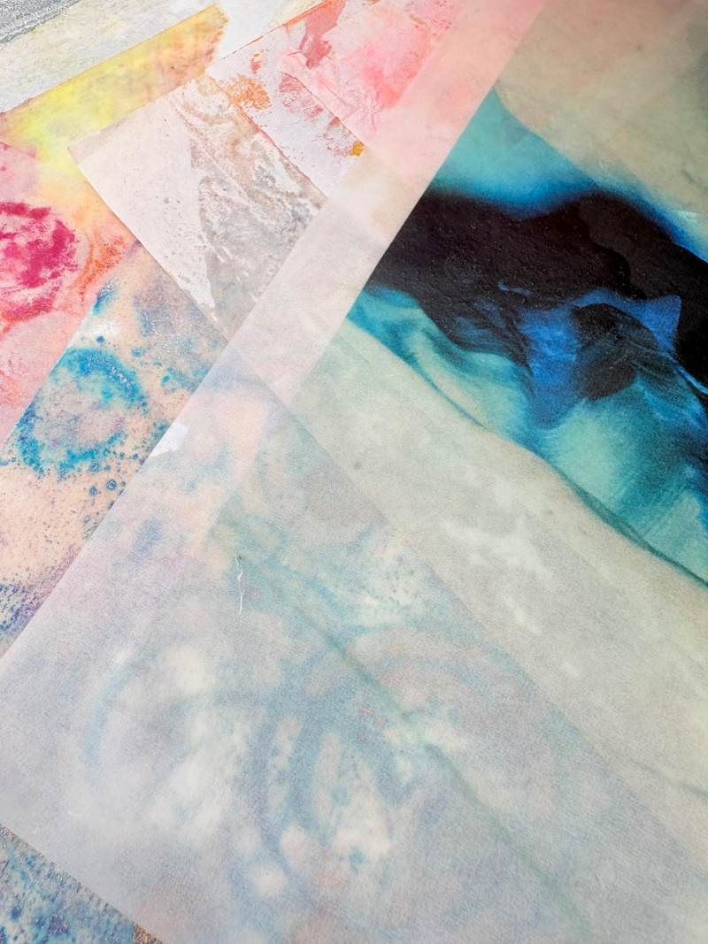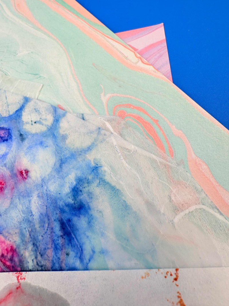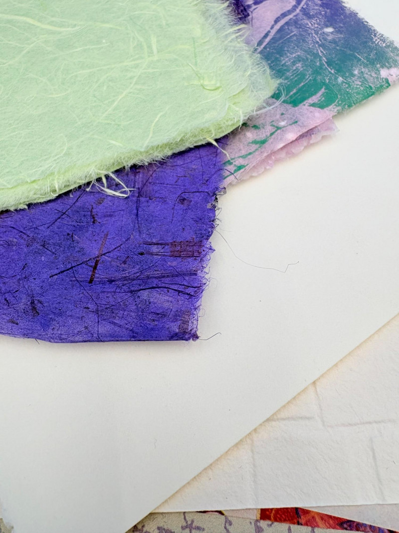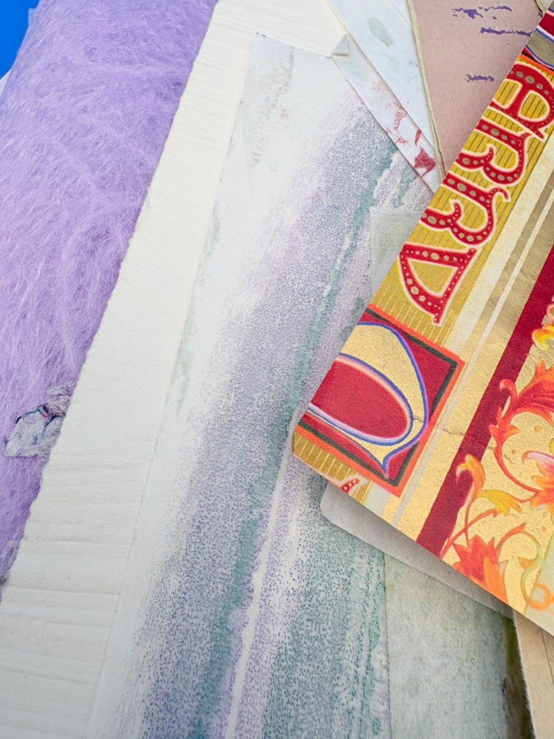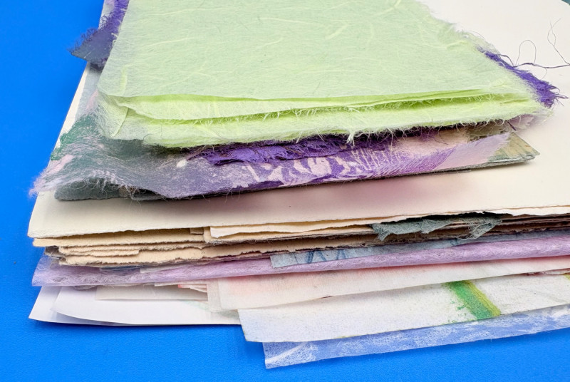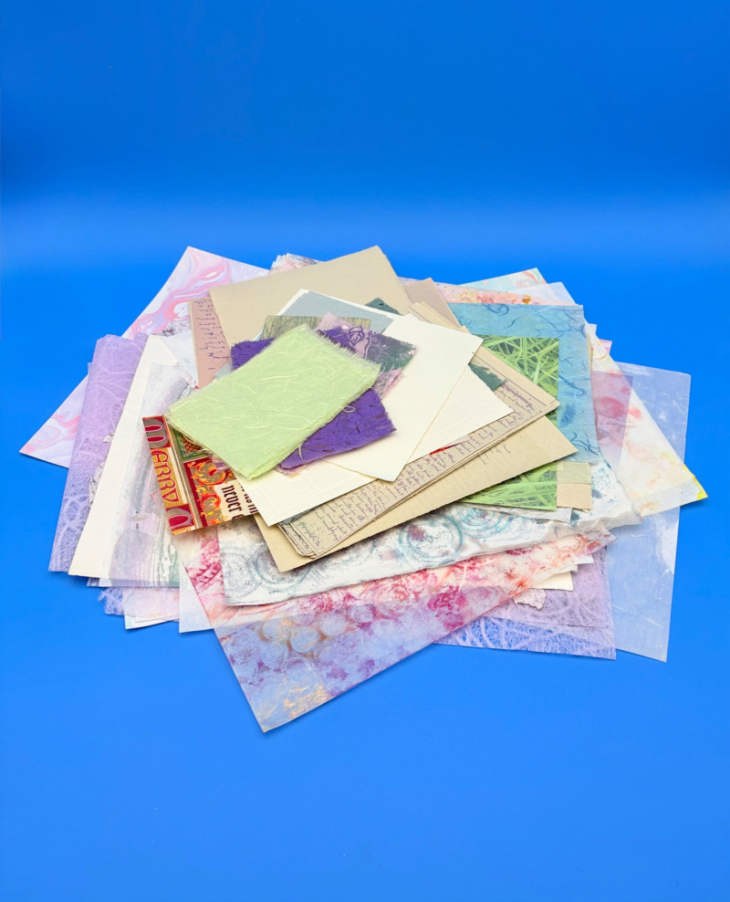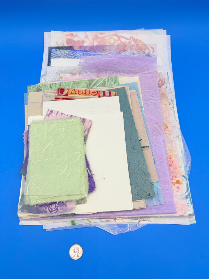 Large lot of paper pieces perfect for the scrapbooker or folks wanting to add spice to their collage work. Lots of variety in terms of texture, print, and weight of papers. We've included a number of one-of-a-kind papers that our client produced while experimenting with color/shape on her printing press. What you see is what you get.