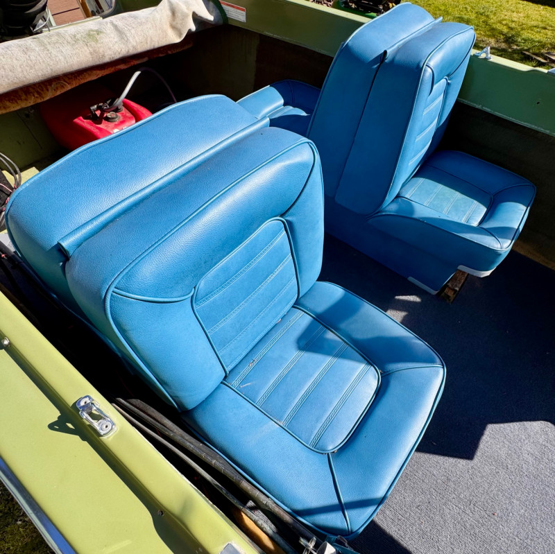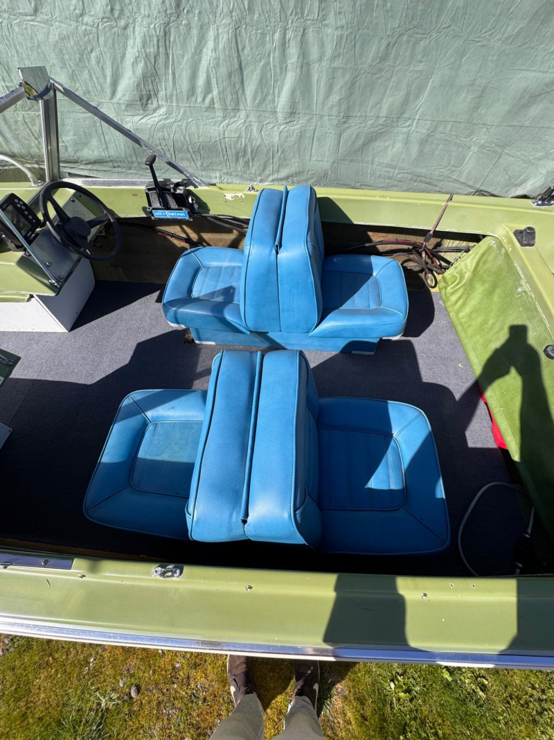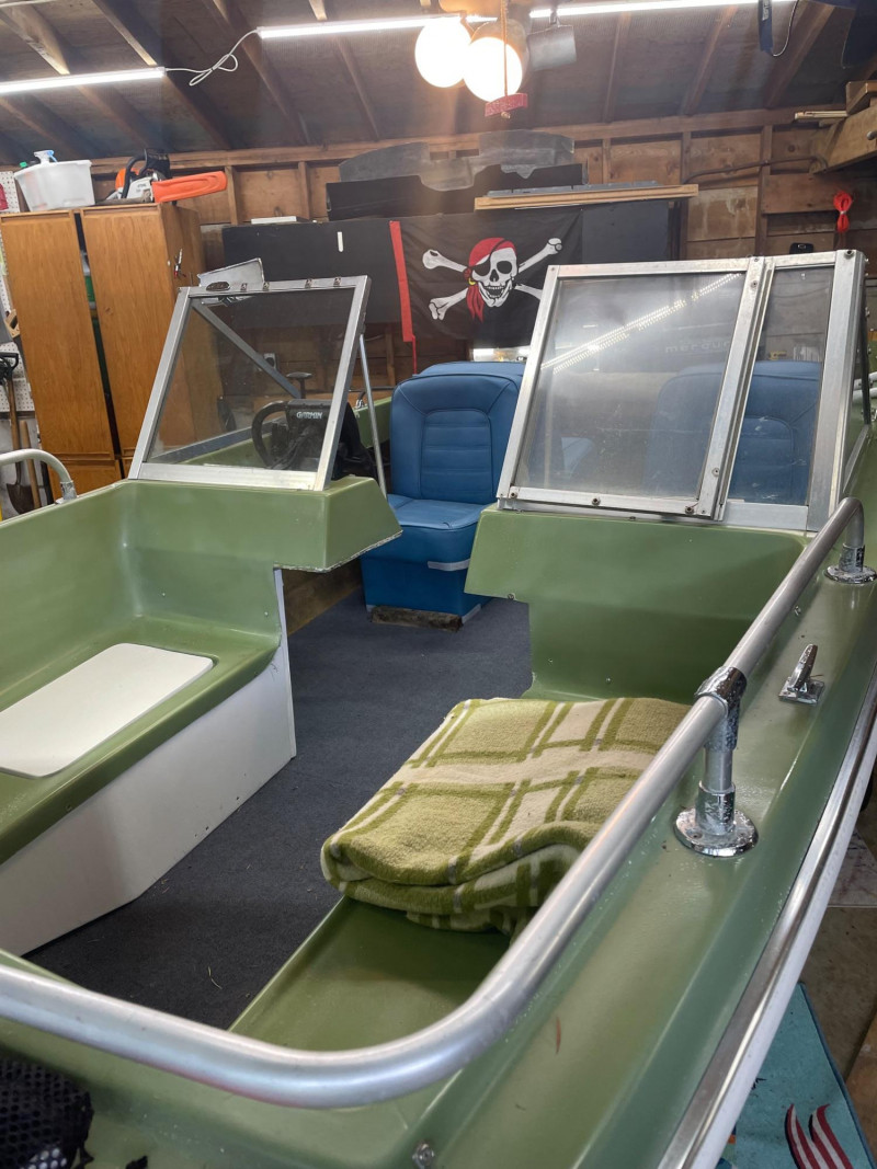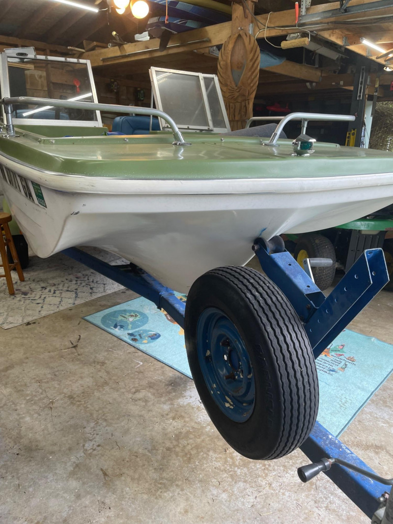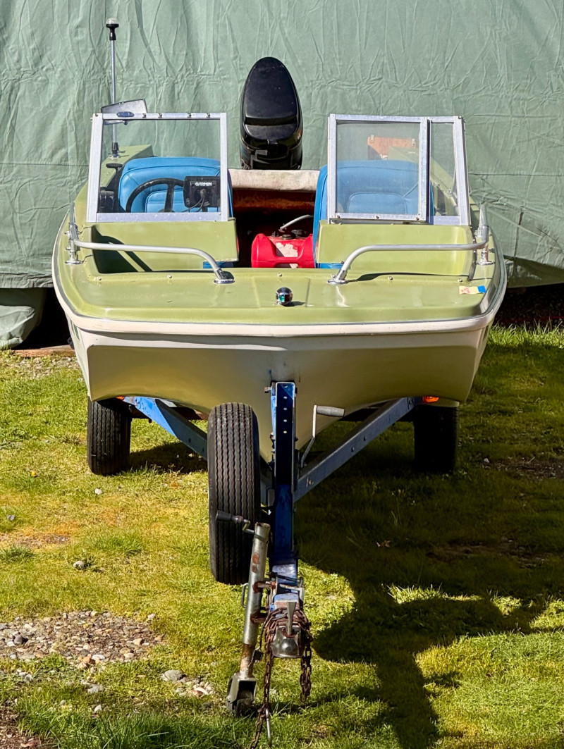 Boat: Trailer: Blue frame with green wheels, set up for immediate towing 1971 BRC Seawhirl Cascade 14' fiberglass boat, sold with a State of Washington title, paired with a 1961 EZLD trailer, also titled. This classic runabout features a Mercury outboard gas motor and the clean, lightweight hull design Seawhirl was known for. The package includes a generous assortment of boating and crabbing accessories: four new adult life vests, one child vest, seat cushion floats, two brand‑new crab pots with floats, beach towels, blanket, first aid kit, flashlight, flag, and a fitted boat cover. A ready‑to‑go recreational setup for lake or Puget Sound use. Paddles not included. 1971 BRC Seawhirl Cascade Fiberglass Boat with State of Washington Title Manufacturer By - WASHINGTON HOMEMADE BOATS 14' with Outboard Gas Motor 1961 EZLD Boat Trailer with State of Washington Title May need an Impeller.1971 BRC Seawhirl “Cascade” Fiberglass Boat + 1961 EZLD Trailer + Accessories