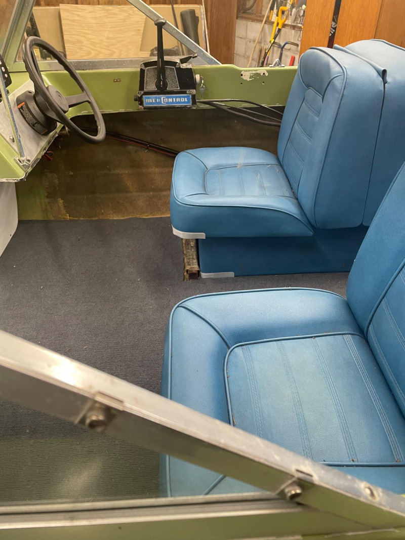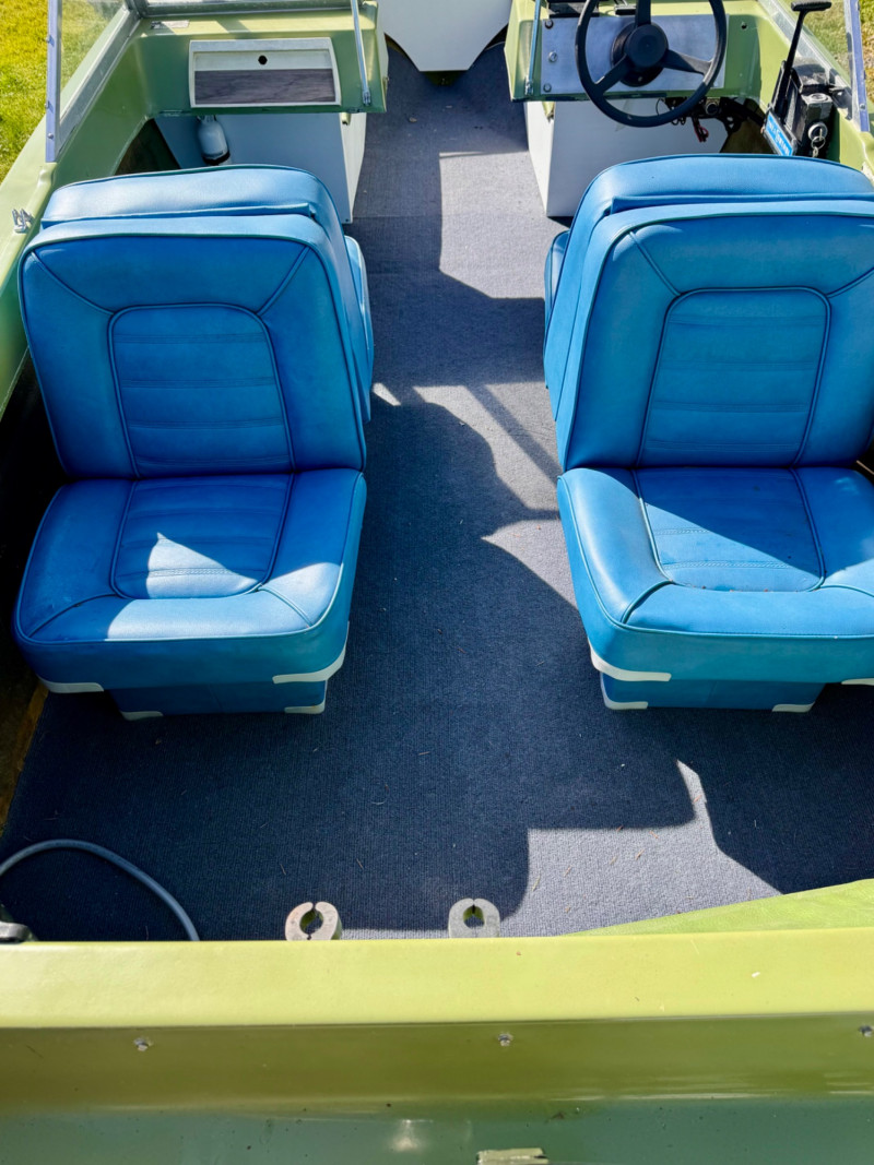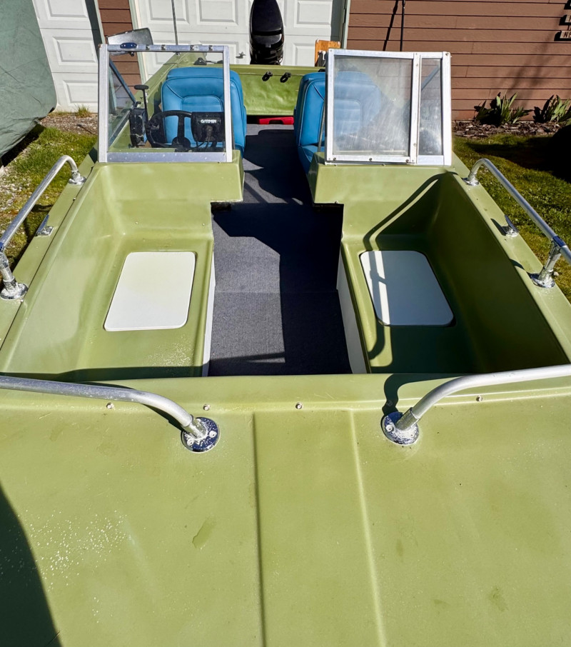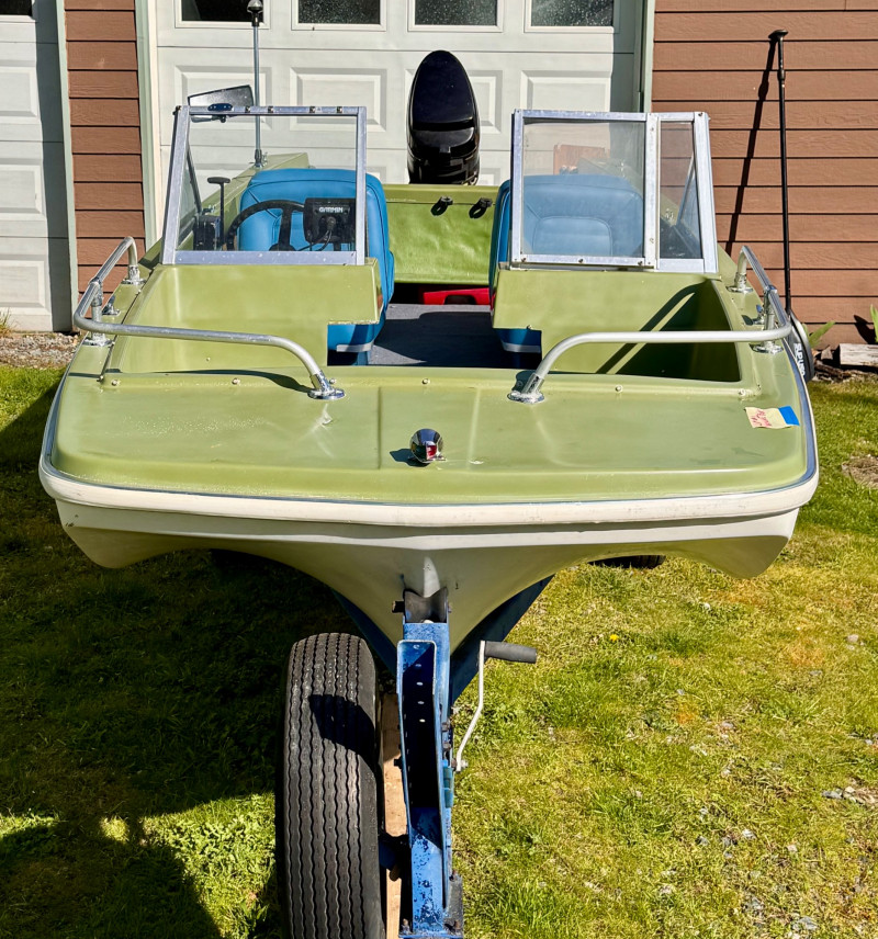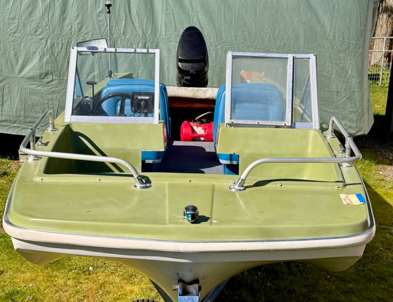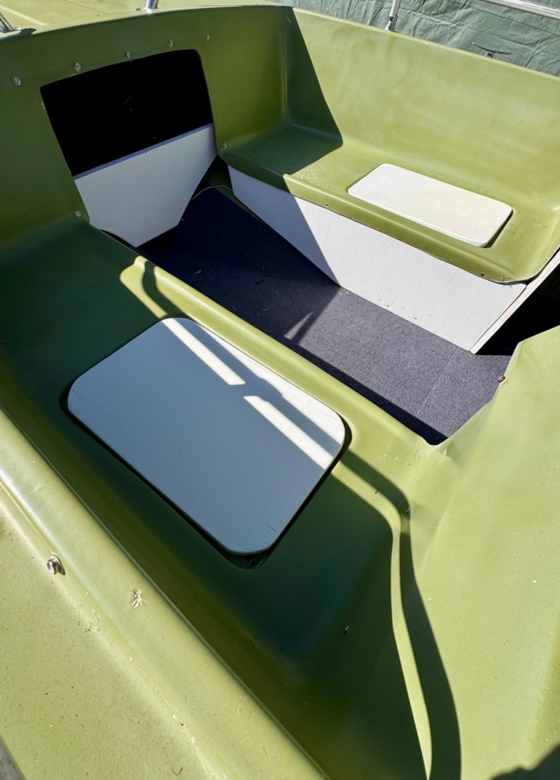 Hull: Classic early‑70s fiberglass design with windshield and seating