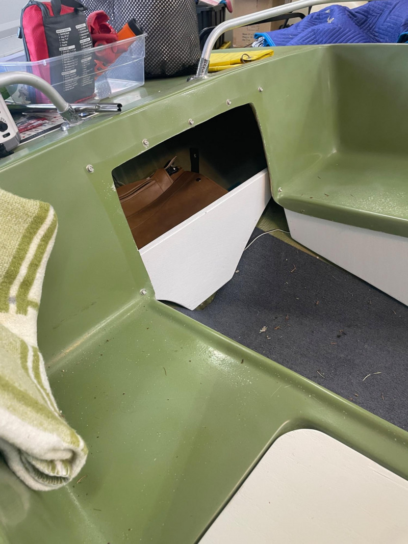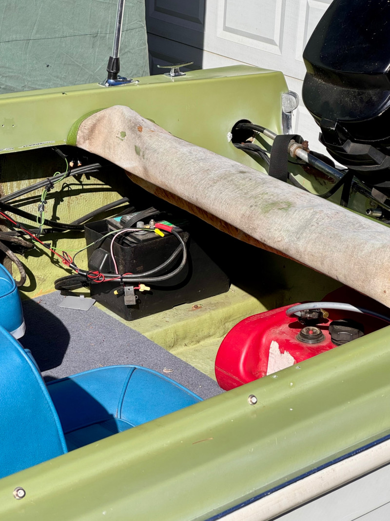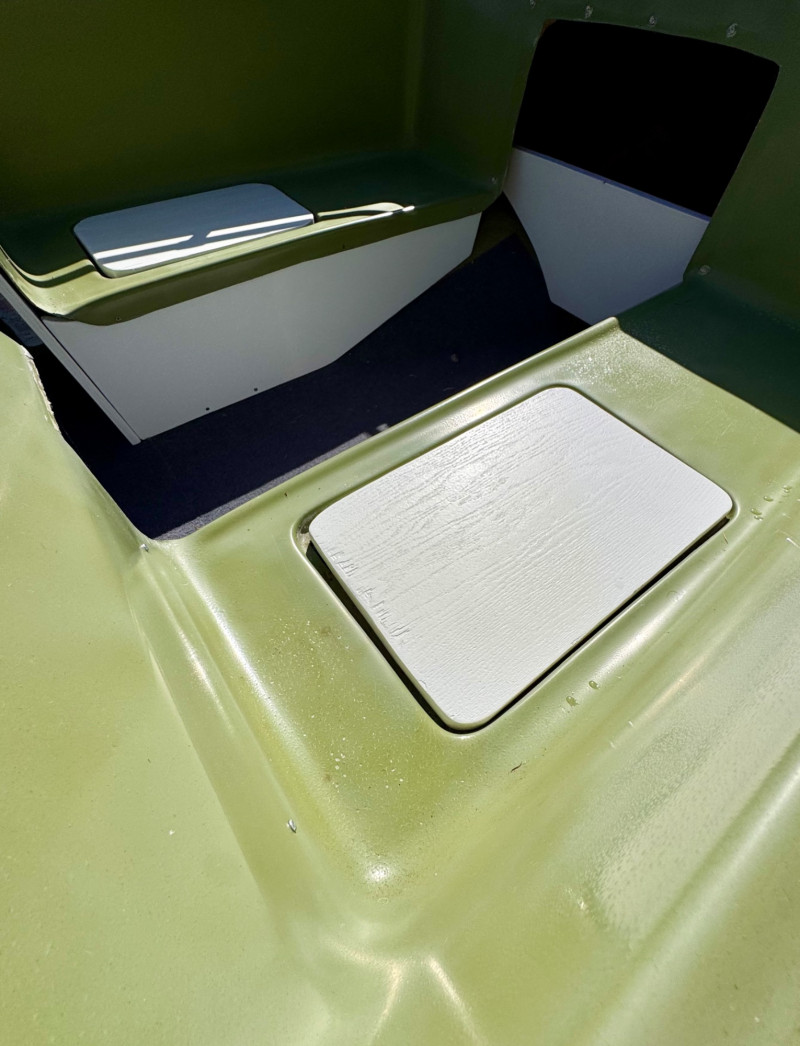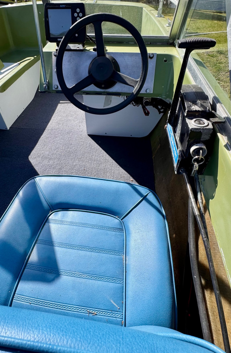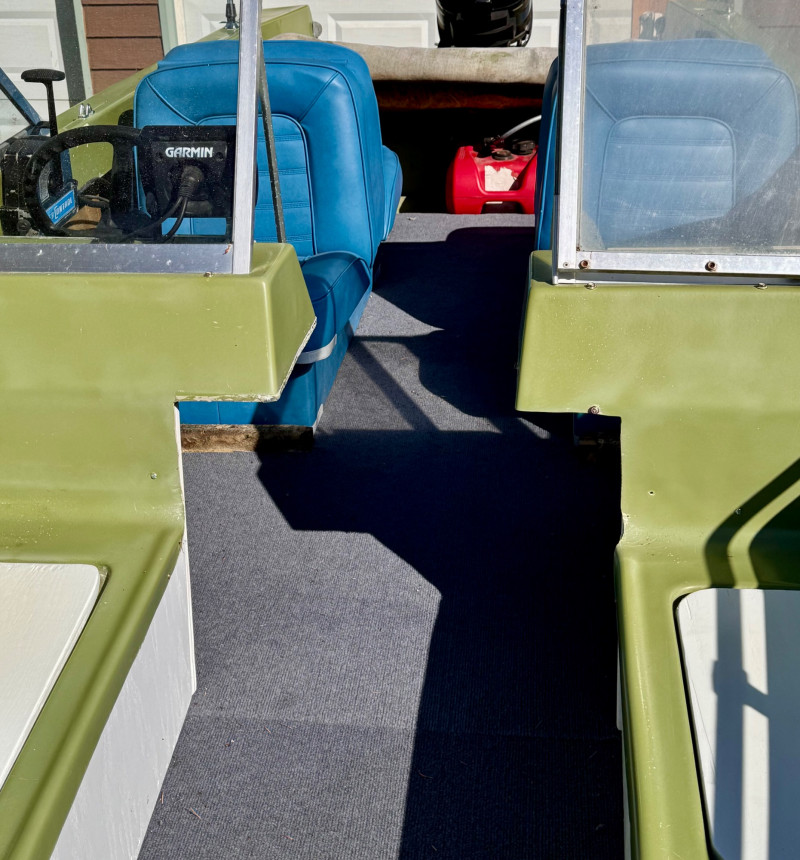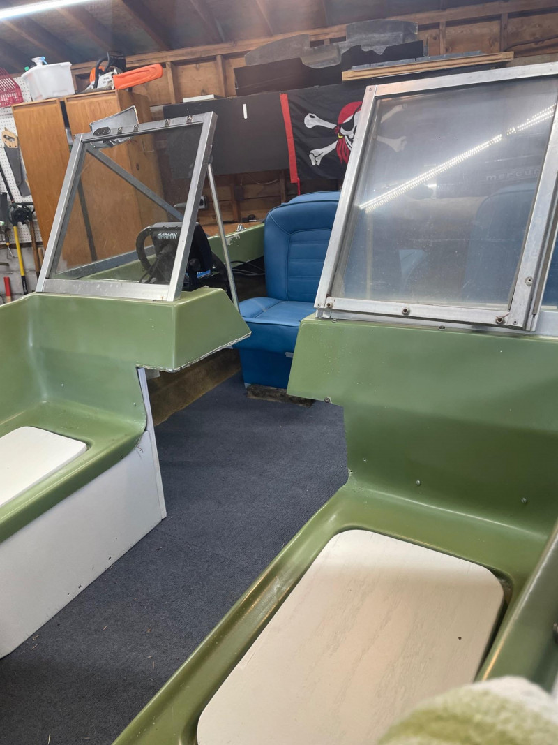 Hull: Classic early‑70s fiberglass design with windshield and seating