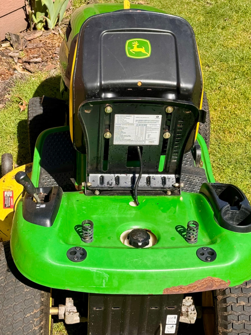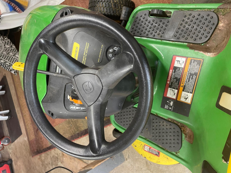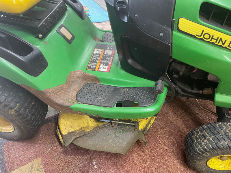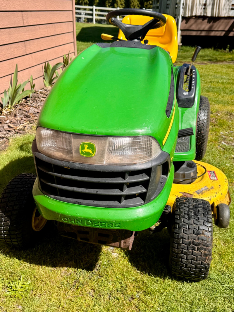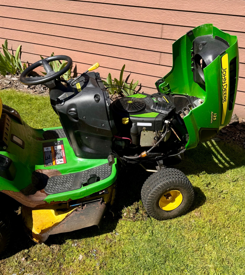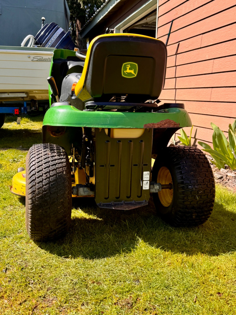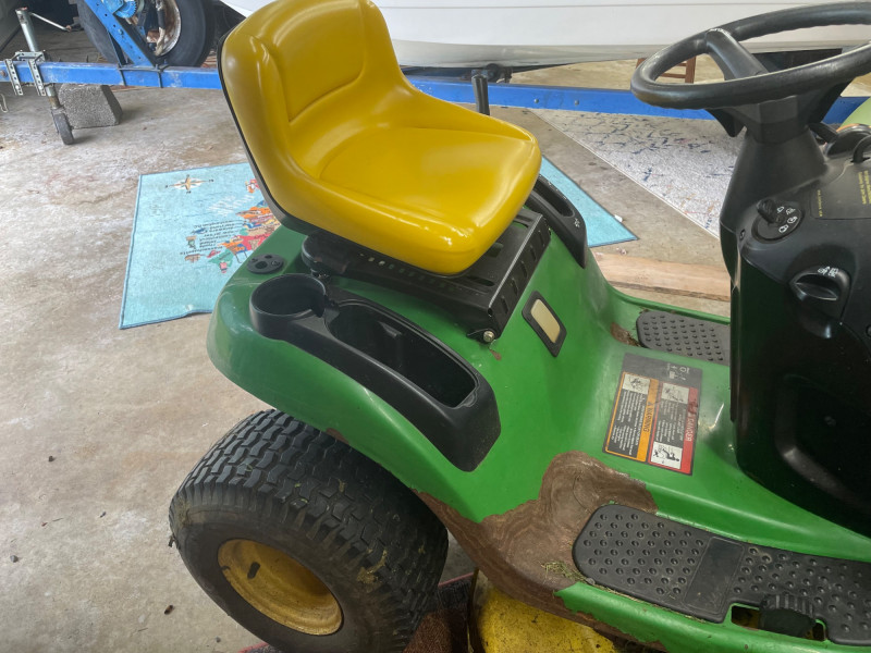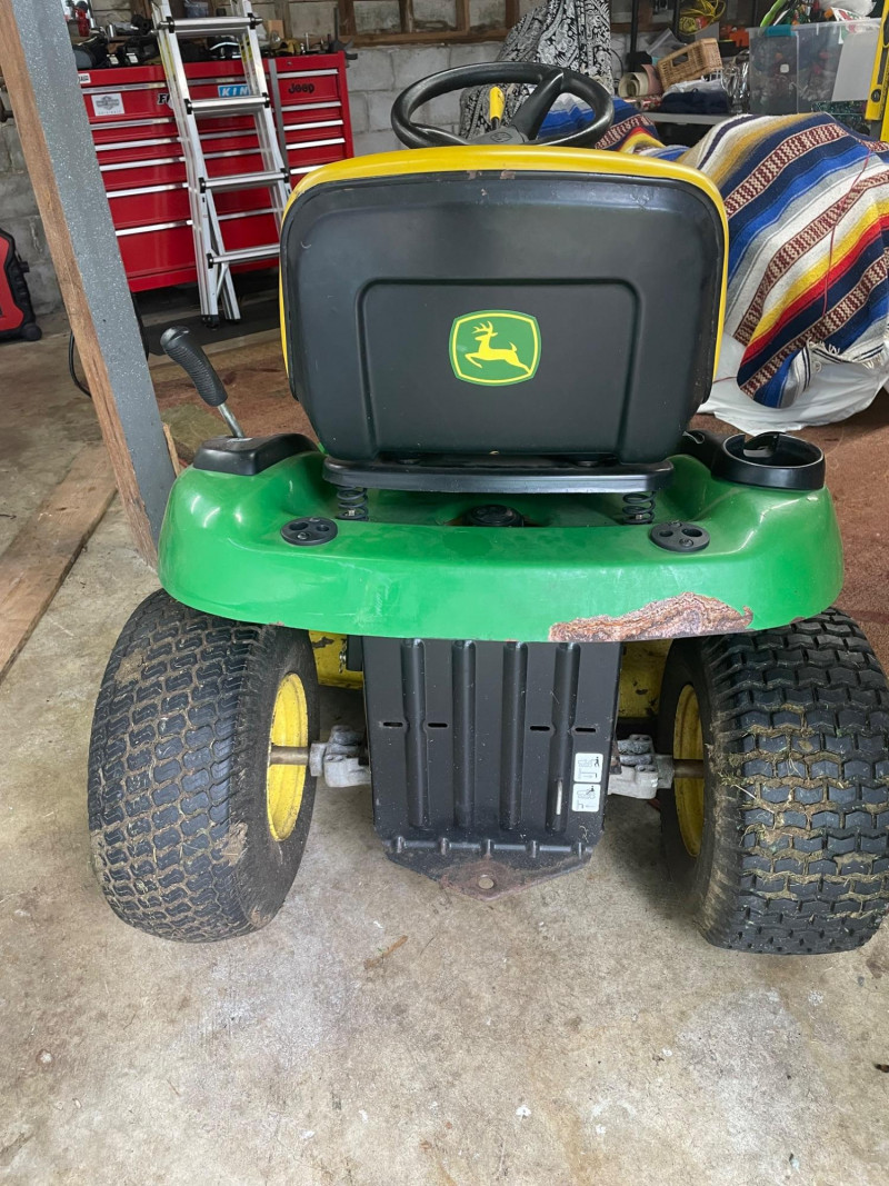 A dependable John Deere 125 Automatic riding mower, known for its durability, ease of use, and classic green‑and‑yellow styling. This model features an automatic transmission for smooth operation and a wide mower deck suitable for residential lawn care. Features: Operational at time of listing. Pre‑owned with typical wear from use.John Deere 125 Automatic Mower – Operational