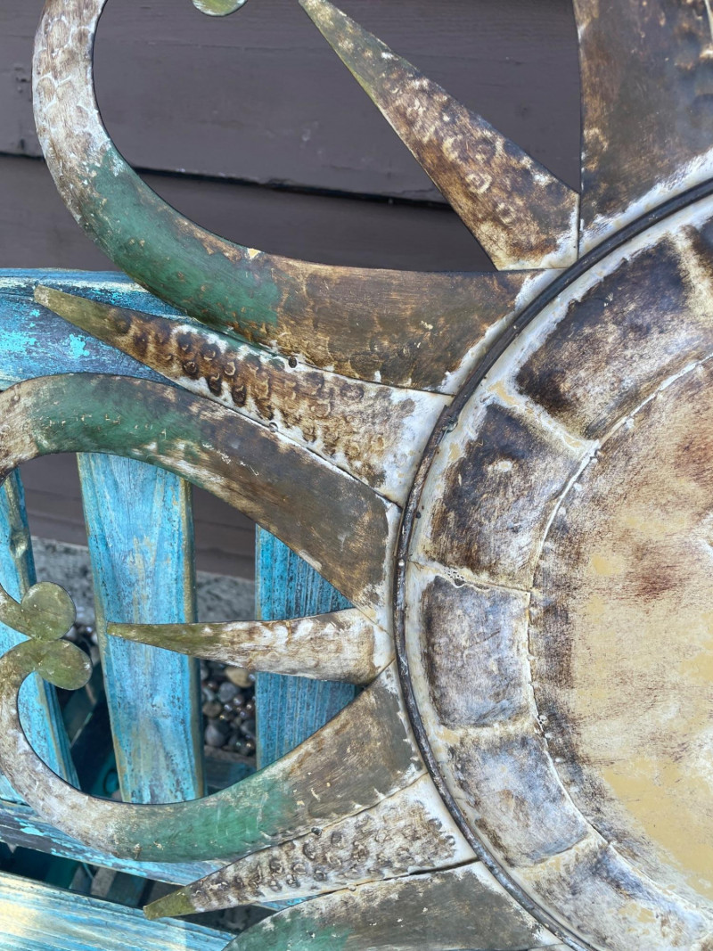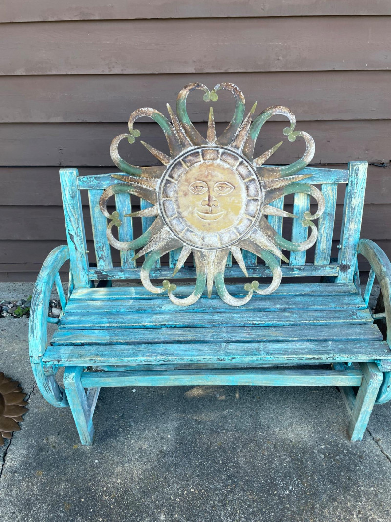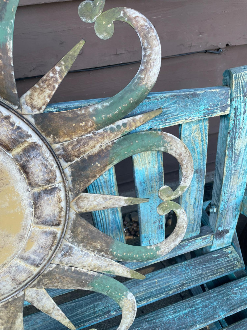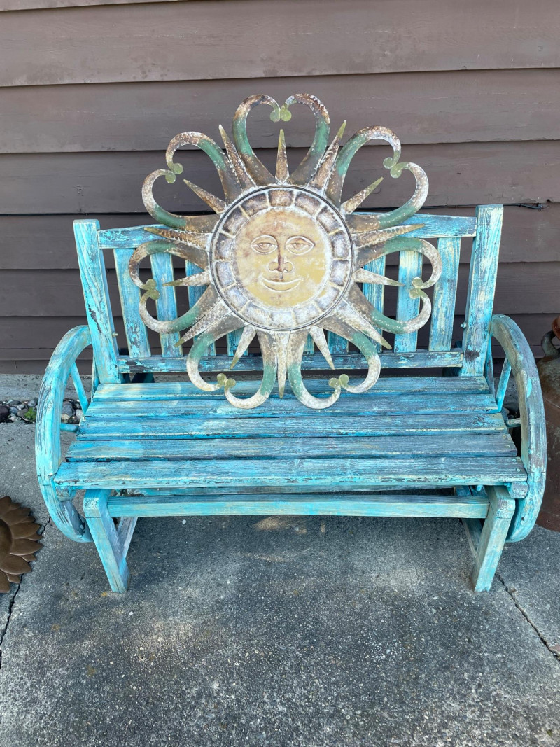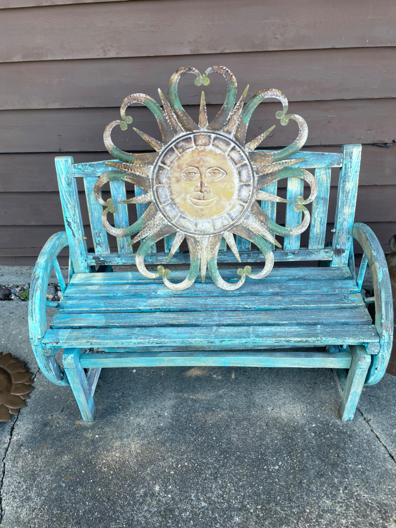 Lot # 13 - Shabby Chic Rocking Bench and Outdoor Sun Metal Decor