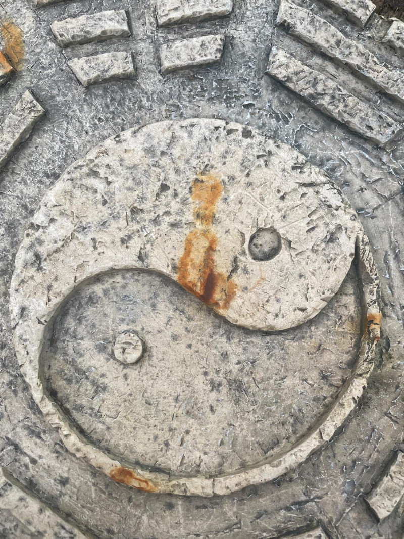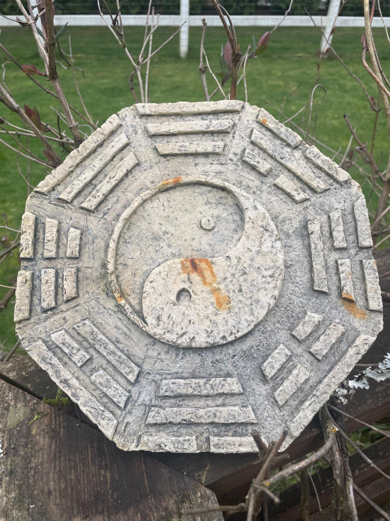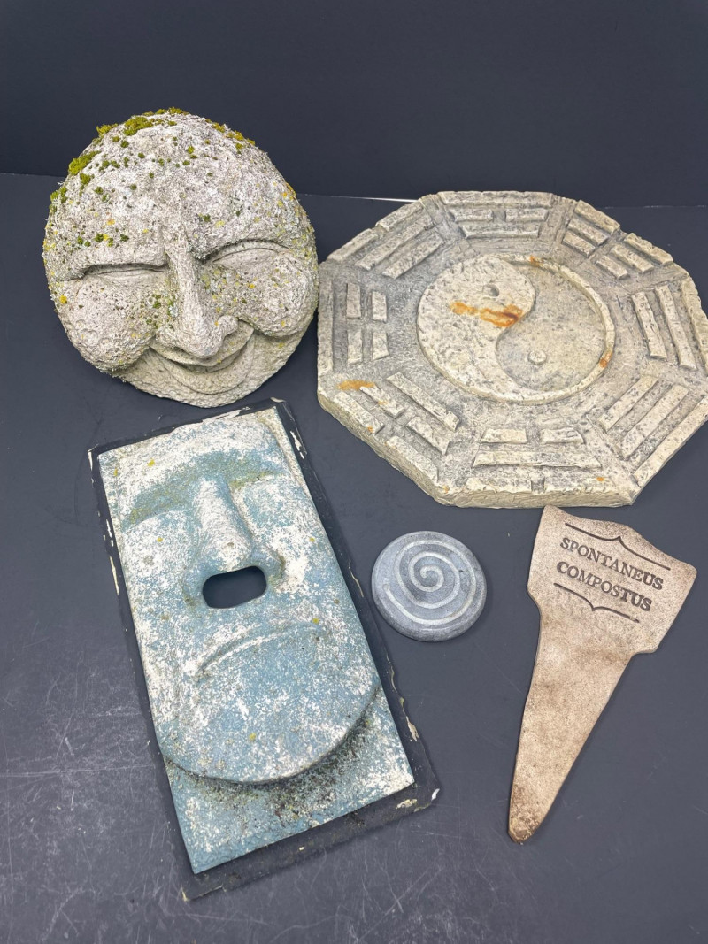 Lot # 15 - Resin Yard Fun Yard Art- Ying Yang and Whisical Faces