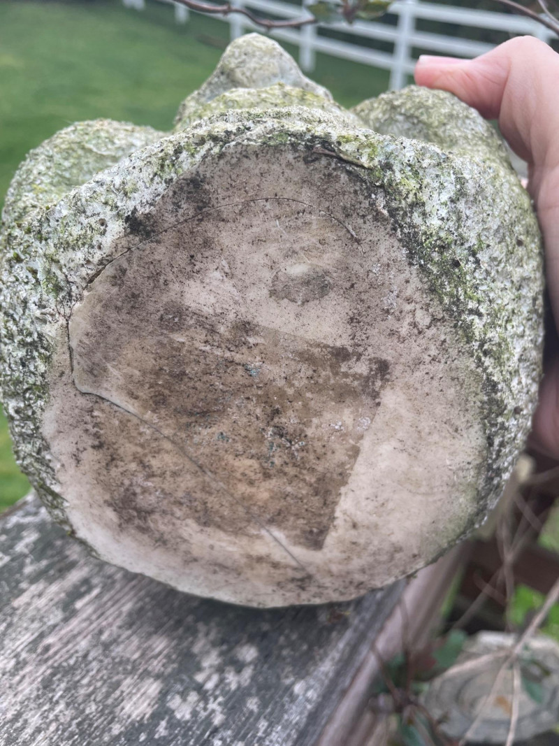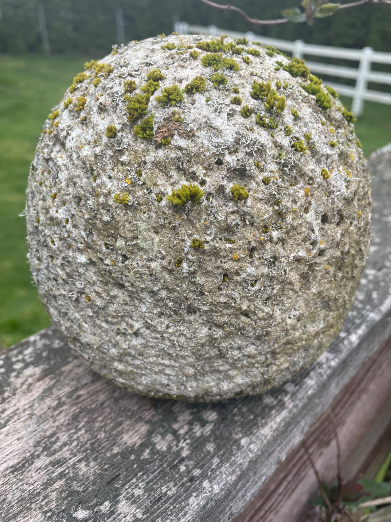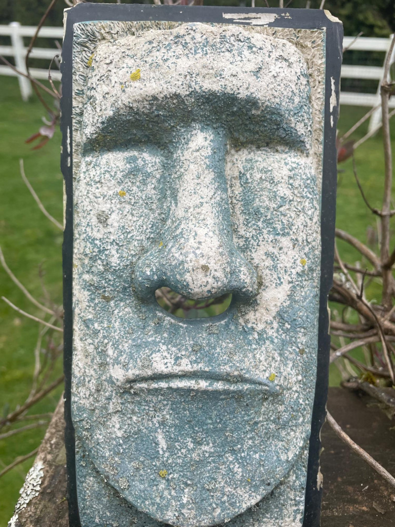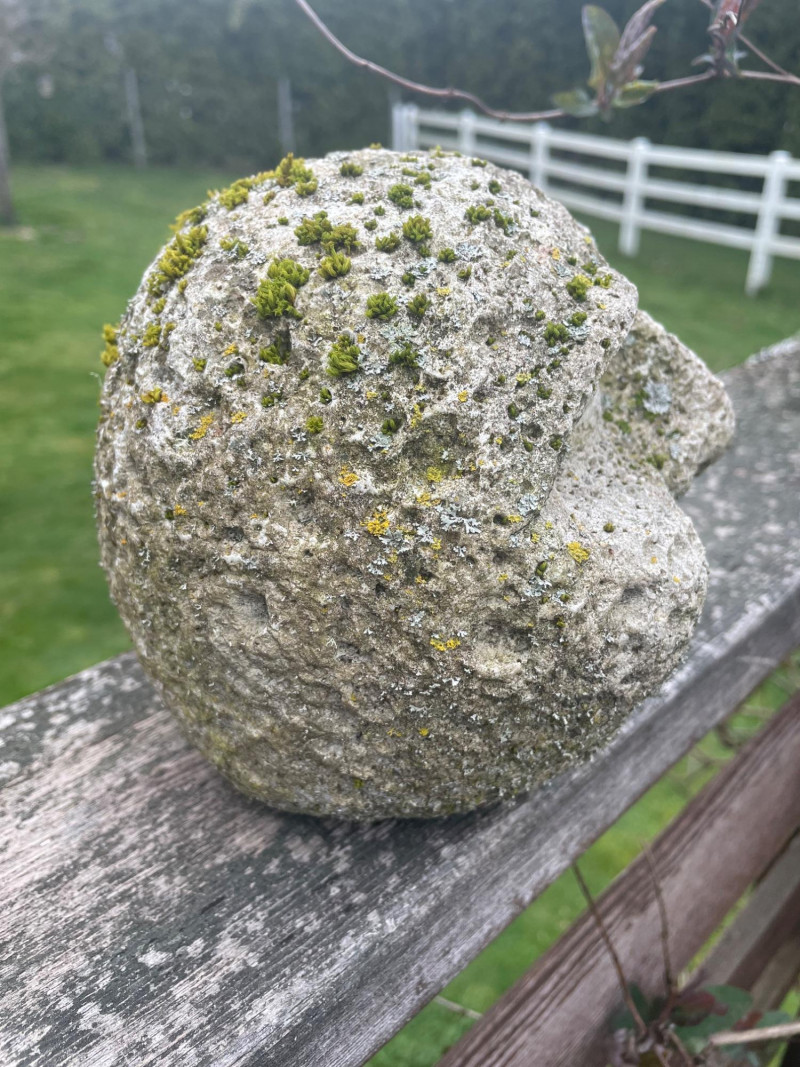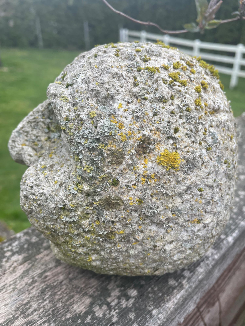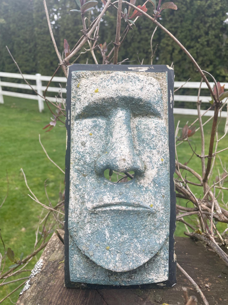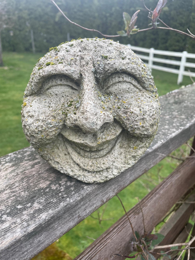 Round Smiling Face Stone — moss‑kissed, weathered charm