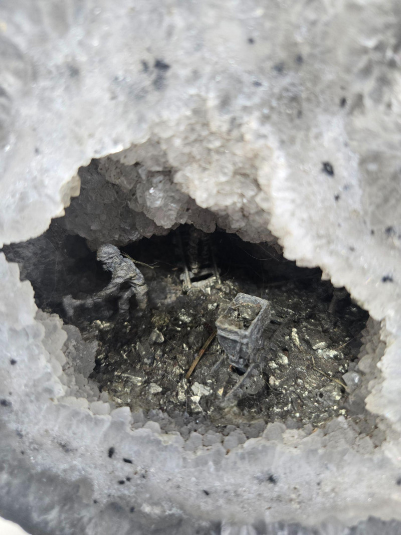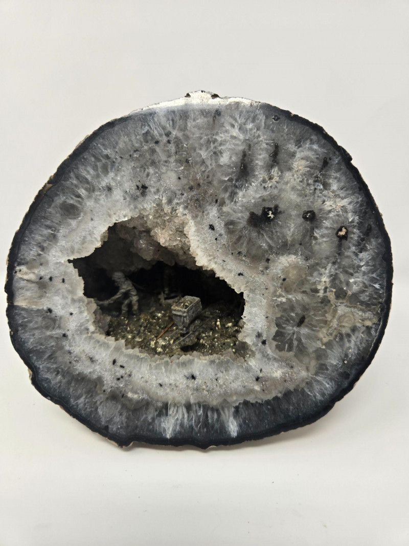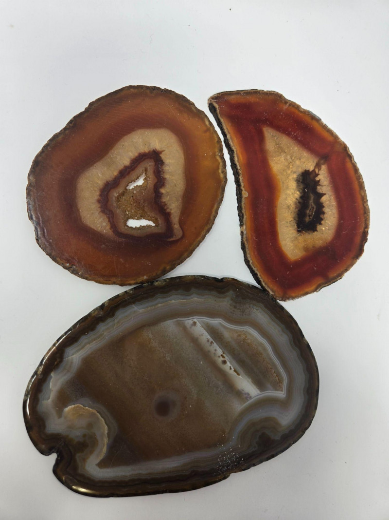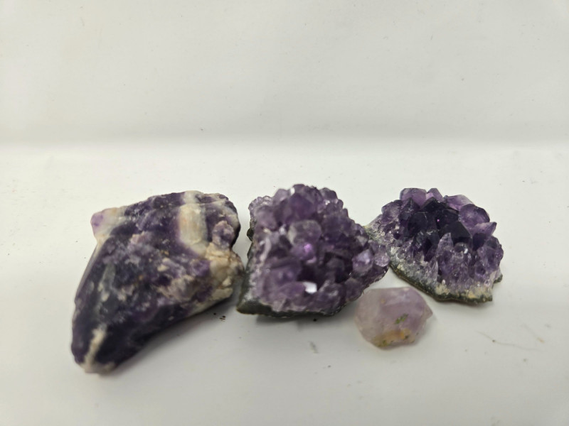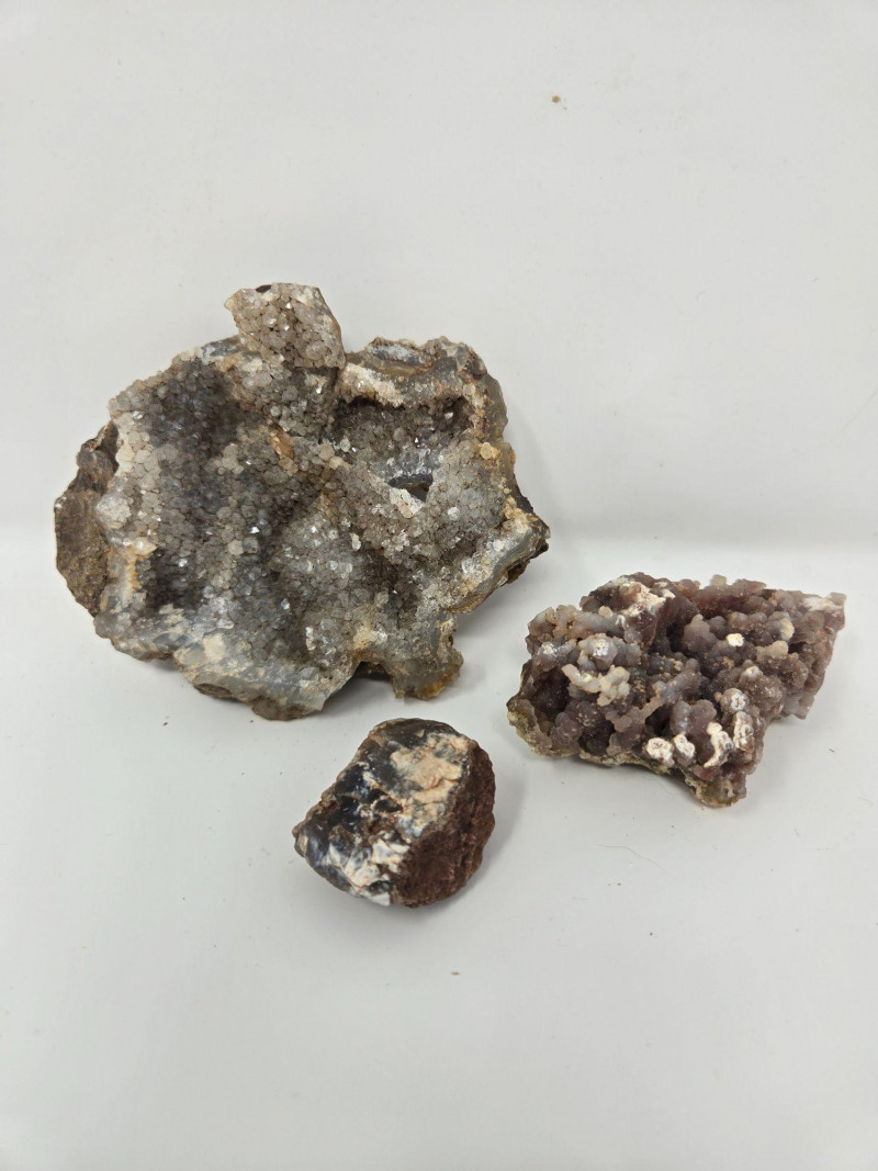 A diverse and visually striking assortment of rocks, minerals, and crystals. This curated collection includes: Polished and raw mineral specimens Agate slices with banded patterns Amethyst clusters and quartz points Brightly colored minerals, including a vivid yellow sulfur piece Decorative heart‑shaped crystal Small corked vials and clear jars containing miniature specimens A wide range of textures, colors, and geological forms