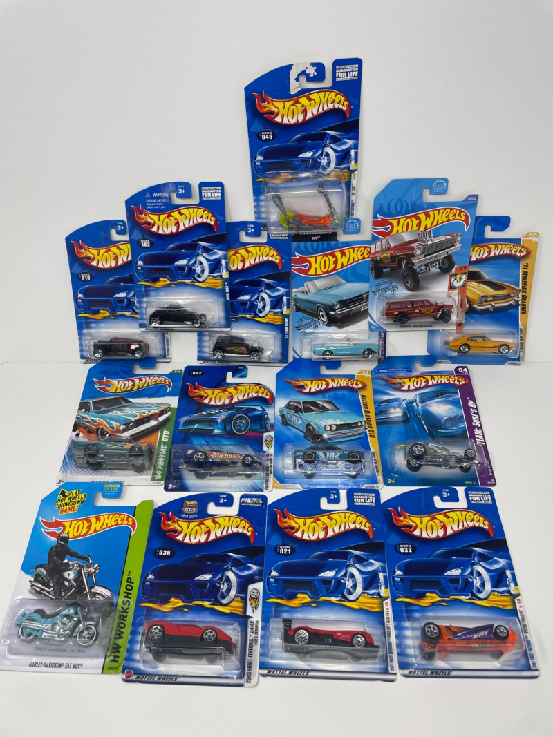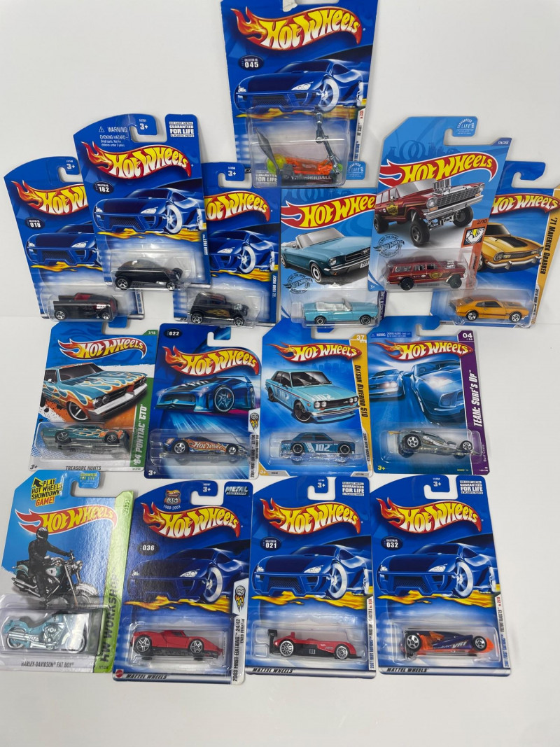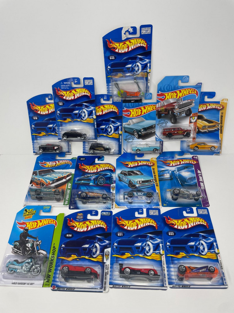 Collection of 15 Unopened Hot Wheels A vibrant, well‑kept assortment of 15 Hot Wheels vehicles, all new in original packaging. This collection spans a mix of styles and eras, offering strong appeal for collectors, resellers, and enthusiasts. Highlights include: A fun, diverse grouping perfect for building a collection or adding depth to an existing one. All items appear new in package Hot Wheels Collection