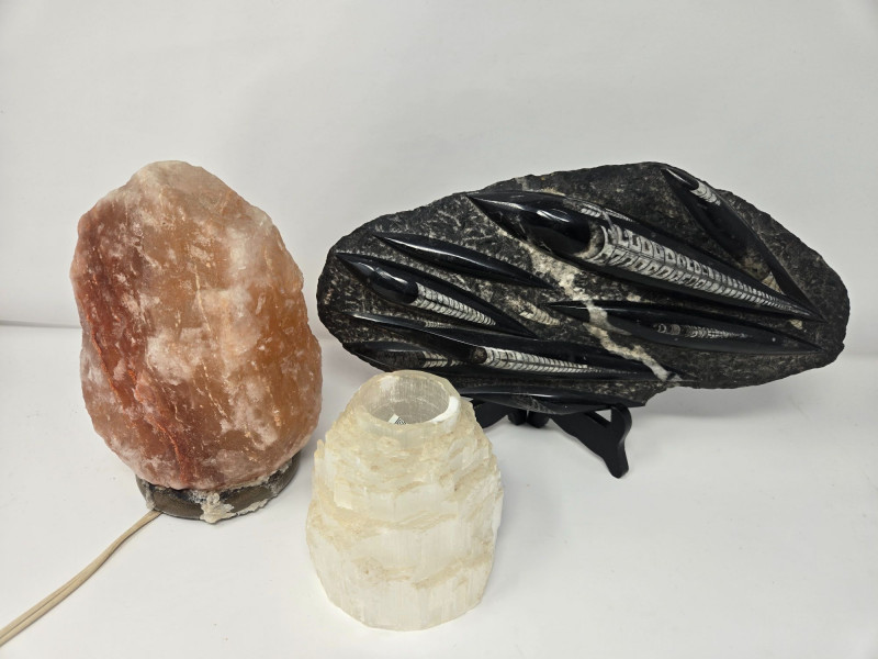 Lot # 34 - Fossil Treasures- Salt Lamp, Fossil Slab and